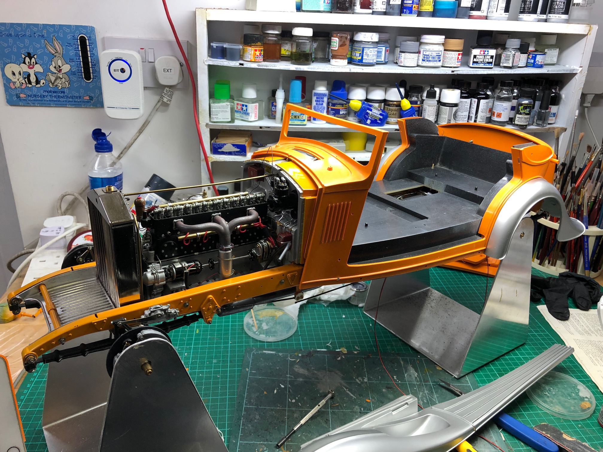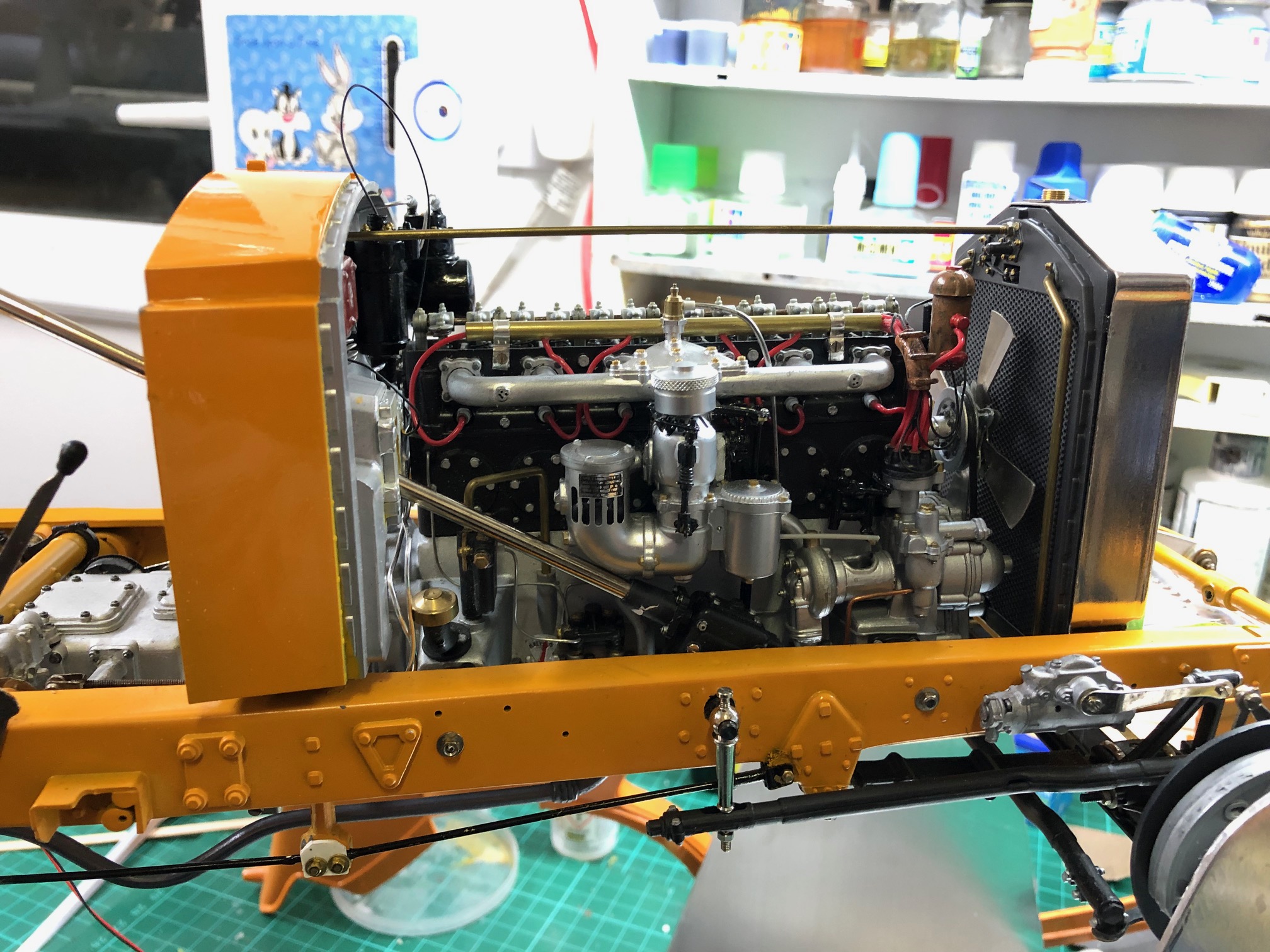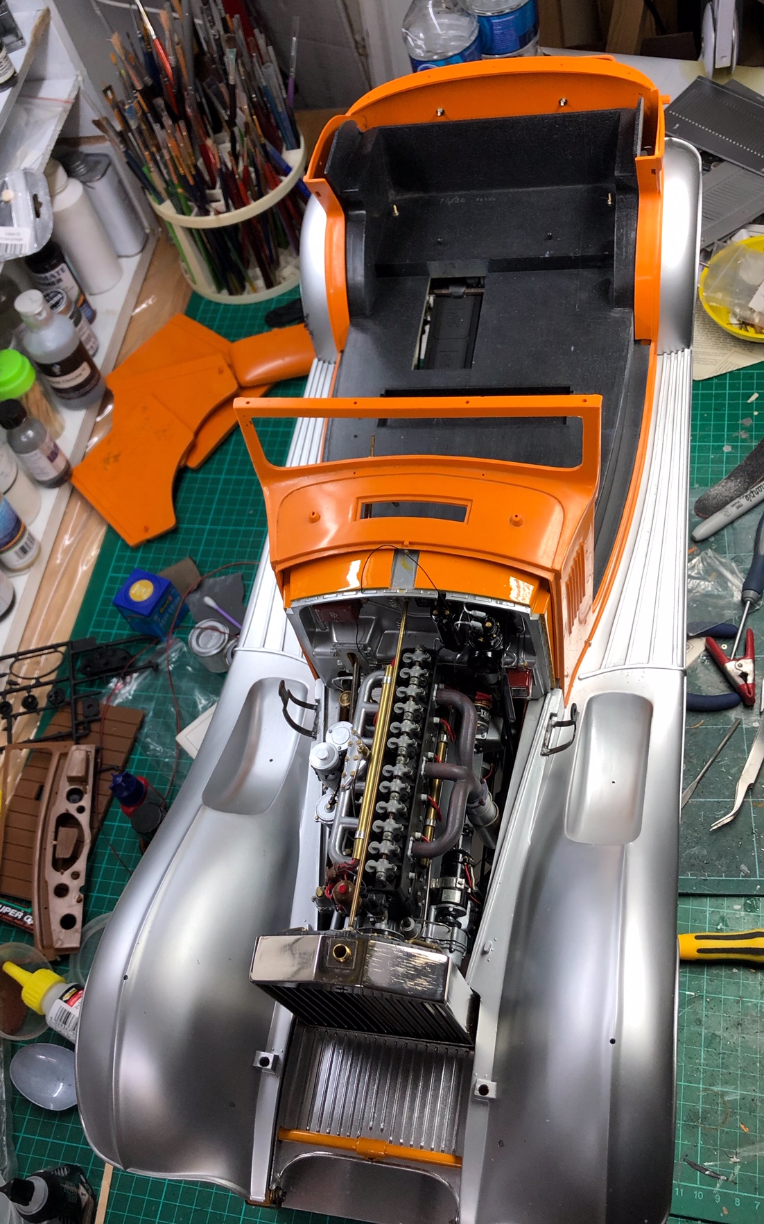 All of this brings us to Bap Athwal (UK) and his version of this legendary kit. Evidently, 3000 components was not enough for Mr. Athwal, who has added even more details to his model, including door pulls, engine details, wood veneer, real leather and working lights. His model is a testament to his determination and attention to detail-even the RR logo on the electrical box is high-lighted. From the miniature Autocar magazine on the rear seat to the working tiger lights, Mr. Athwal's model is a handsome tribute to both the prototype and the kit.