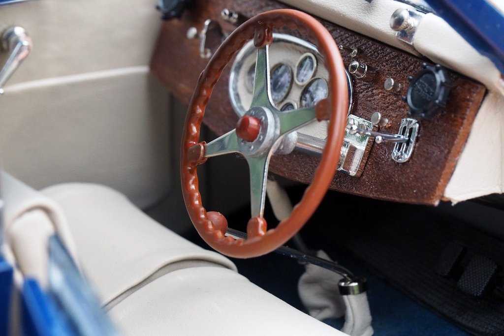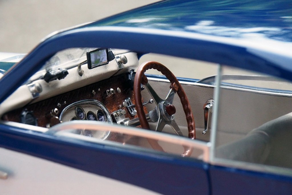 When confronted with the fabulous Pocher Bugatti Type 50, it takes a well informed builder to know that there were only a handful of colors used on the tiny number of factory cars, and the interiors were seldom anything but oiled walnut dashboards, literally, in front of fabric seats. Nowadays, when only a handful-less than a handful-of these wonderful cars survive, the choices are even more constricted. The result is that regardless of scale, most of the models look the same. In fact, there are those among us who take some pleasure in displaying the same black and red color scheme on various scales of the same automobile in a single display case, which perhaps conveys the subliminal boast that the builder/collector is capable of working in more than one scale. The same-ness has become a virtue of sorts. One wonders how many book shelves in how many countries are displaying the identical replicas of the same subjects.