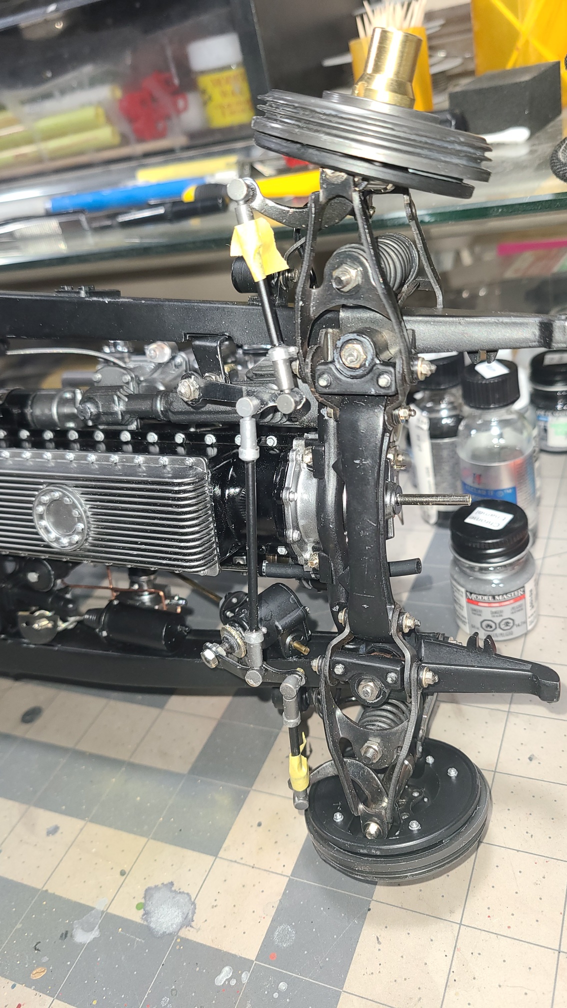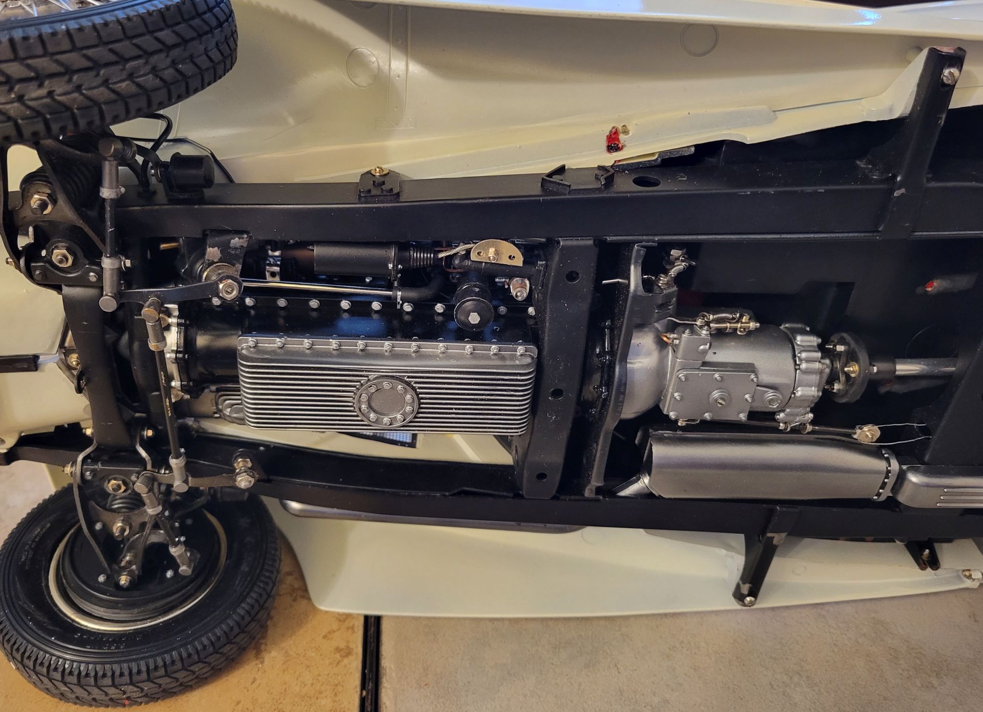Take a closer look at Chris Savaglio’s rendition of this venerable kit, and two things are apparent: Mr. Savaglio has patience, and Mr. Savaglio has a good eye for details. From the meticulous leatherwork to the bristling engine compartment, the model is a testament to determination and careful work. The working top, however, is proof that Mr. Savaglio is a man of integrity and imagination. A man of determination and resourcefulness. And a man who can read between the lines of a Pocher instruction book. Well done.