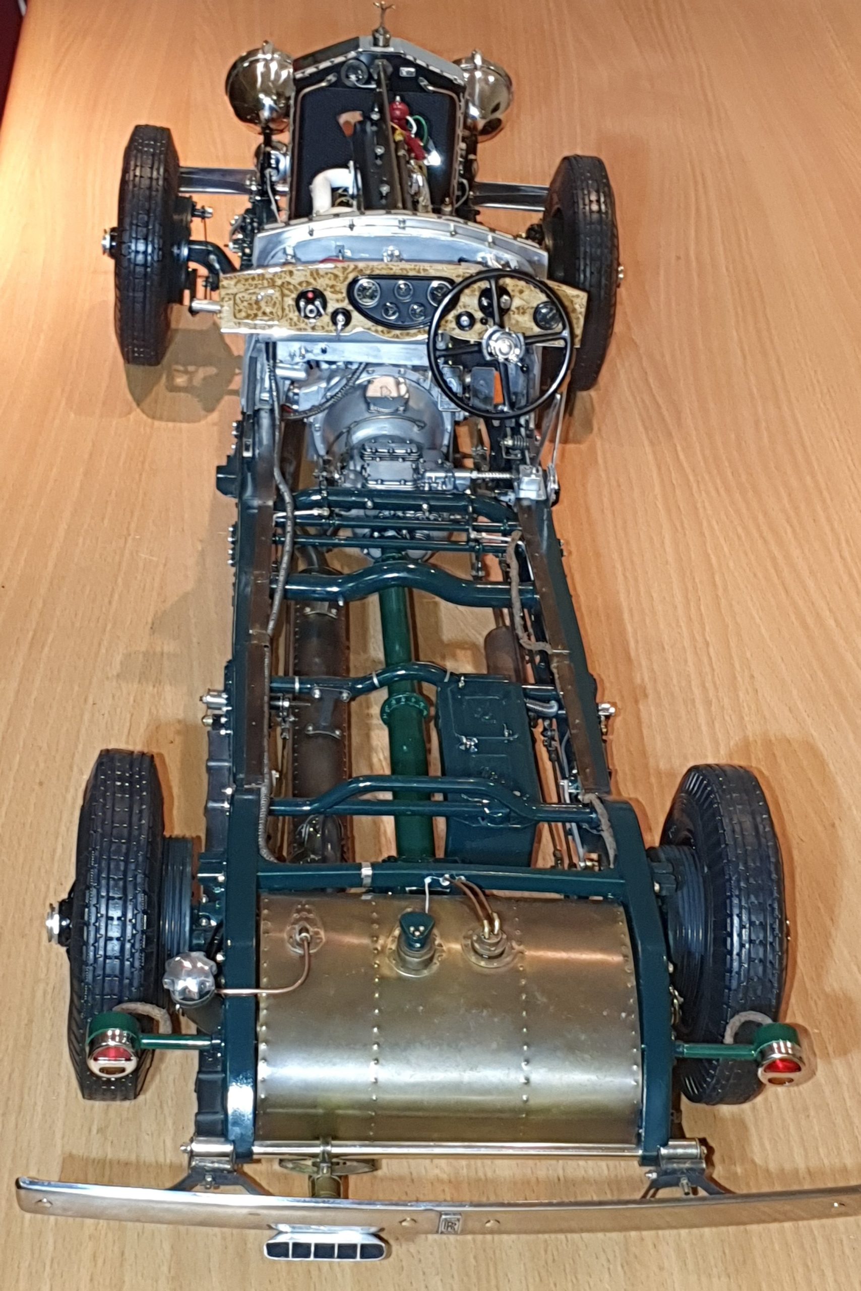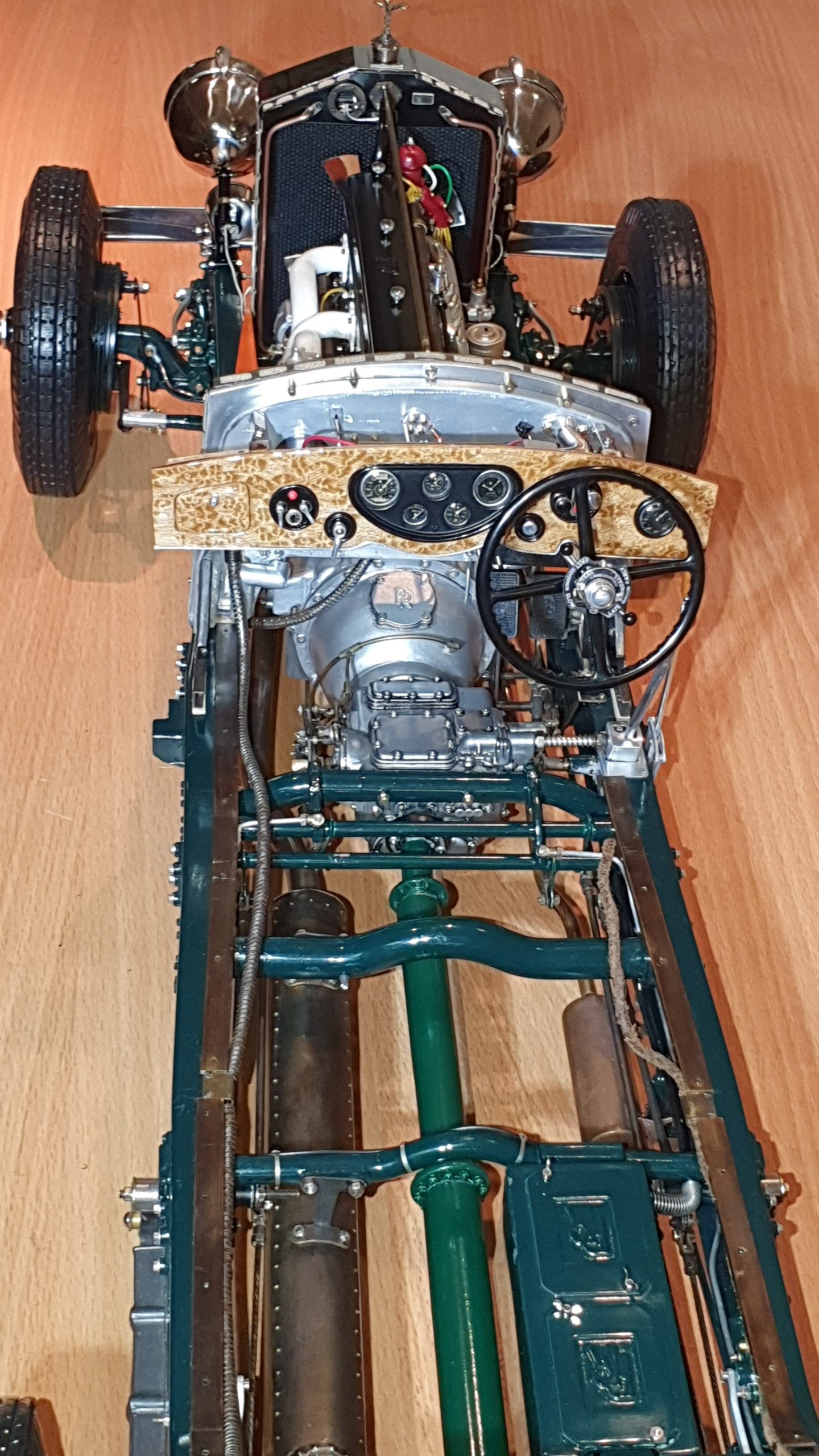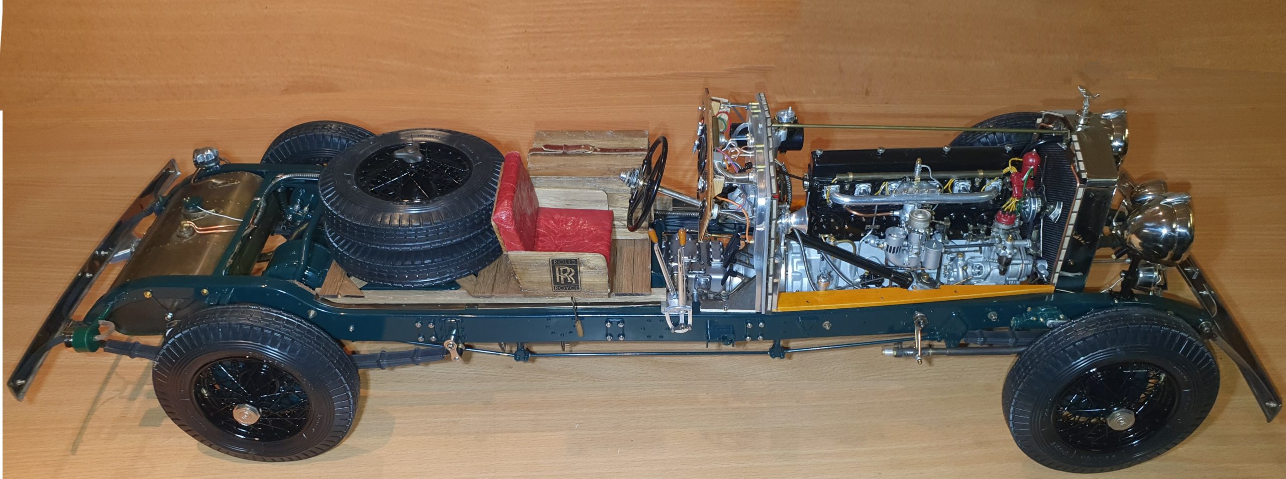 Those of us who clothe our chassis in bodywork are telling a different story, and we are seeking a different result. We are seeking an illusion that the model is a miniature version of the actual automobile, and we are seeking a narrative that goes with that illusion. The chassis standing alone seeks to let the original Rolls-Royce designers tell their own story, and the remarkable complexity of the mechanical details celebrates the builder's accomplishment. In an ideal world, who wouldn't want one of each?