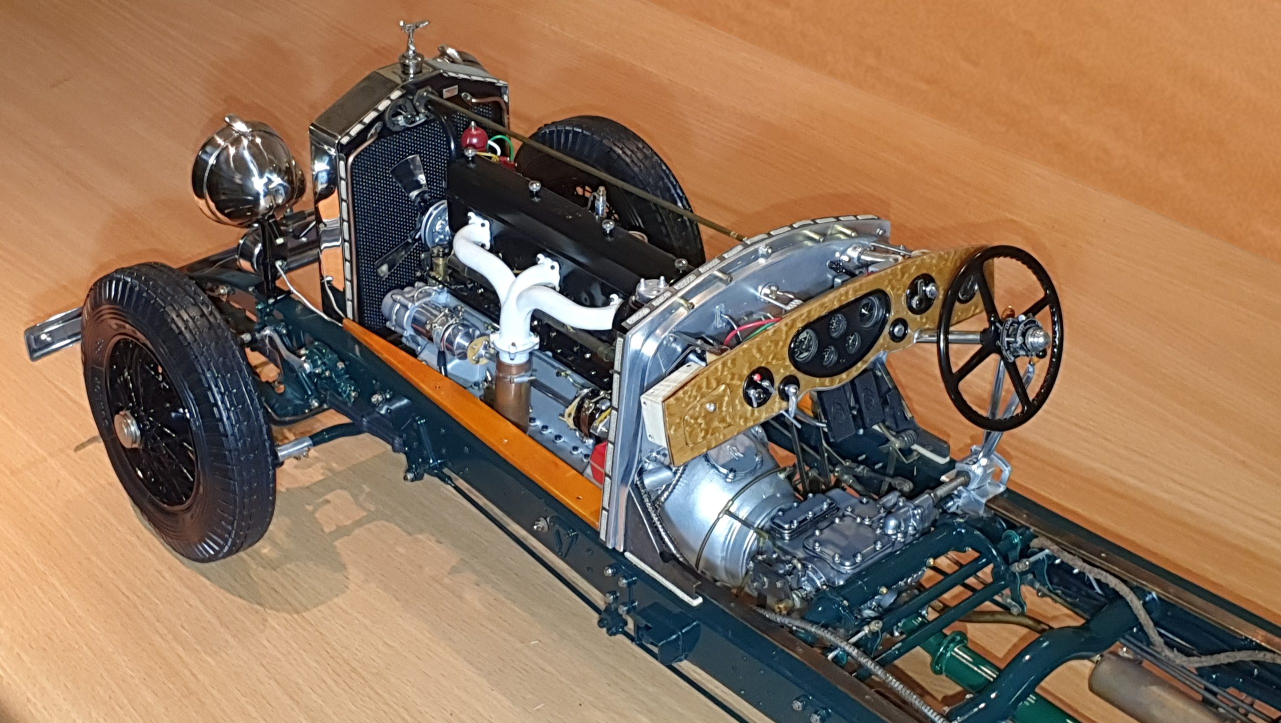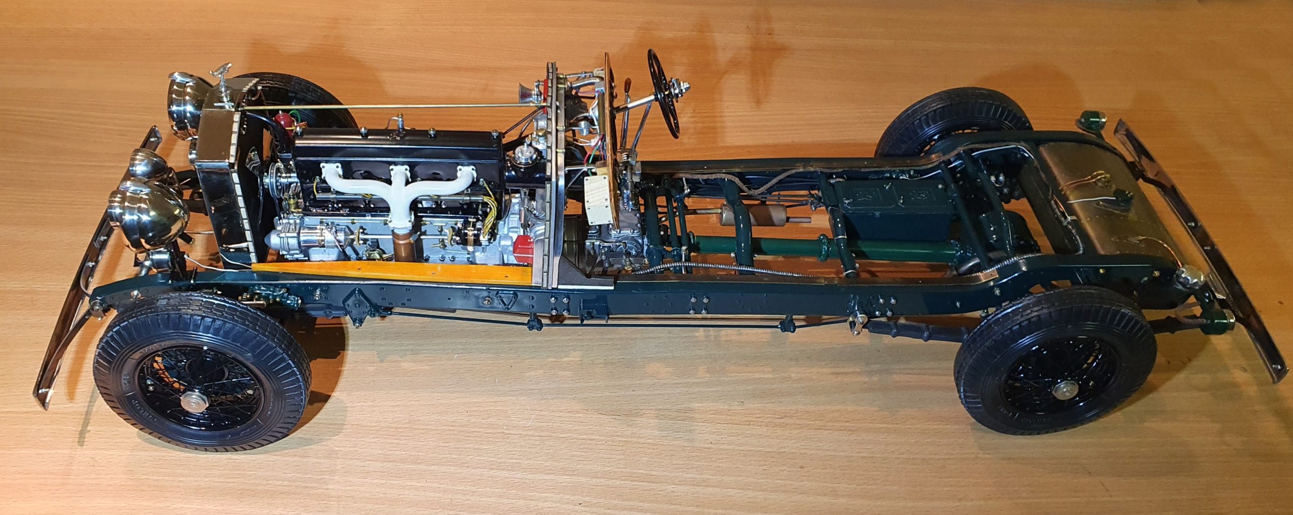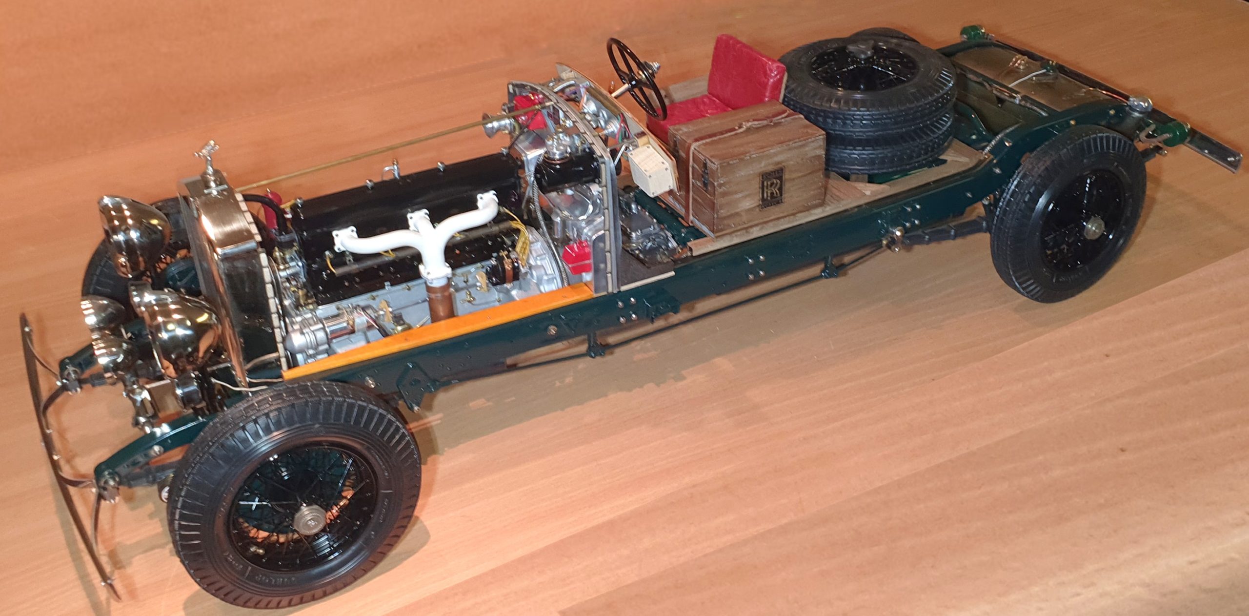 Those of us who clothe our chassis in bodywork are telling a different story, and we are seeking a different result. We are seeking an illusion that the model is a miniature version of the actual automobile, and we are seeking a narrative that goes with that illusion. The chassis standing alone seeks to let the original Rolls-Royce designers tell their own story, and the remarkable complexity of the mechanical details celebrates the builder's accomplishment. In an ideal world, who wouldn't want one of each?