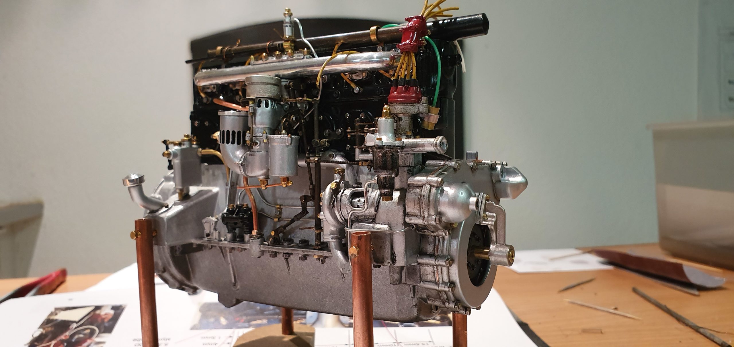 When asked about the legendary Pocher Rolls-Royce kit, we have often encouraged would-be builder with the observation that such a large and complex model can benefit from being built in stages. Begin with the engine, which can be put on stands and enjoyed as a display piece. After a suitable time for recovery, build the chassis, axles and wheels and add the previously completed engine to create a striking display, bristling with details and complexity. When the trauma of the project has been forgotten, add an interior and body, which, with any luck, will be completed before the builder's dotage. We think this is good advice, and we are hopeful that those who followed it are pleased. Improvement, however, is always possible, and Christian Hey's Phantom II display chassis has gone beyond anything we ever envisioned. The principle we were espousing was that when one builds each assembly of a complex model as if it were to be displayed as a separate model, the results are bound to be pleasing. Combining a series of such carefully built sub-assemblies is almost a guaranty of success when it comes to the completed model because by concentrating on the sub-assemblies, the builder is not tempted take short-cuts nor to rush through the work.