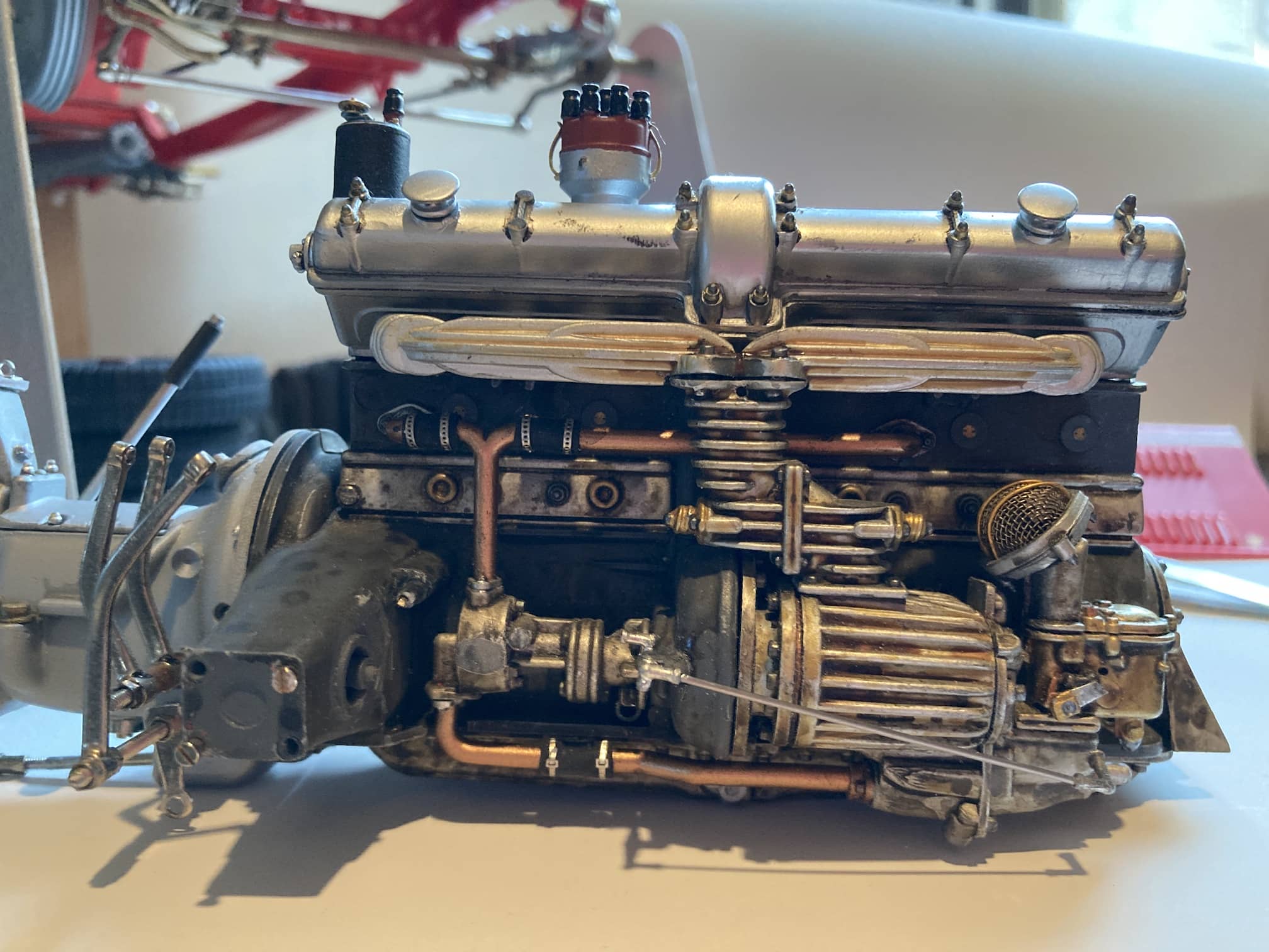I hope you enjoy the following photos. As a retired architect, I am very design oriented, and have tremendously enjoyed researching these wonderful cars. I have also tried to bring the Pocher model closer to the way the actual cars were built many decades ago. Although I had some fabrication skills, they were more in areas like motorcycle restoration. So, I had to rely on many of my new friends in the modeling community to guide me along my path of trying to become a modeler. Believe me, I had to learn everything from airbrushing to 3D printing over a hundred parts I designed.