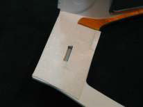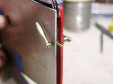 Another important custom operation you must undertake is the fabrication and installation of the latch catch inside the car’s body. Left, you see we used a piece of stock brass and glued it to the body. Size, position and thickness will have to be determined for each car individually, as it is driven by your earlier choices. On the right, you will see that, once upholstered, the latch is almost invisible and extremely functional.