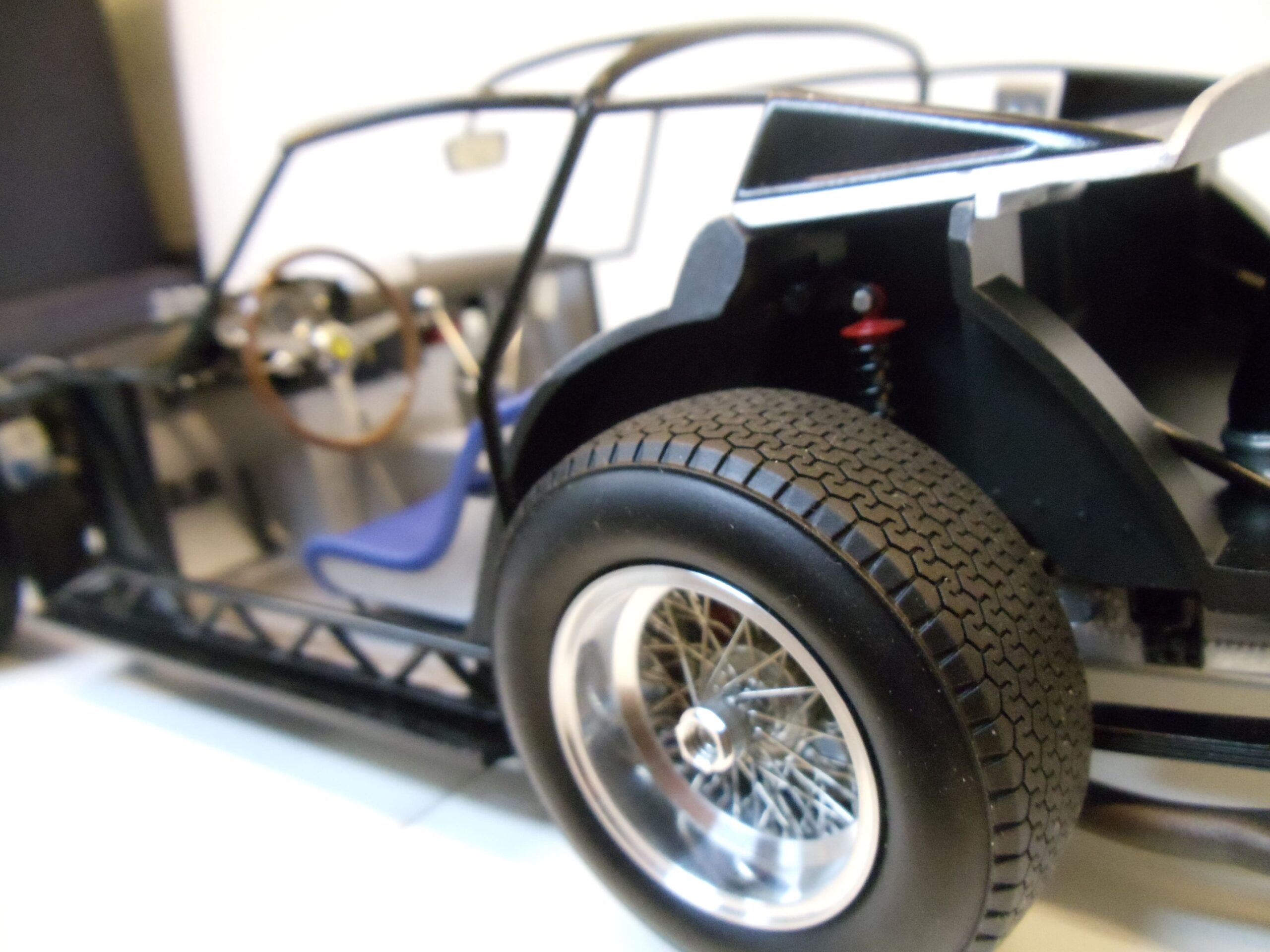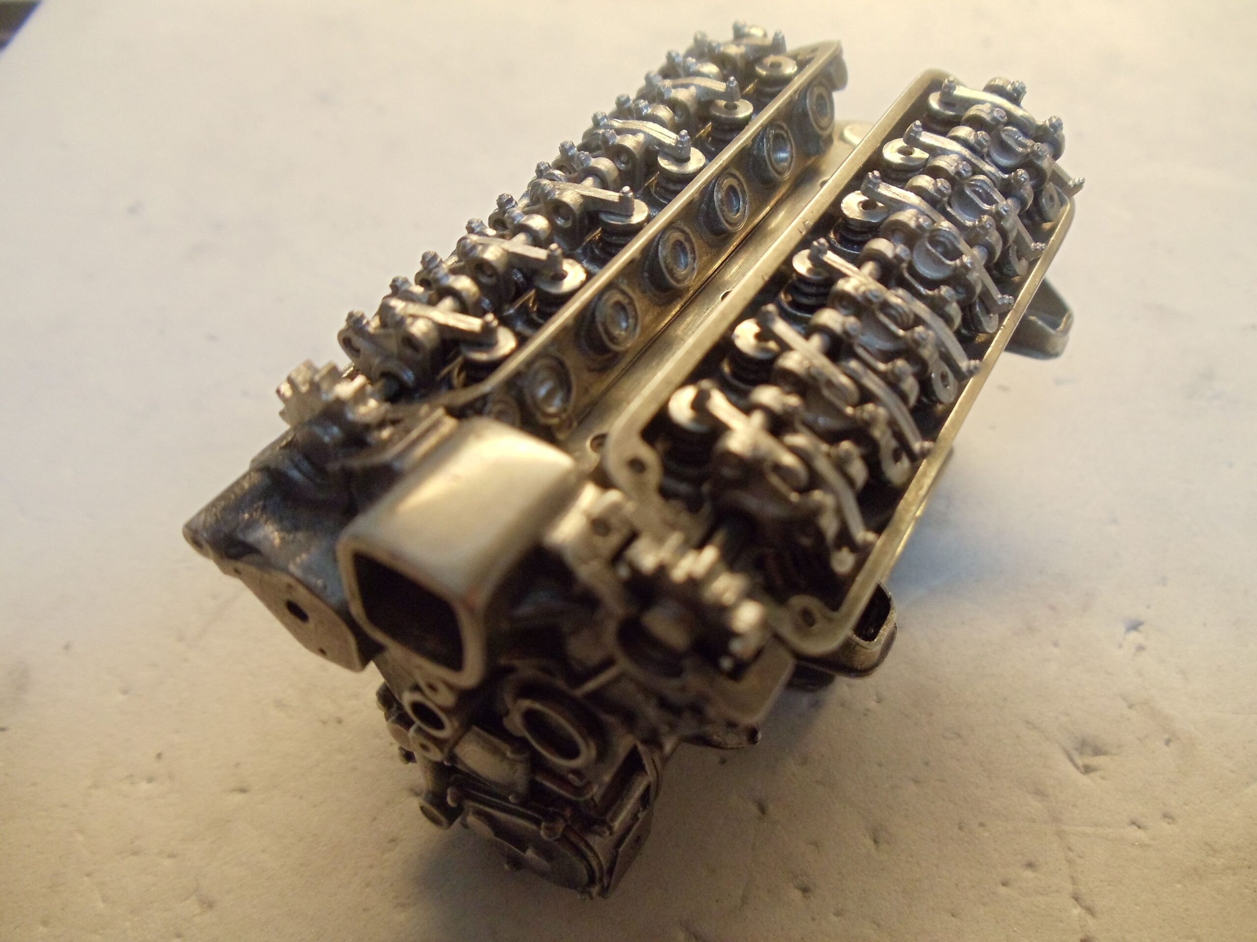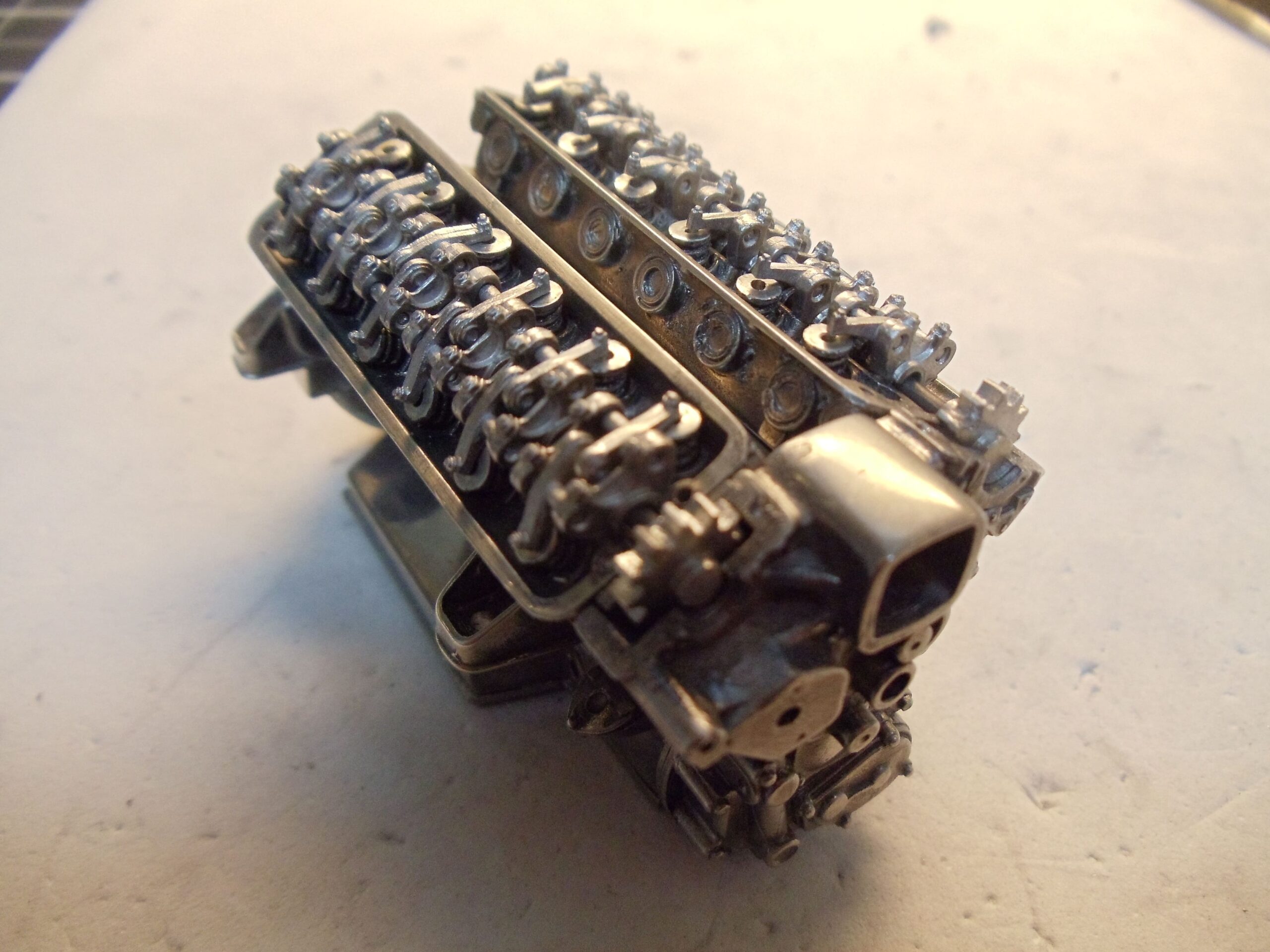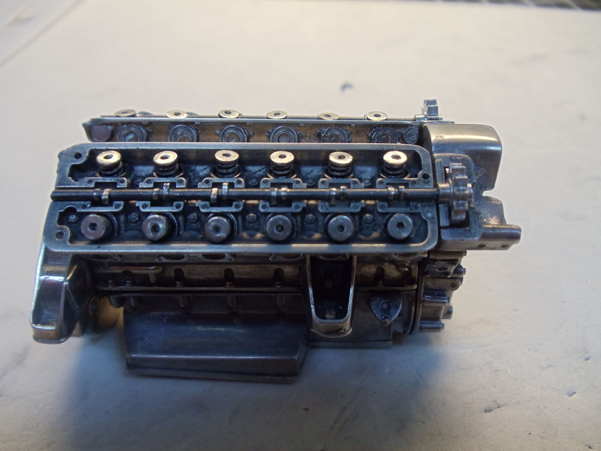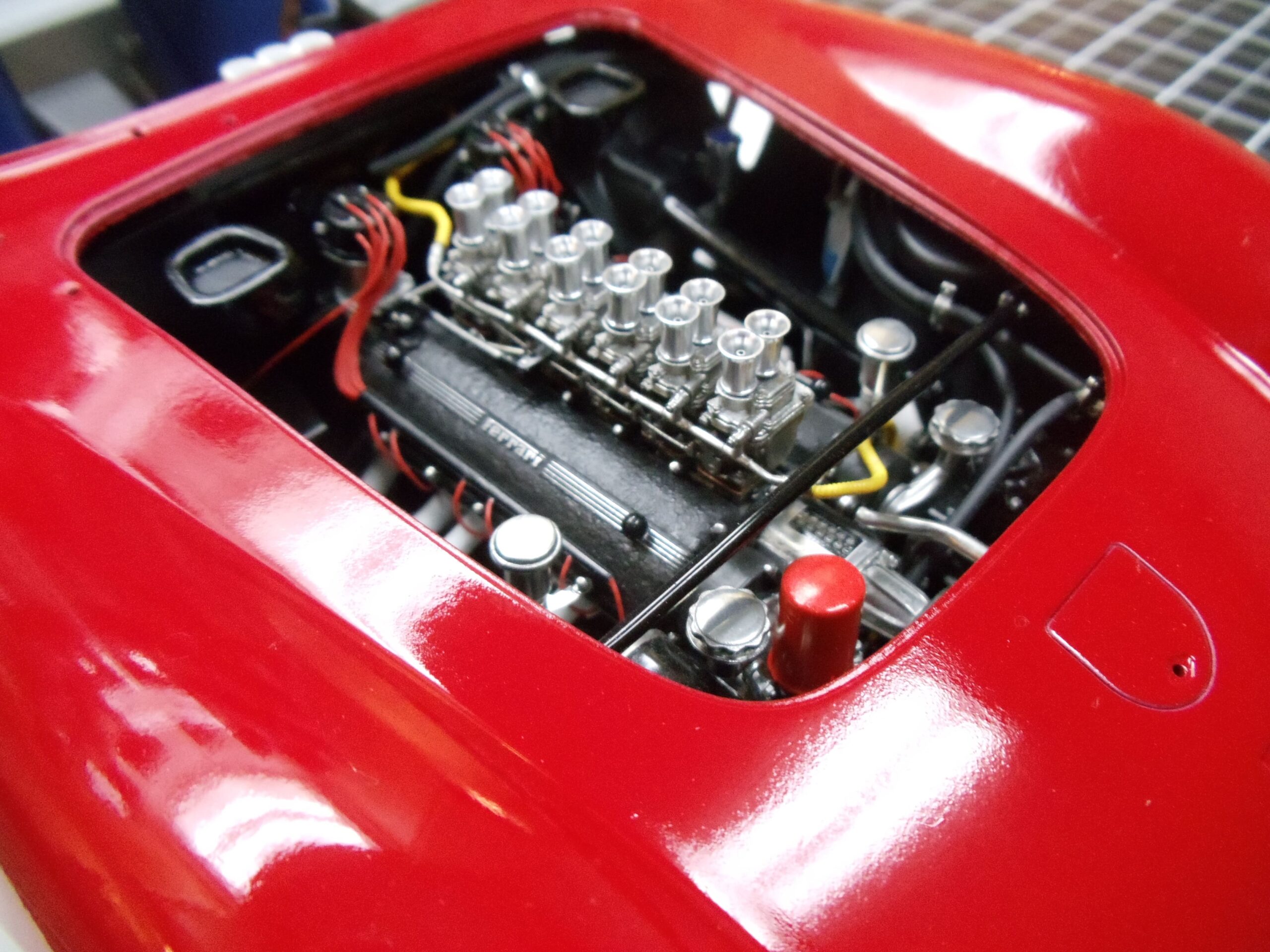 I cannot say enough great things about the MFH Ferrari 250 GTO kit, it is truly amazing. The parts fit is excellent and it can in fact be built without scratch building anything but it is not without it’s challenges. Most of the parts are cast white metal that need to be cleaned and mold lines removed as well as polished if you want to use them without paint. Unfortunately the parts come in bags without part numbers so they needed to be sorted by appearance only. Considering that there are hundreds of parts sorting them is a task. I located the parts for each step and bagged them marking each bag with the step number. I spent a lot of time just preparing parts but when I finally started construction the real pleasure of the MFH kit started showing through. There is nothing in model building that is more satisfying than assembling an engine that when you turn the flywheel all the pistons move along with all the timing gears and rocker arms. Although the internal parts of the Ferrari engine will never be seen again it was worth the hours of construction to see the entire engine function. The remainder of the kit was just as detailed even including the linkage from the gas pedal to the carburetors.