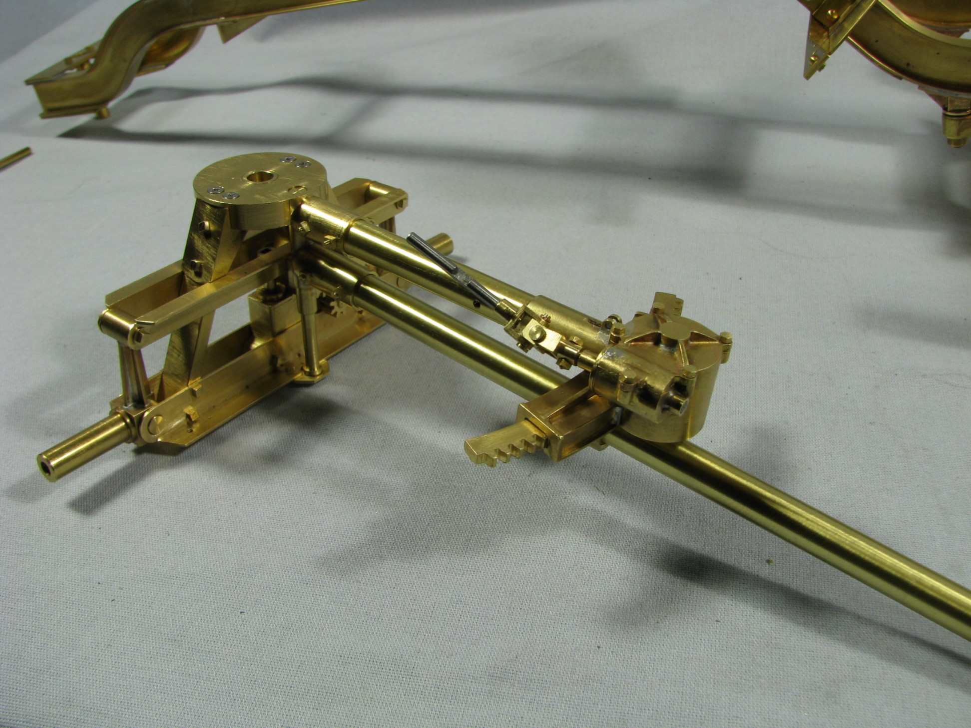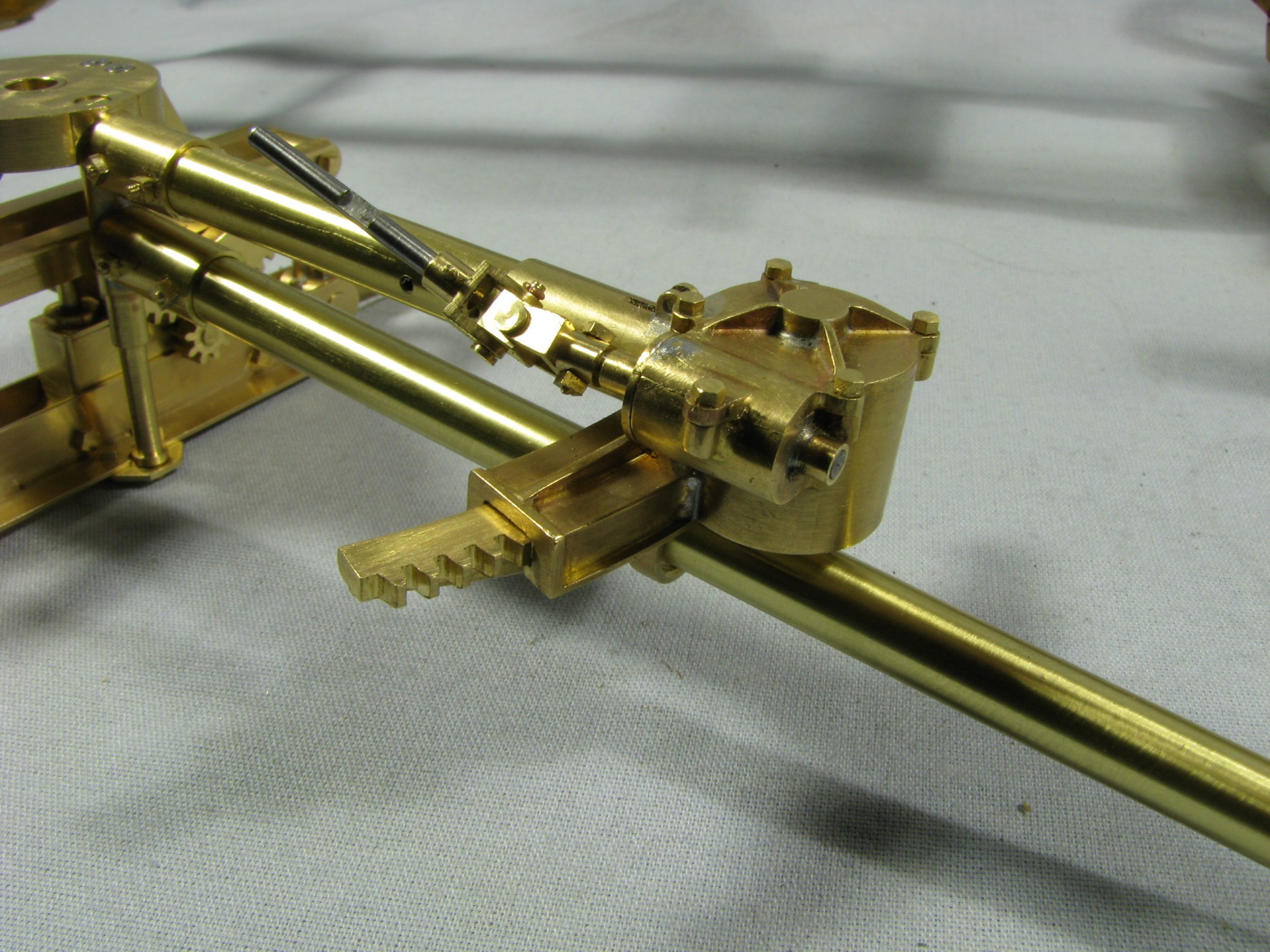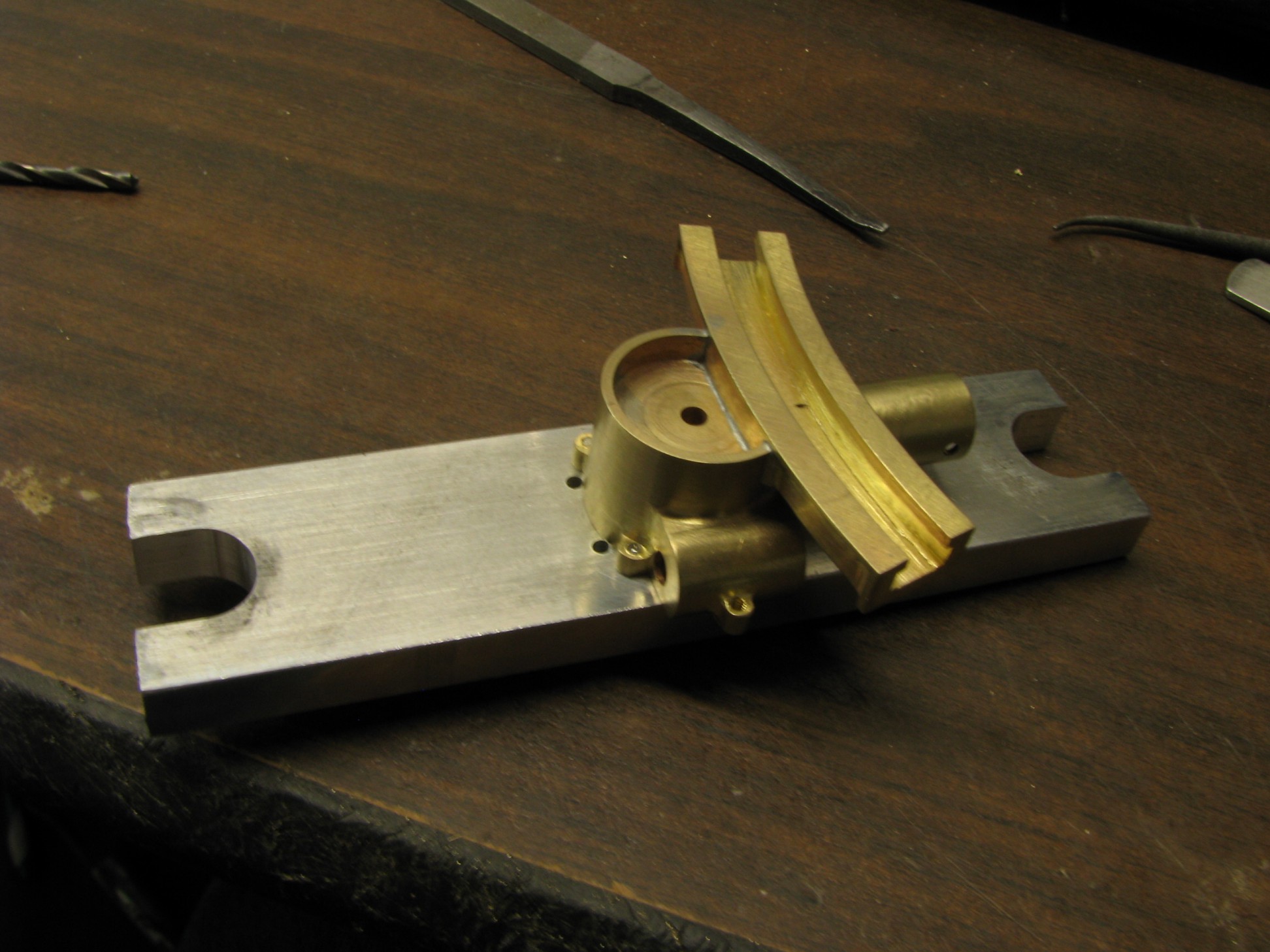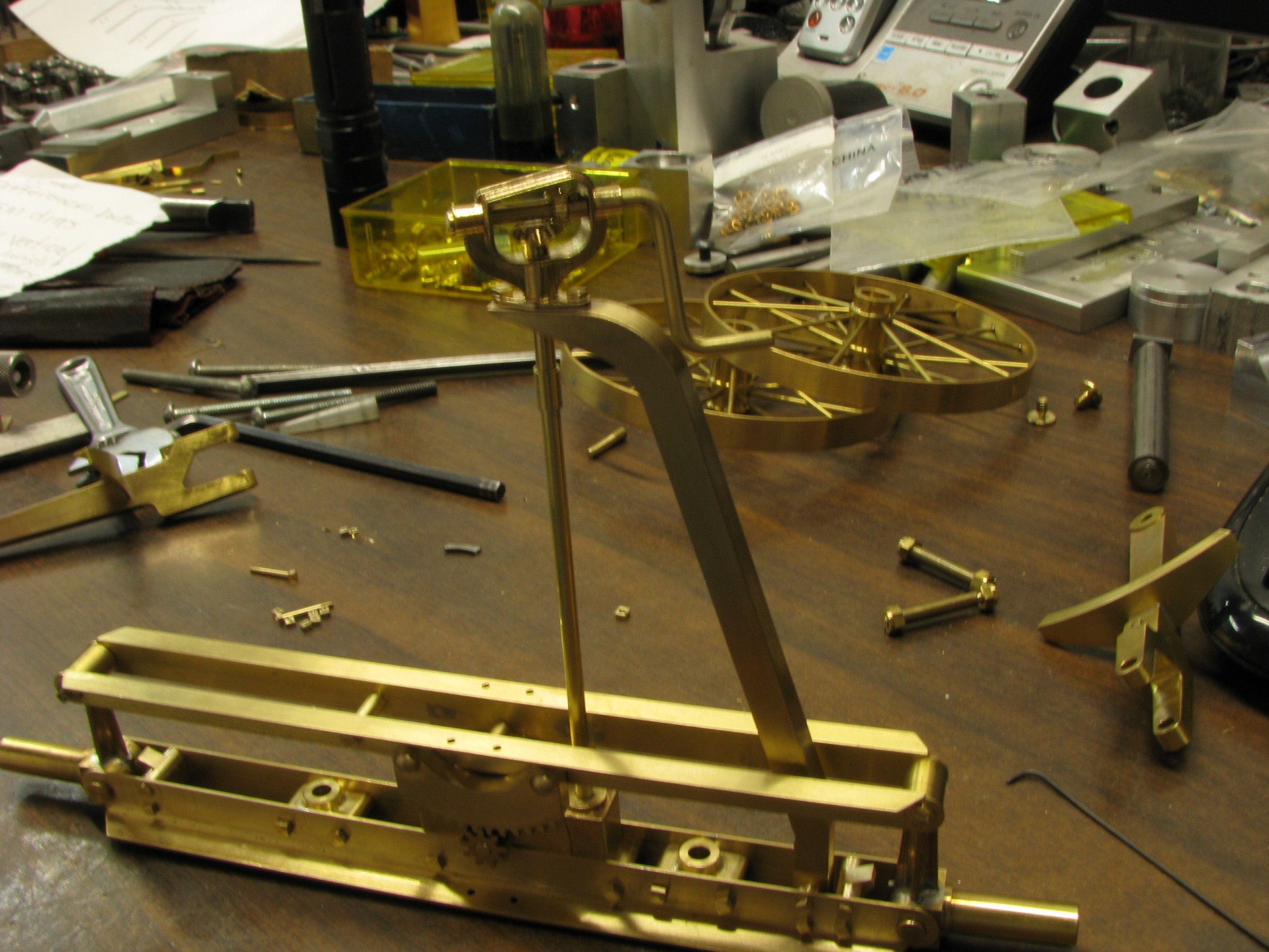 The model started with the frame rails which had to be made in 2 pieces due to the length requirements. After machining they were fixtured and silver soldered together. To locate the many holes on the frame templates were cut from prints of the drawings and then marked on the rails for drilling or tapping. As the building progressed the thought process had to be two steps ahead because a lot of the parts were soldered together and adding adjacent parts could undo what was already put together.