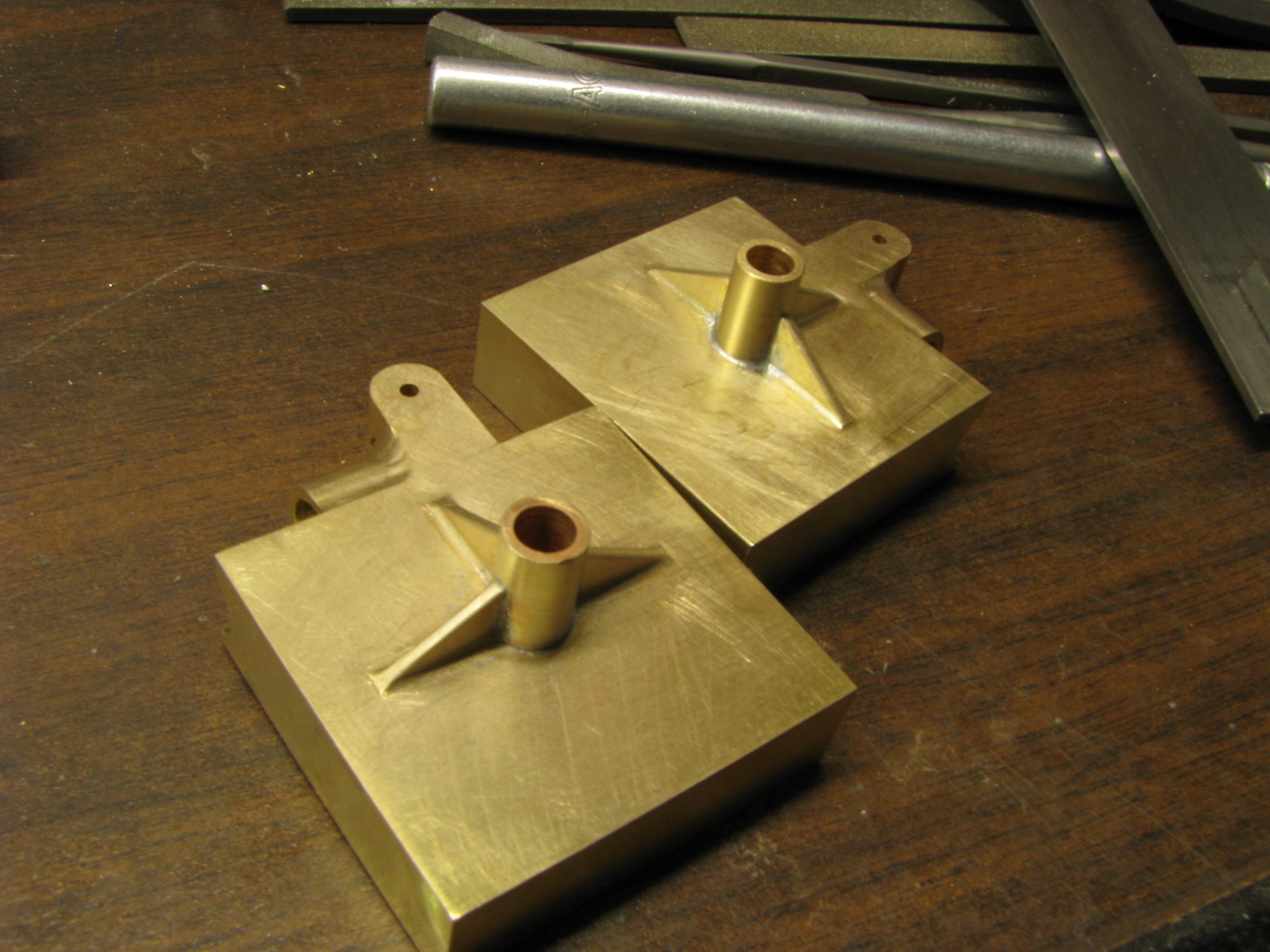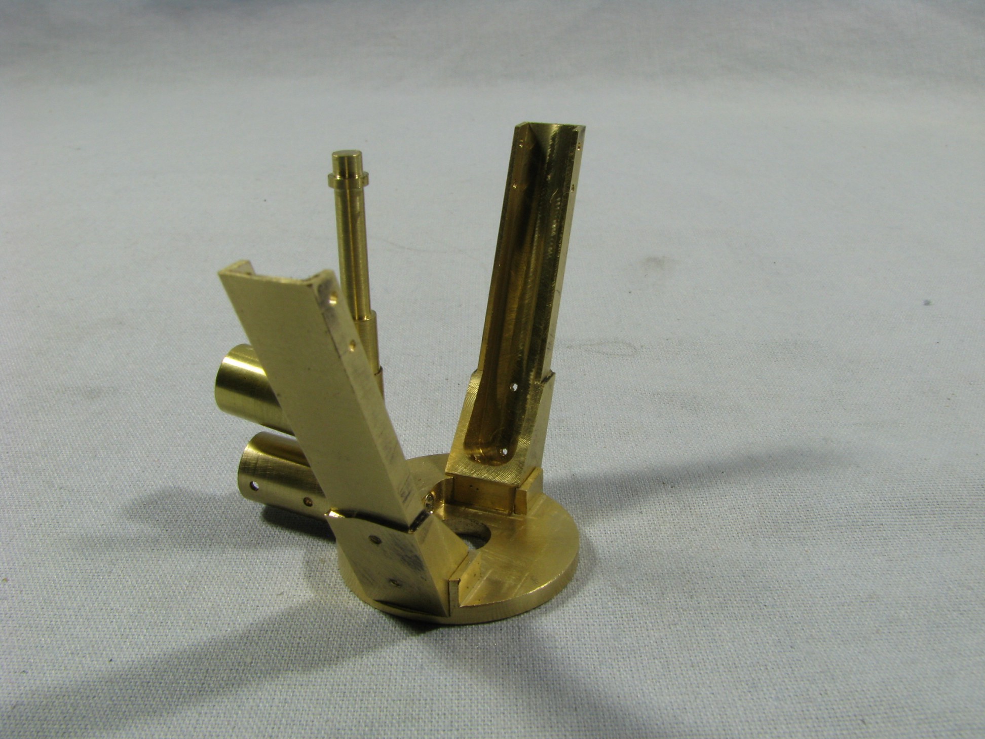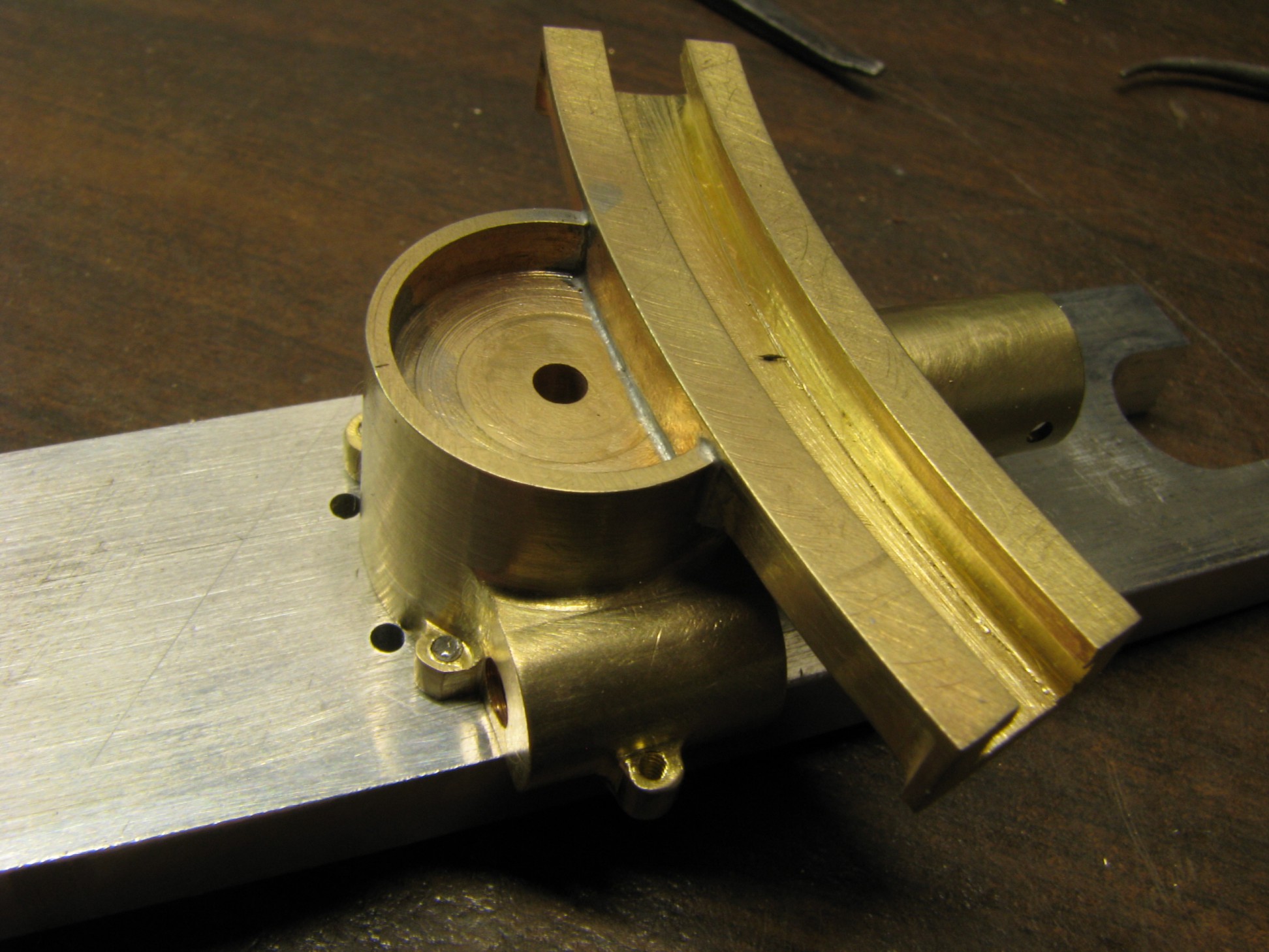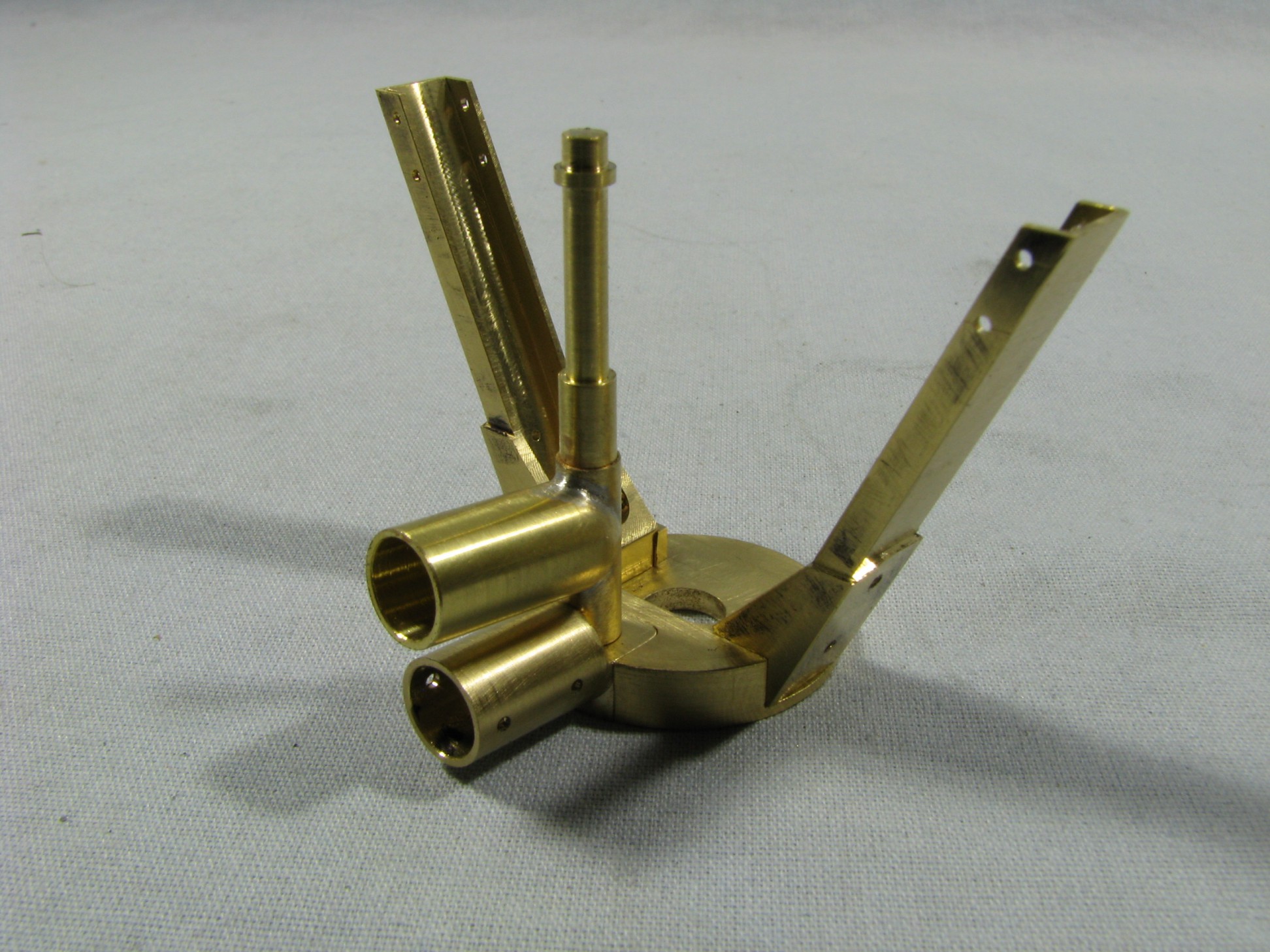 The model started with the frame rails which had to be made in 2 pieces due to the length requirements. After machining they were fixtured and silver soldered together. To locate the many holes on the frame templates were cut from prints of the drawings and then marked on the rails for drilling or tapping. As the building progressed the thought process had to be two steps ahead because a lot of the parts were soldered together and adding adjacent parts could undo what was already put together.