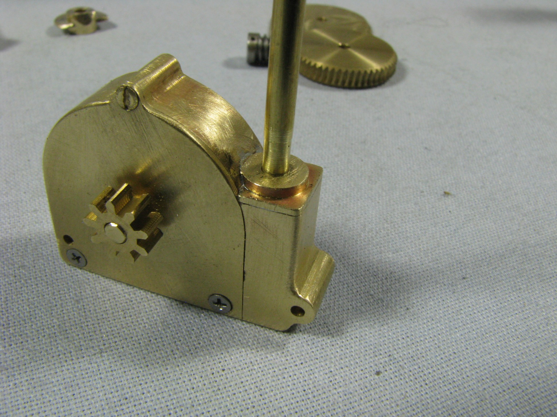 In down-scaling original sized machines a lot of things need to be adjusted, metal thicknesses, shaft diameters, gear sizes that will work and fit the scale properly and many others. It's not just a matter of multiplying everything by .0833. Eventually I had all the parts drawn on 8-1/2 x 11 sheets, Two goals were to be met in building the grader, one that it was as close to the original as possible and two, that every function worked like the full sized machine. All the gearing, spurs, worms and miter gears required special home-made cutters due to the scale. The nuts and bolts of that era were primarily square headed and referred to as stove bolts. The sizes on the model range from the tiniest M1.0 x .25 to the largest 2-56. There were a few hex headed bolts on the machine which I assume were originals so they were also replicated.