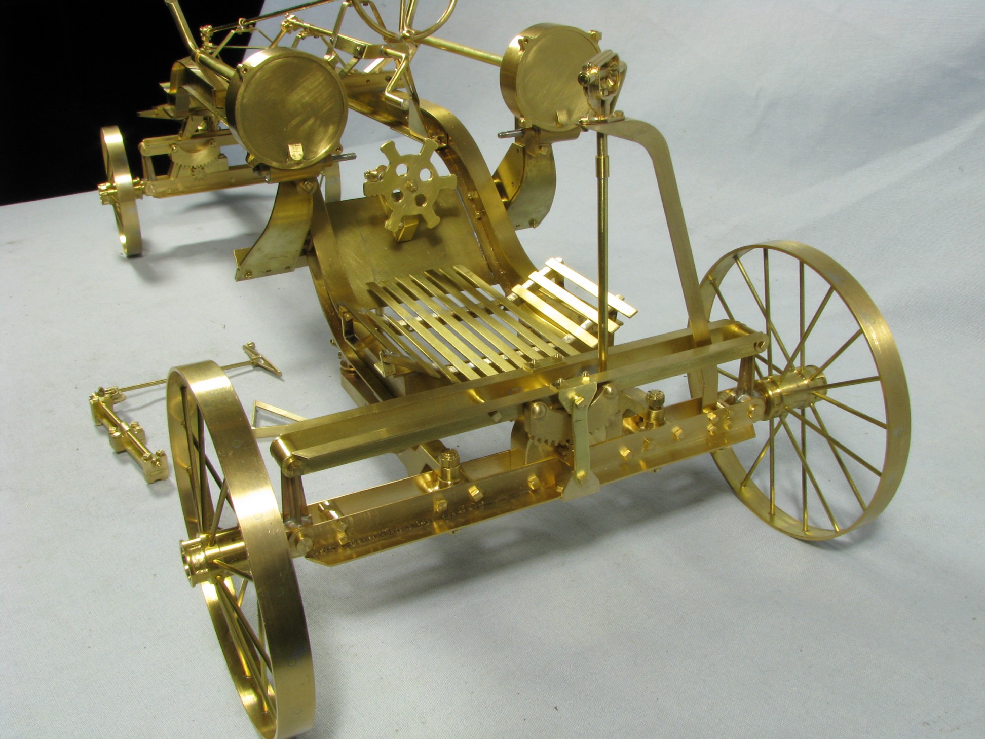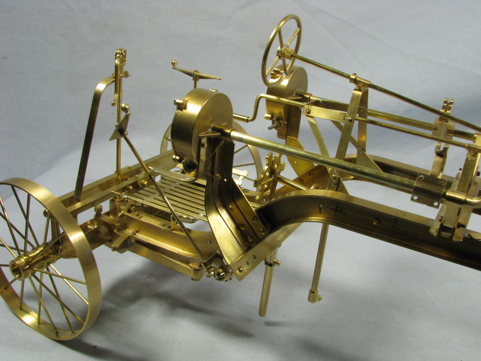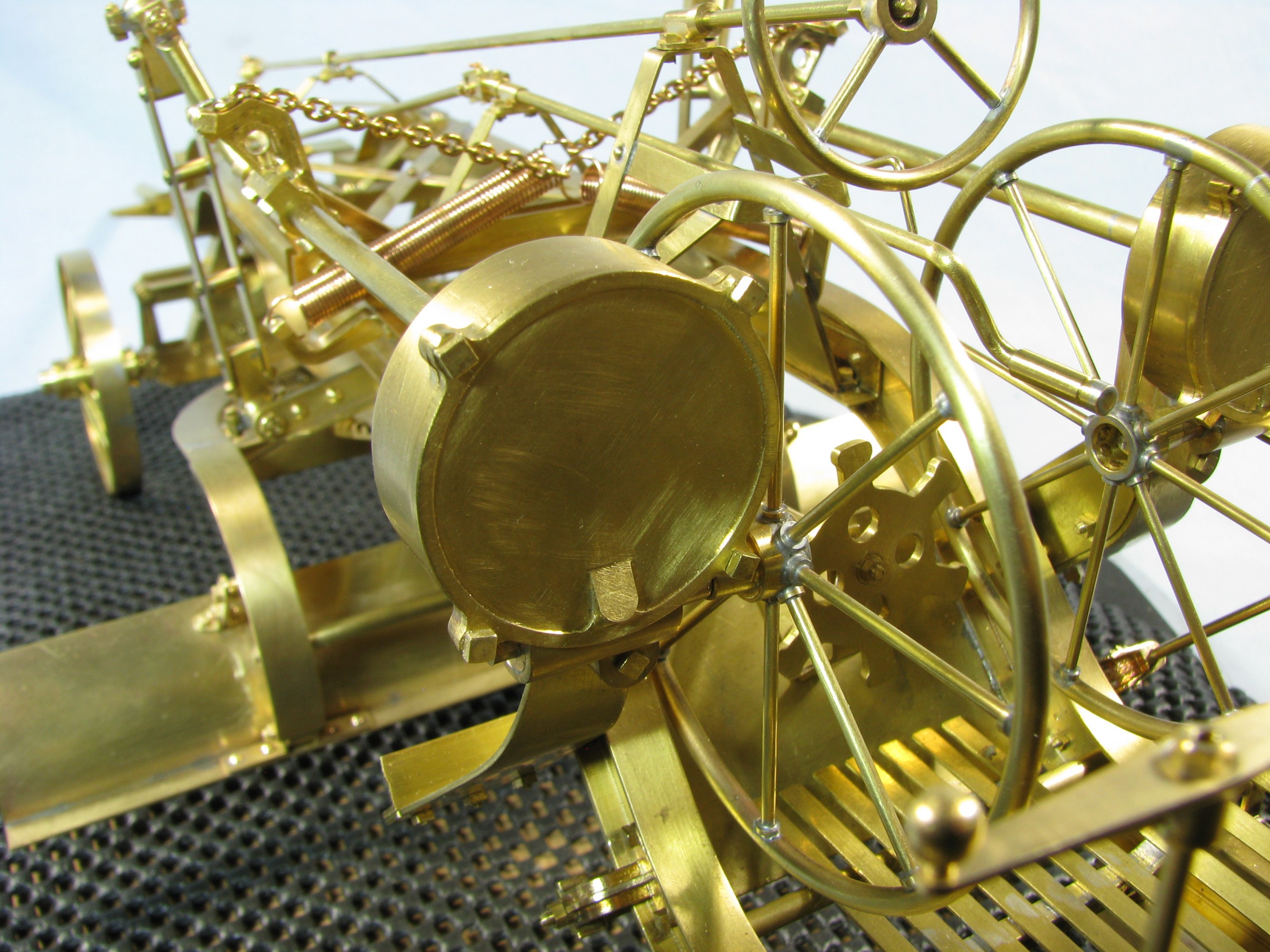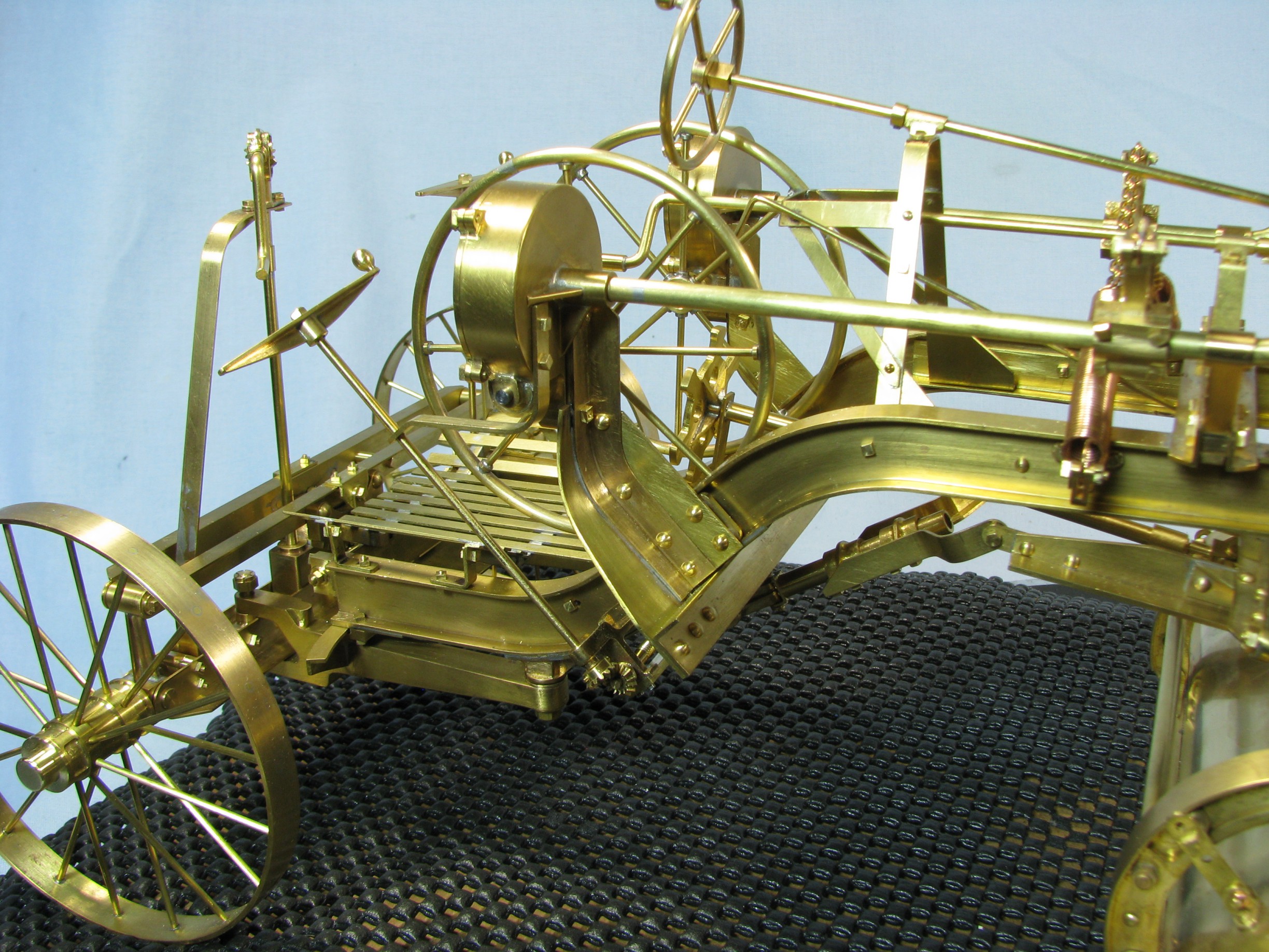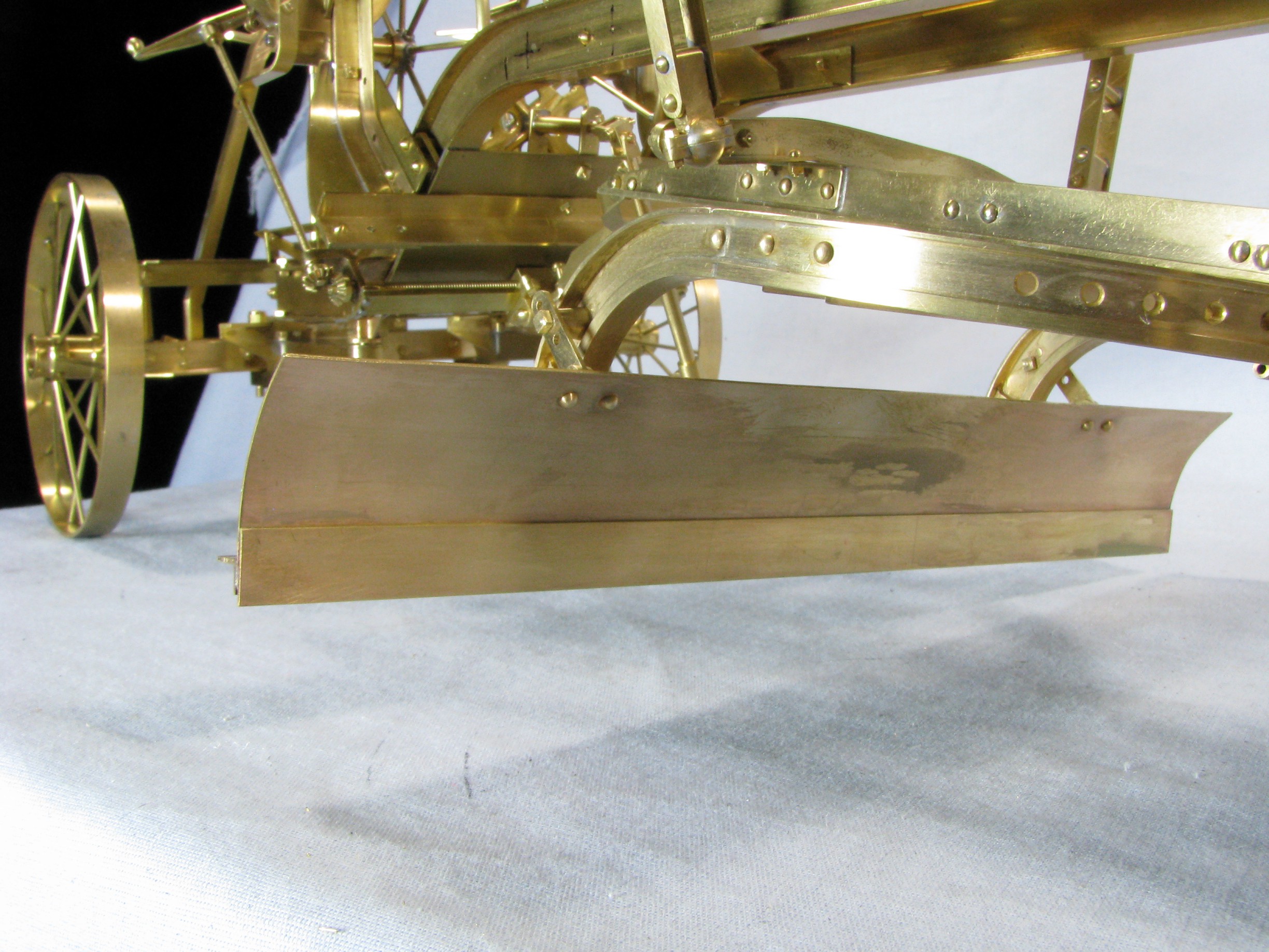 I was introduced to another member, Ken Foran, through the classic car show The Glenmoor Gathering. Ken had arranged to have a modeling area and I was invited. This was my introduction to the fabulous brass fabrications that he creates. His work can be found in the display area. I used his inspiration in creating my model.