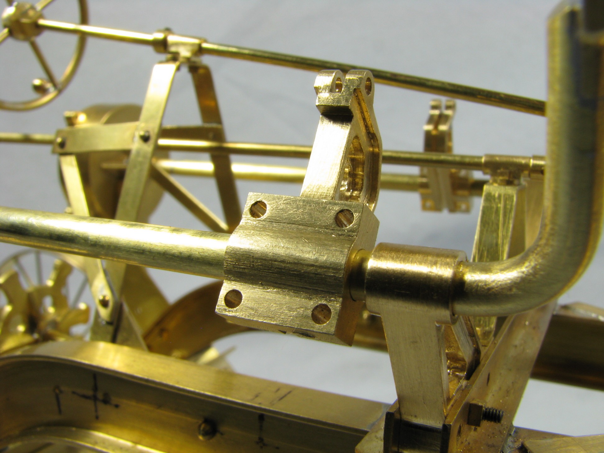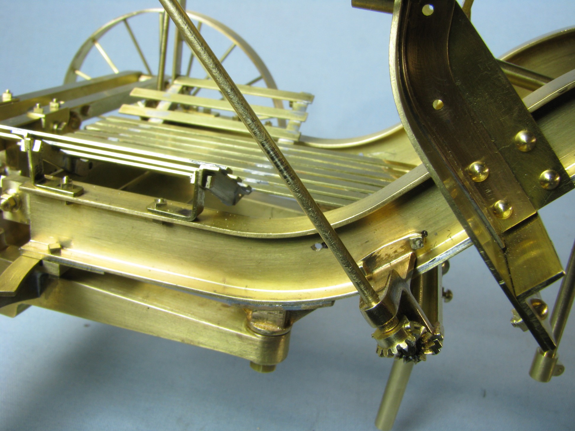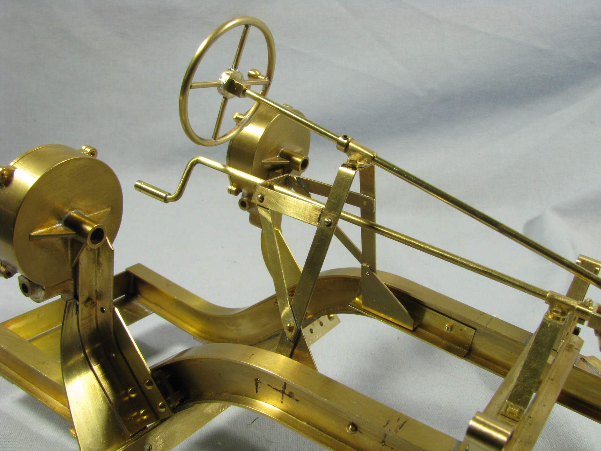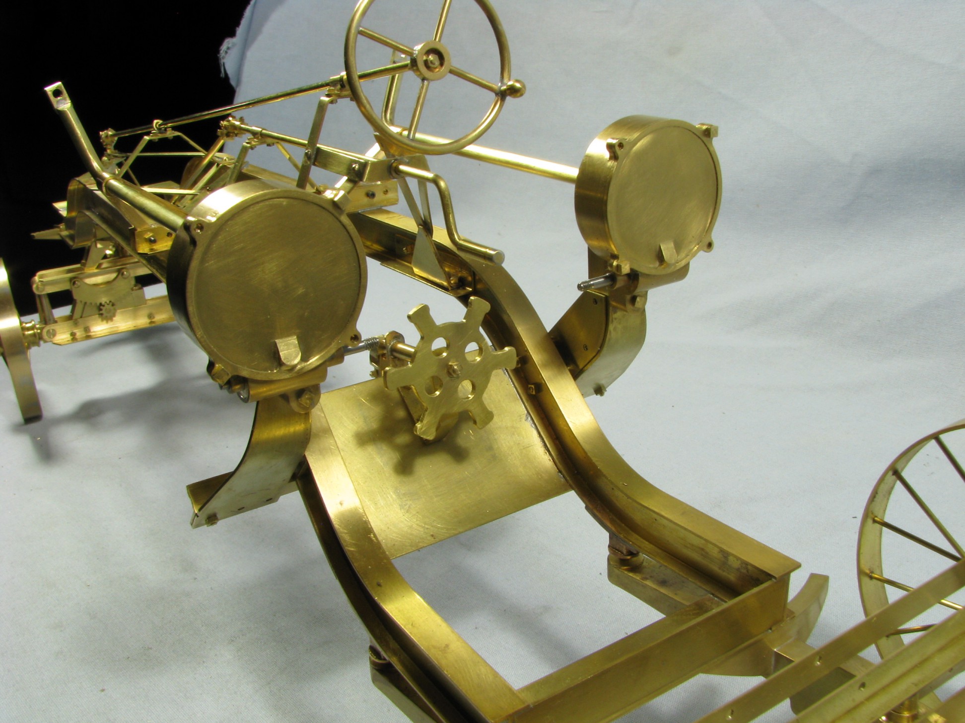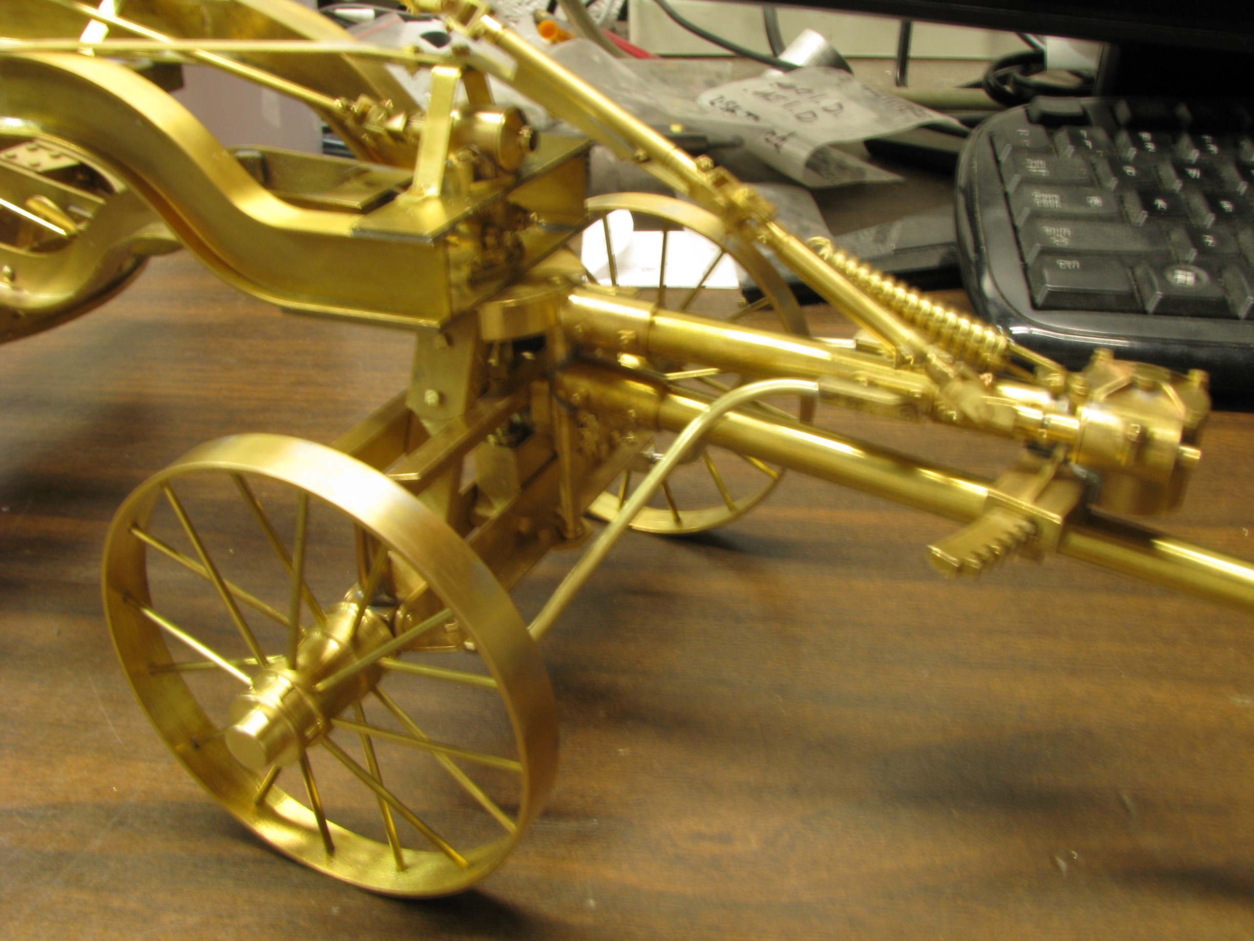 I was introduced to another member, Ken Foran, through the classic car show The Glenmoor Gathering. Ken had arranged to have a modeling area and I was invited. This was my introduction to the fabulous brass fabrications that he creates. His work can be found in the display area. I used his inspiration in creating my model.