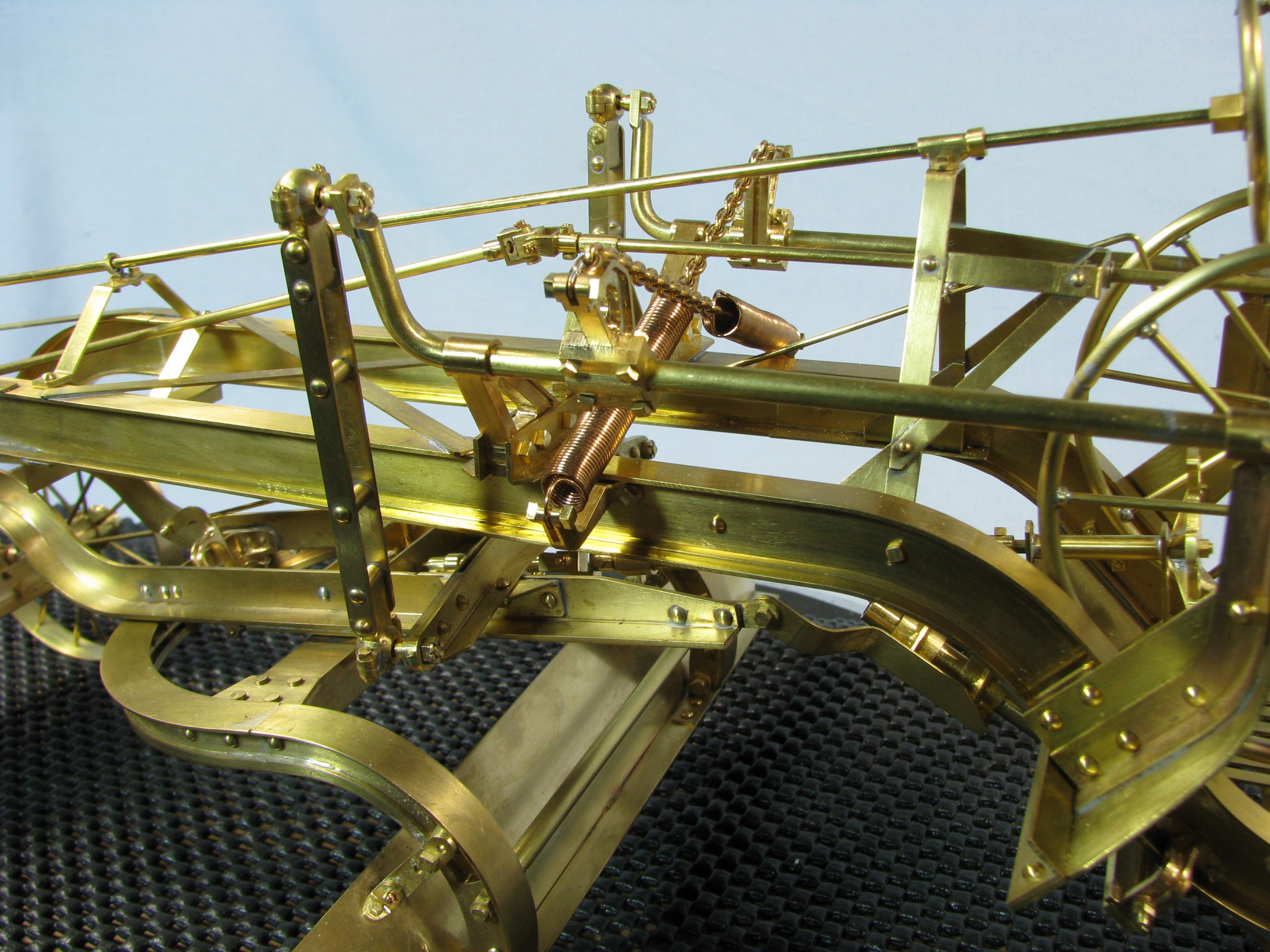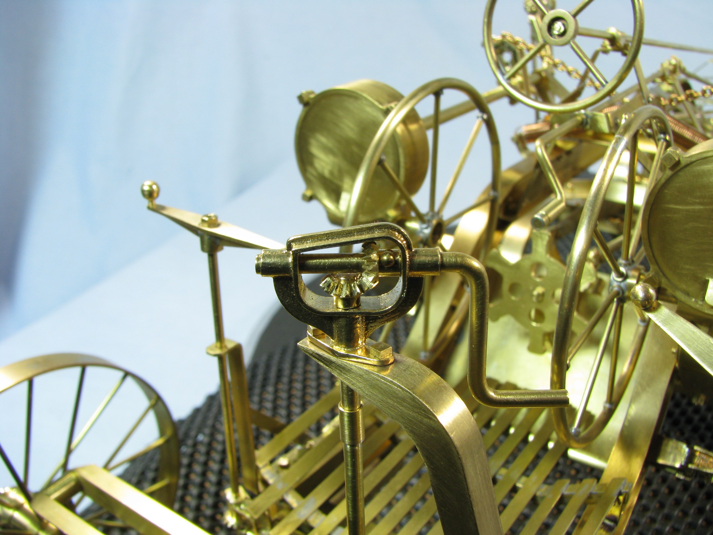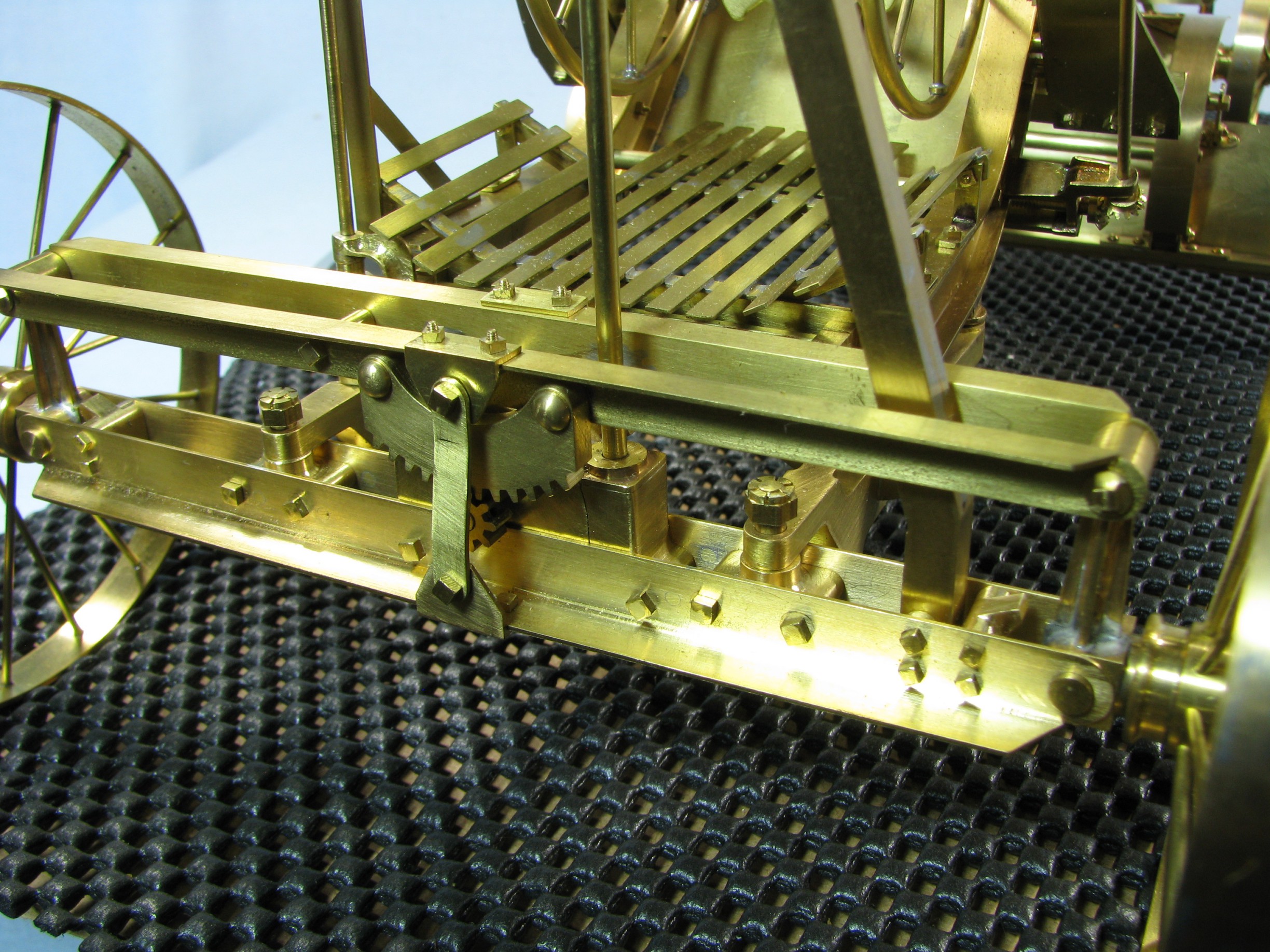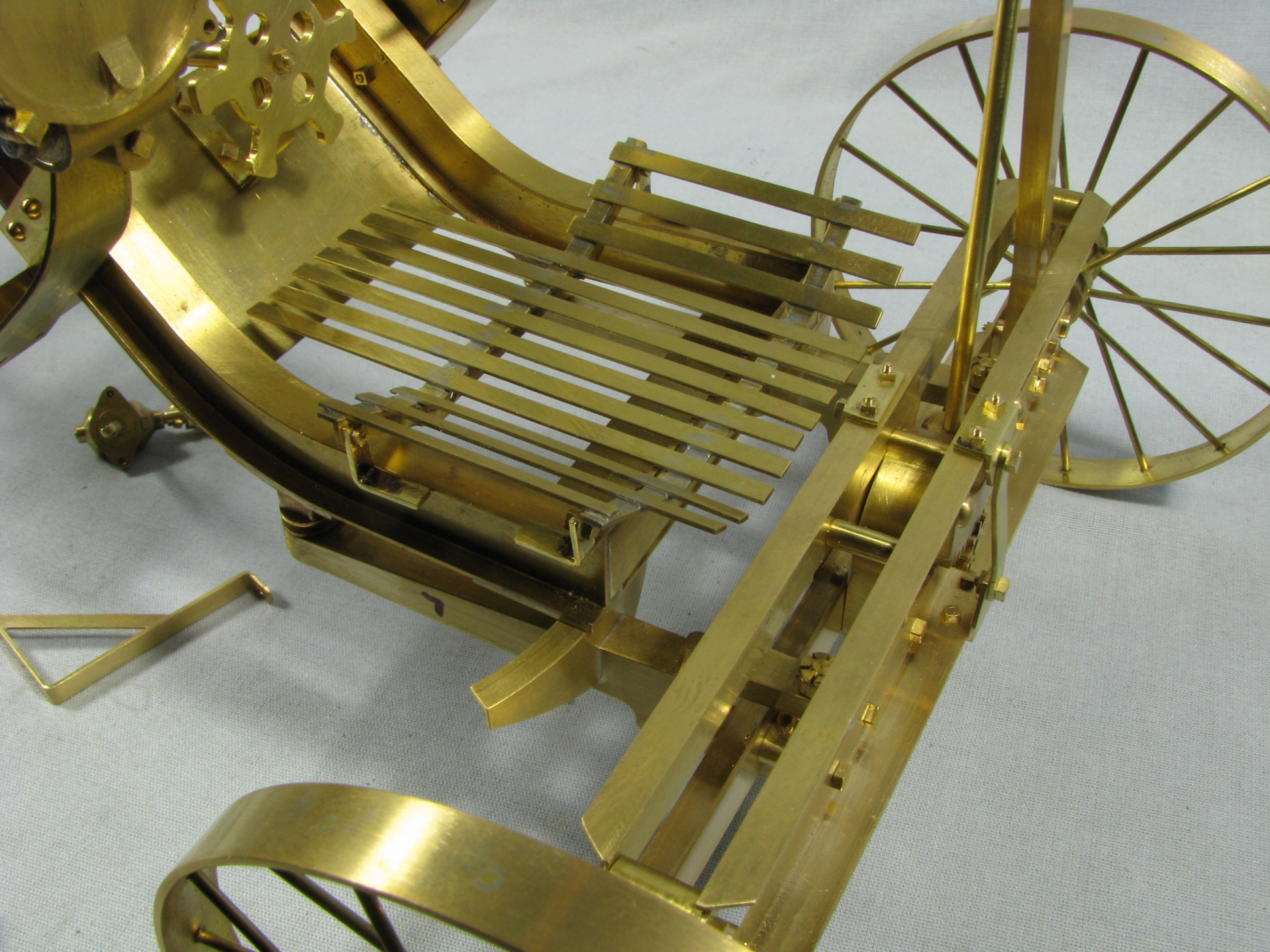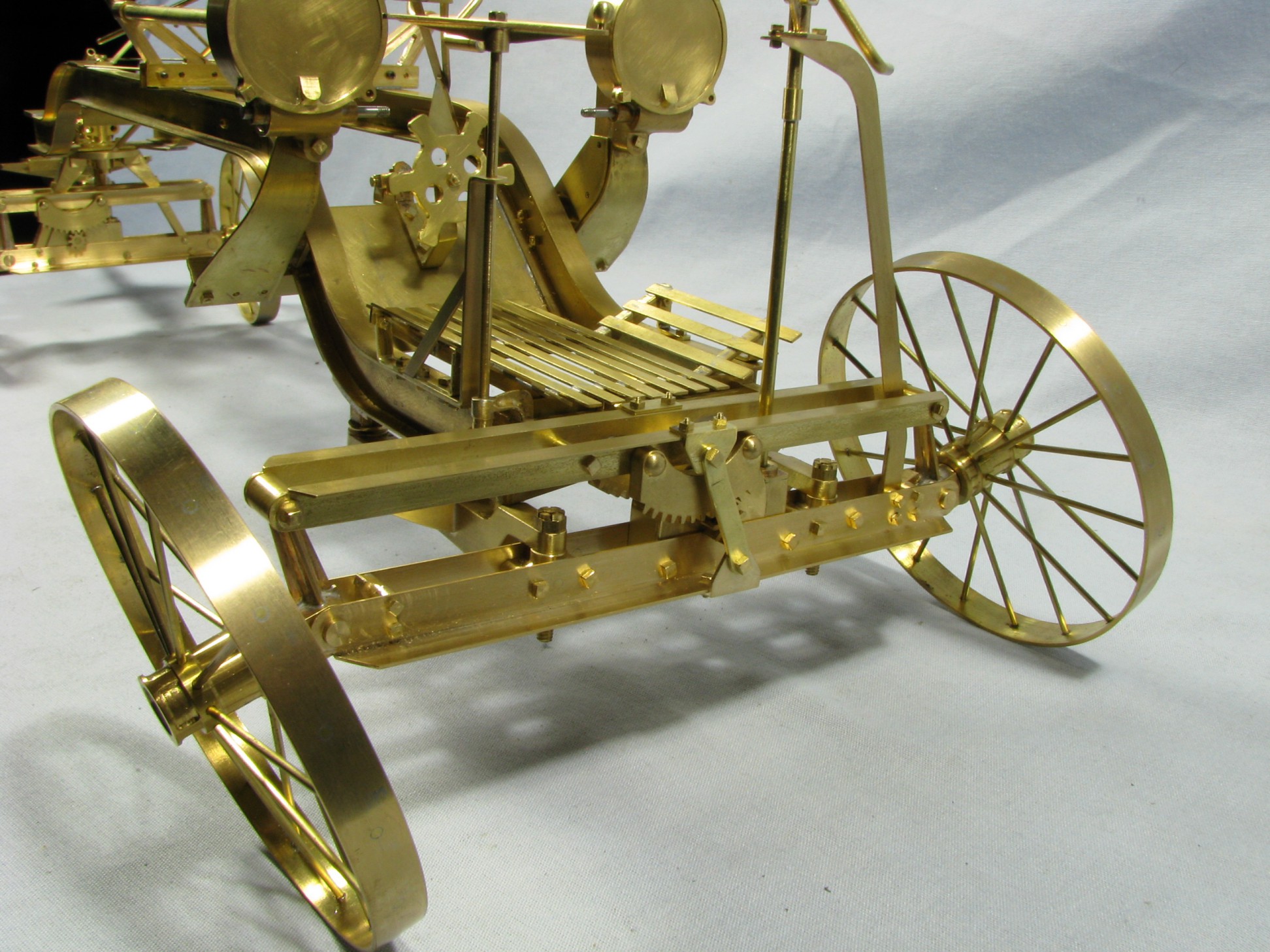 I was introduced to another member, Ken Foran, through the classic car show The Glenmoor Gathering. Ken had arranged to have a modeling area and I was invited. This was my introduction to the fabulous brass fabrications that he creates. His work can be found in the display area. I used his inspiration in creating my model.