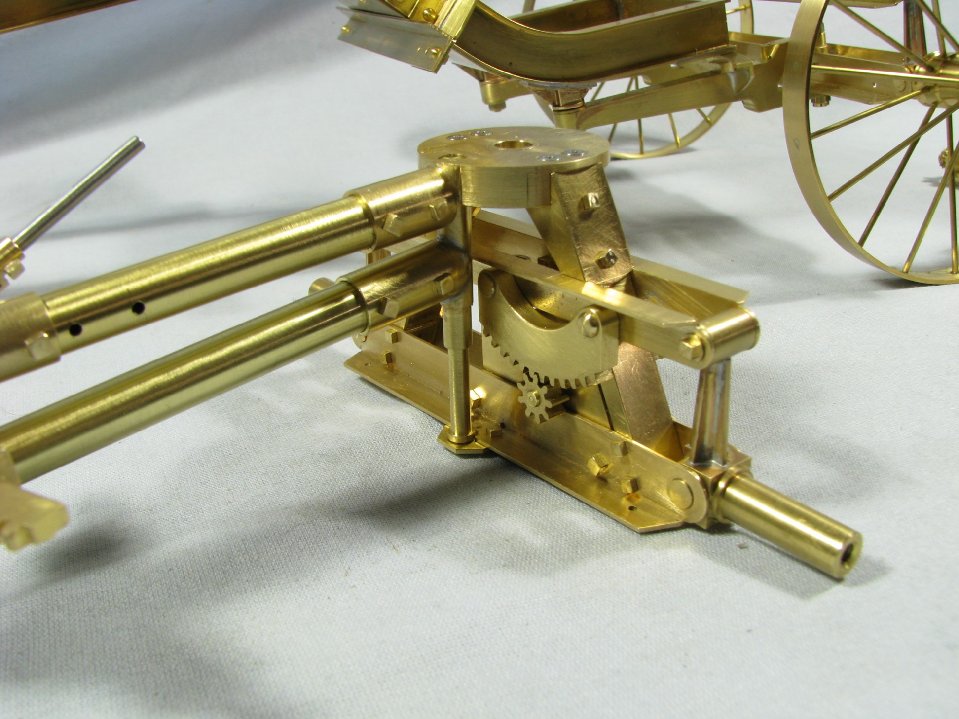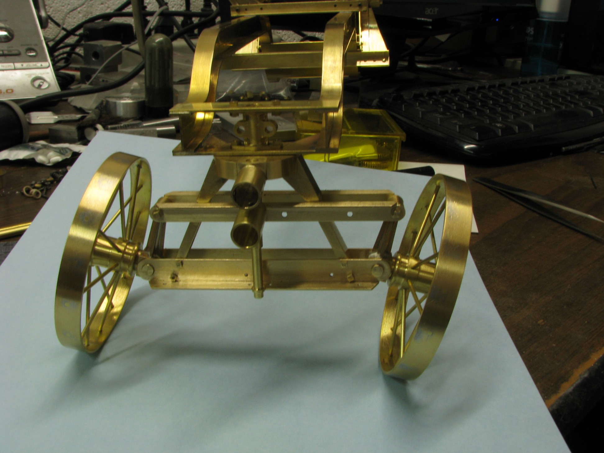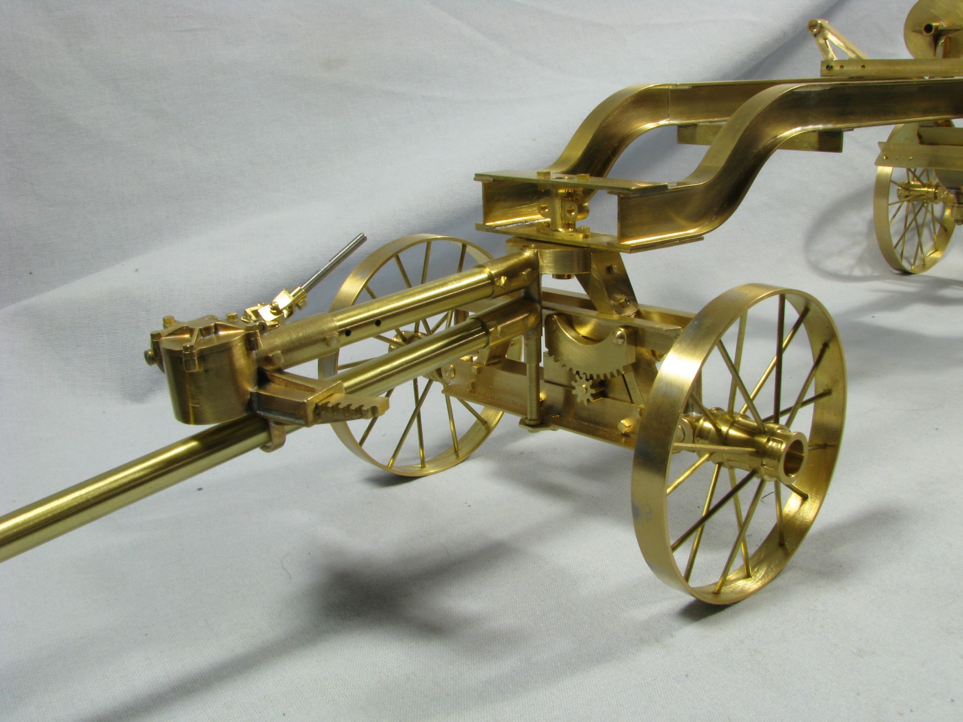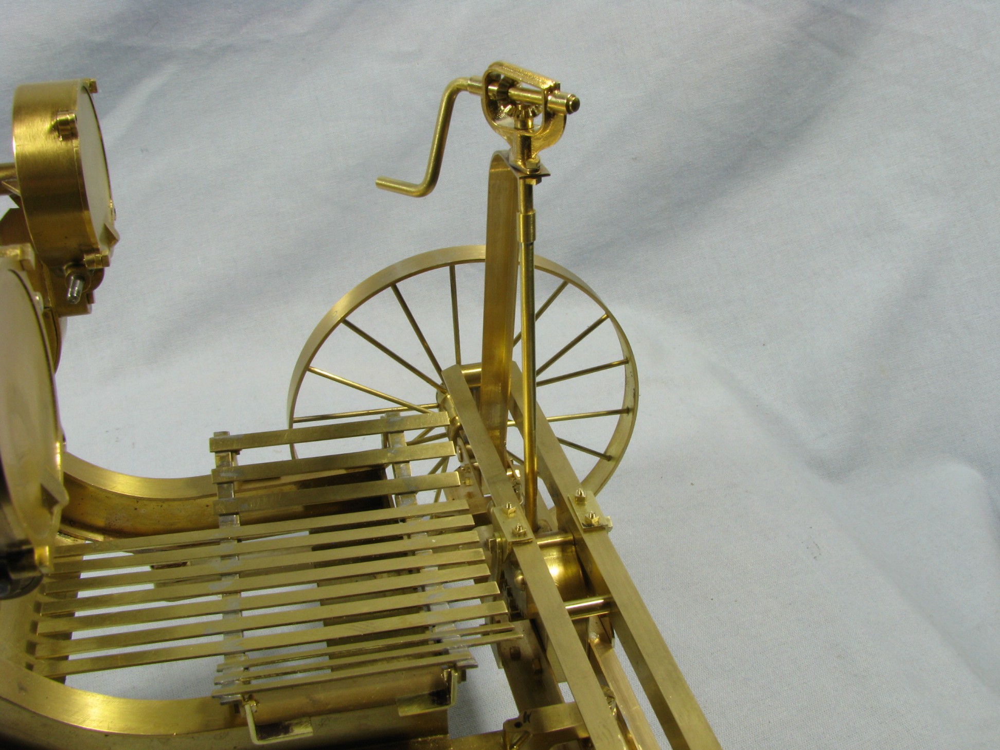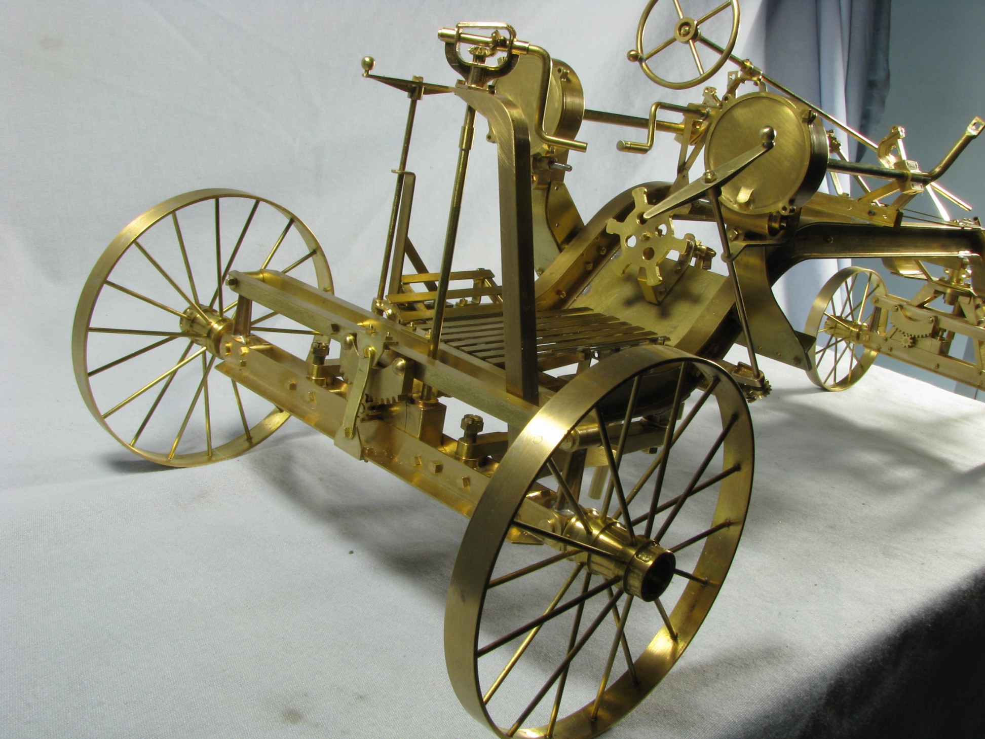 I was introduced to another member, Ken Foran, through the classic car show The Glenmoor Gathering. Ken had arranged to have a modeling area and I was invited. This was my introduction to the fabulous brass fabrications that he creates. His work can be found in the display area. I used his inspiration in creating my model.