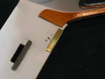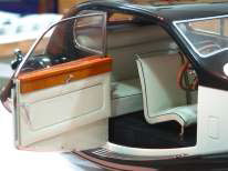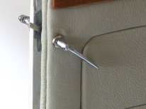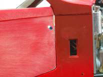 Another important custom operation you must undertake is the fabrication and installation of the latch catch inside the car’s body. Left, you see we used a piece of stock brass and glued it to the body. Size, position and thickness will have to be determined for each car individually, as it is driven by your earlier choices. On the right, you will see that, once upholstered, the latch is almost invisible and extremely functional.