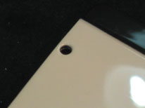 First, you must measure and cut the handle threaded rod. Make sure you allow the rod to go through your assembled door, bezel and interior leather panel and that it has enough threads to attach the interior handle as shown. Also note on both pictures that a latch must be made to close the door when the handle is turned. For the example shown, we used 1/16” by 1/32” brass stock, which was threaded with a 00-90 tap and held with a 00-90 nut. The length of the latch will vary from car to car. Also, note below that the holes on the doors might require repositioning. We recommend filling the original holes with styrene and drilling new holes where required. In the example, they were moved to allow for custom window channels (below right). Again, your individual setup will depend on the position and design choices you make for your particular build.