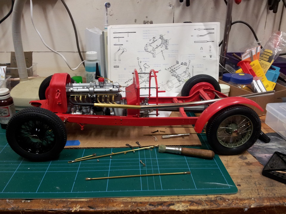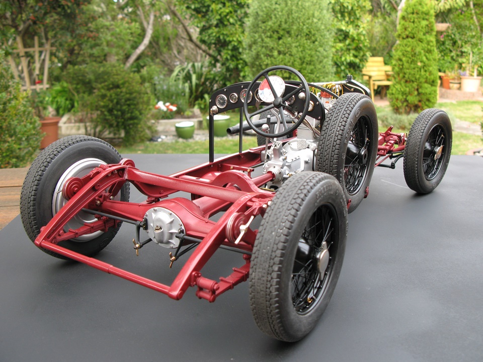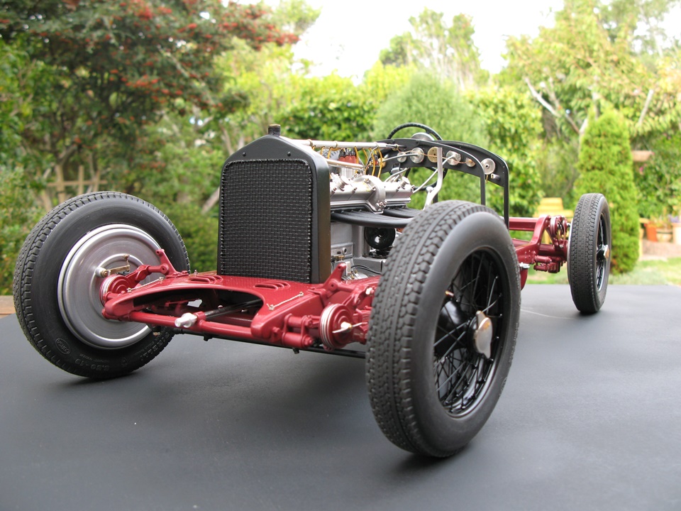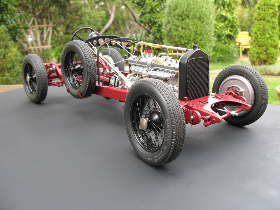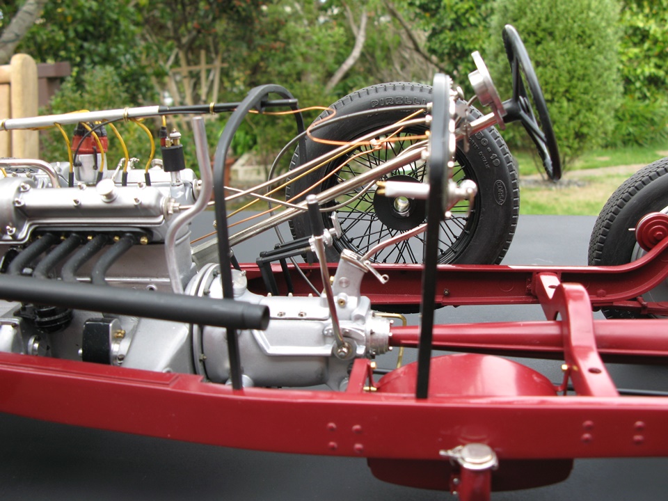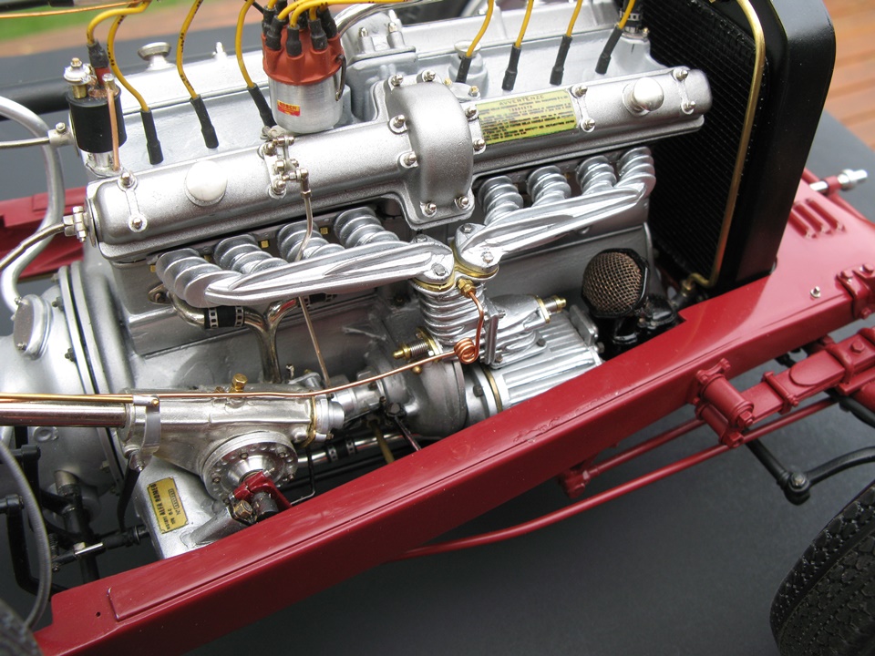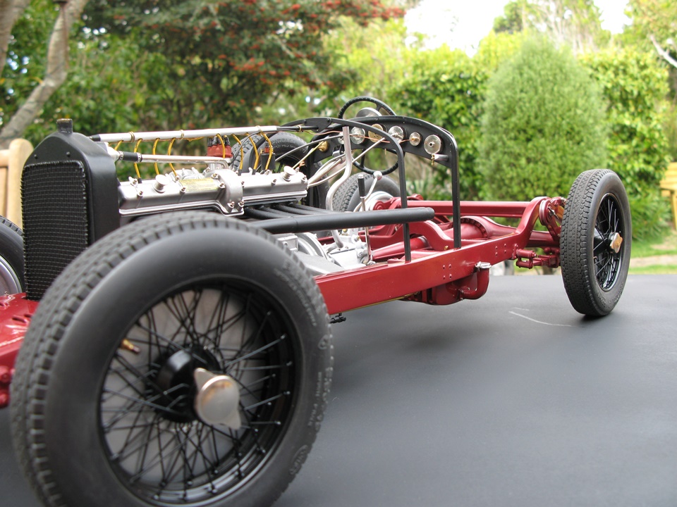 It has been our contention here at Model Motorcars, LLC. that replacing a few details and adding considerable effort and craftsmanship is all that it takes to transform a Pocher into a serious scale replica. Our argument is eloquently made by models like this award winning Alfa 8c 2300 chassis built by New Zealander Jo Martin . This time, the builder has gone to the extra effort of replacing all the fasteners and building replicas of those elements only hinted at by the original kit. As this project progresses, it will be interesting to see the results of such an ambitious and fastidious method. So far, the results are wonderful.
