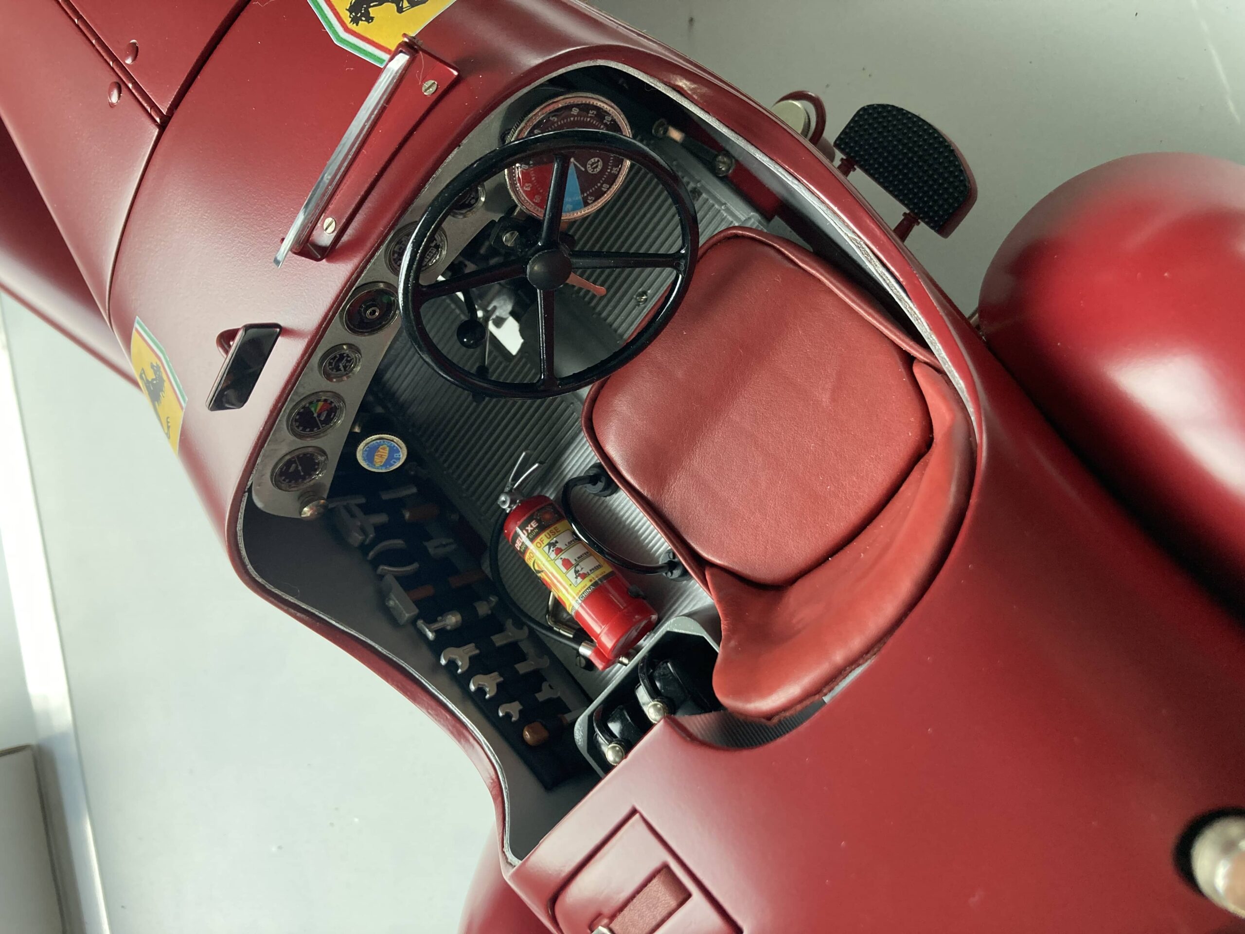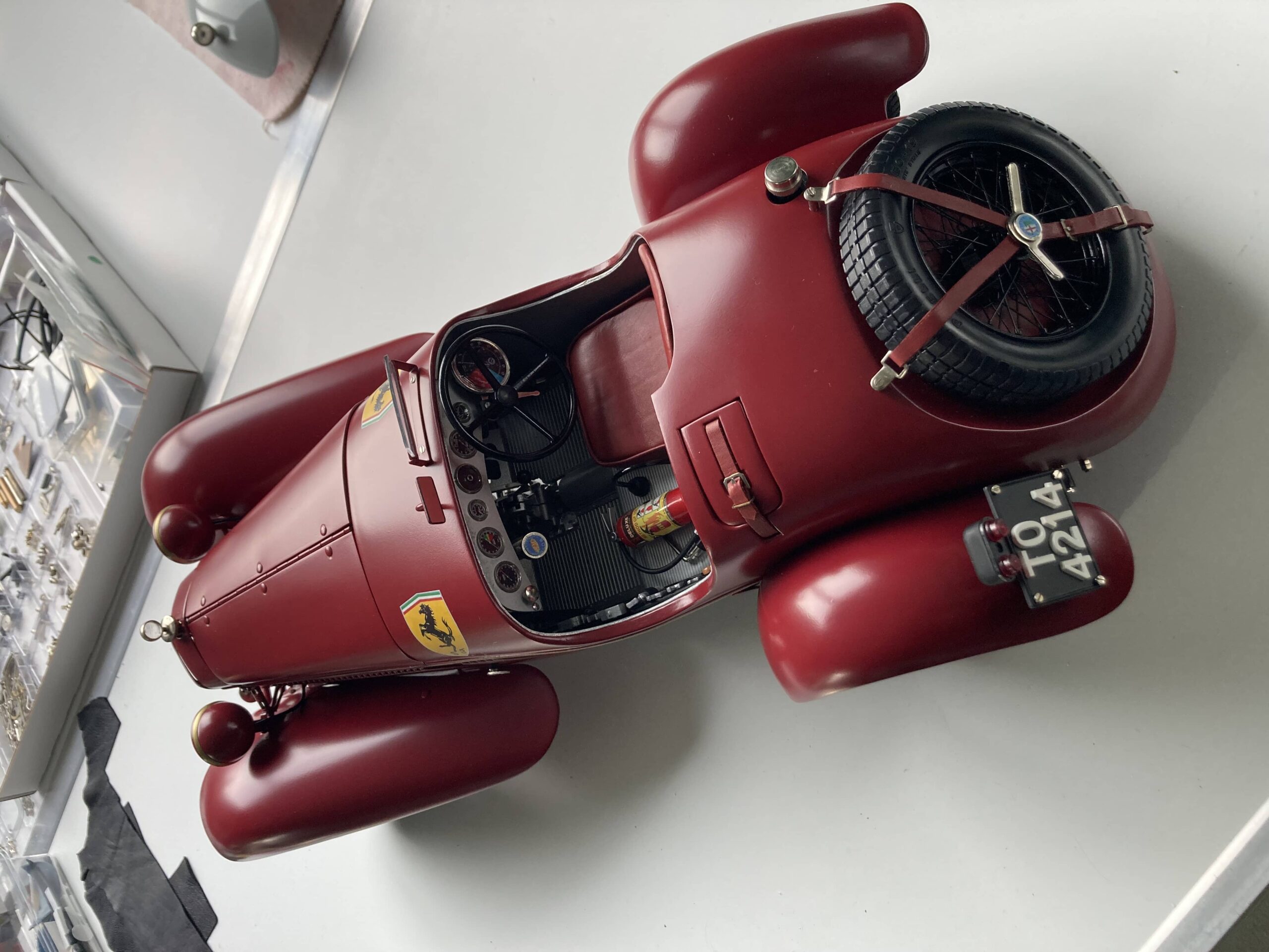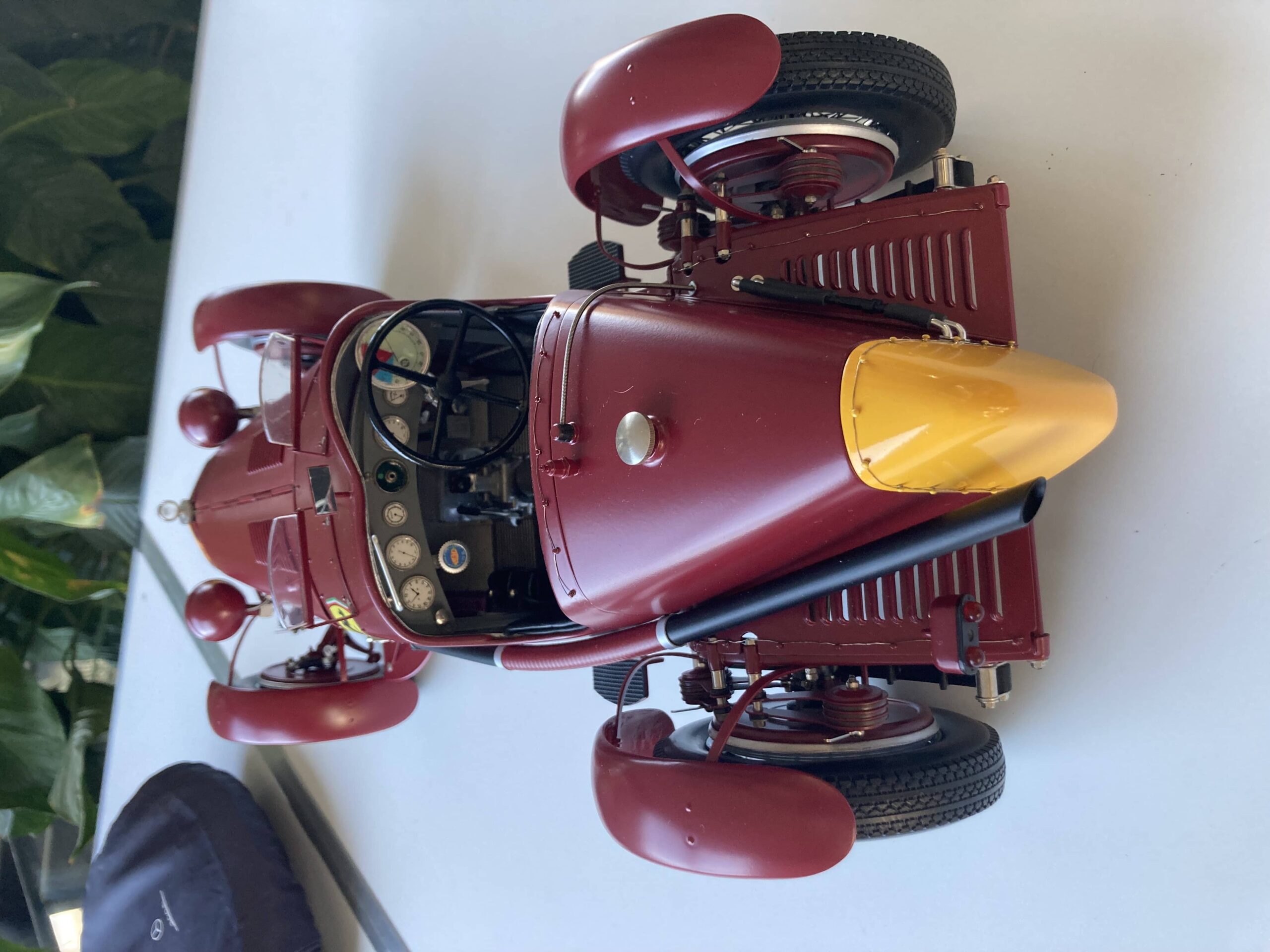 The pair of Monzas are particularly interesting in that they provide a study in subtle variations. One car sports bobbed fenders from a spider which are a surprising compliment to the boat- tail Corsa body, and both cars have side-mounted spare wheel. The open-wheeled Corsa version looks as if it has been lifted straight out of a historic Monaco race, and both cars capture the look of well-kept racers. Small details are everywhere, and viewers can be forgiven if they forget they are examining models and not the full-size cars. From the straps retaining the spare wheels (different colors for each car) to the vents on the fuel fillers and the two versions of step plates, these models make a handsome and compelling pair. The Pocher Alfas may have been a challenge to build, but there is no sign of struggle in these two. They look as if you could climb in and drive them away.