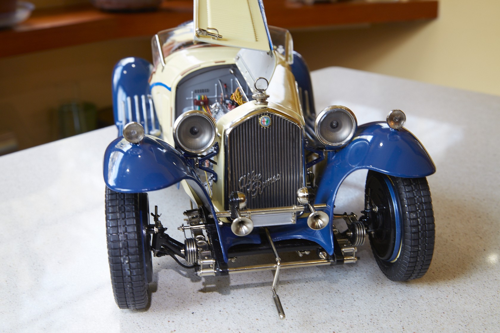 We at Model Motorcars see a large number of Pocher projects, and we enjoy seeing how many of our components we can identify on any one model. While it is true that the more components we see the better we like it, it is also true that we delight in seeing the variety of different approaches used by Pocher builders. Pocher builders are a resourceful and inventive crowd, and what they do with Pocher kits is a constant source of amusement and wonder for us here at MMLtd. When photographs of Joerg Pottoff's Alfa arrived on our desk, we immediately noticed that Pottoff seemed to take as much pleasure in using our components as we do, and yet there was something else about his model that that tickled our fancy. As we slowly worked out what it was that had us smiling, it dawned on us that our little family of Pocher enthusiasts has a wider range of interests than we might have expected. Our tent, it seems, covers more acreage than we had thought.
