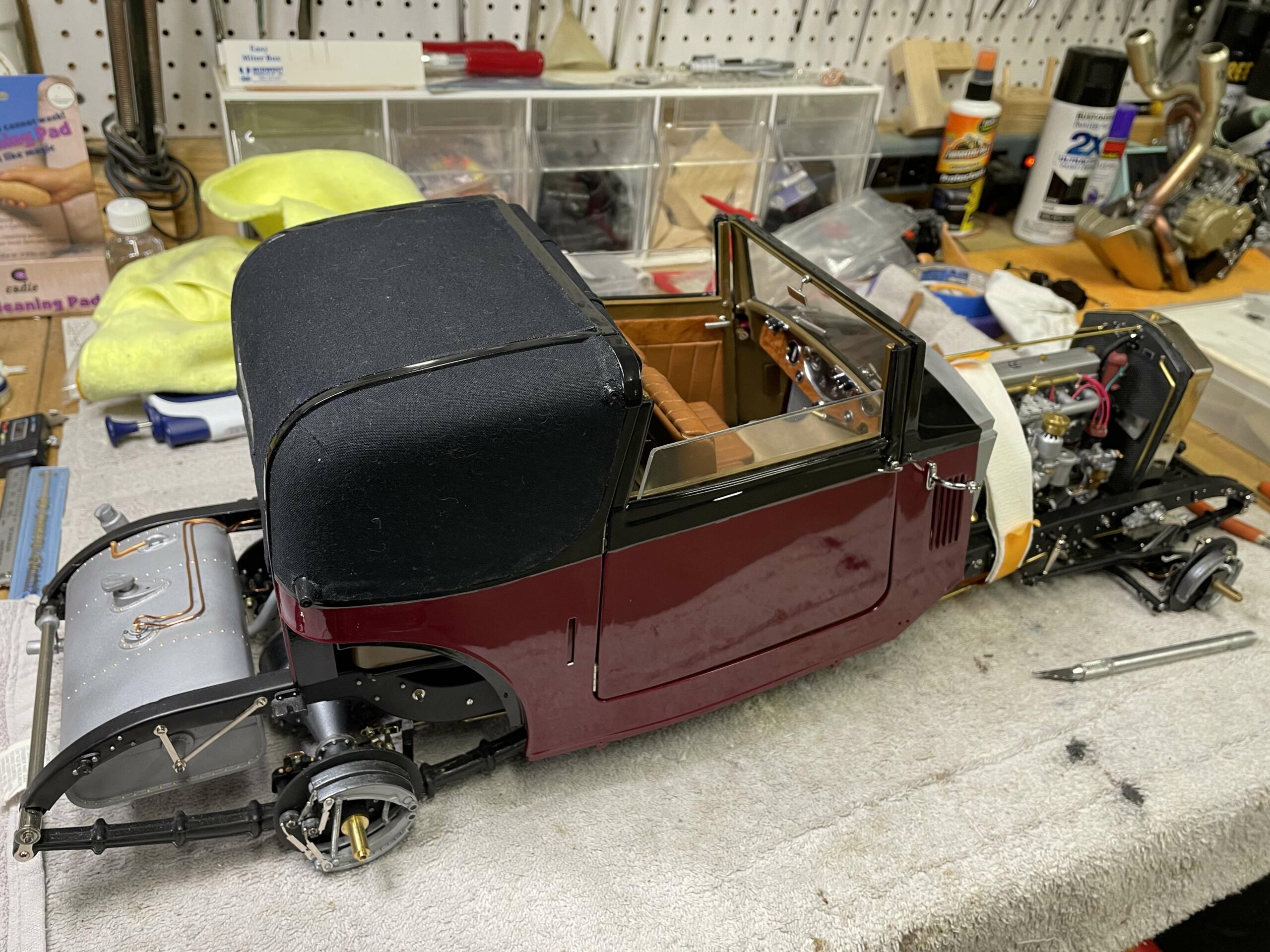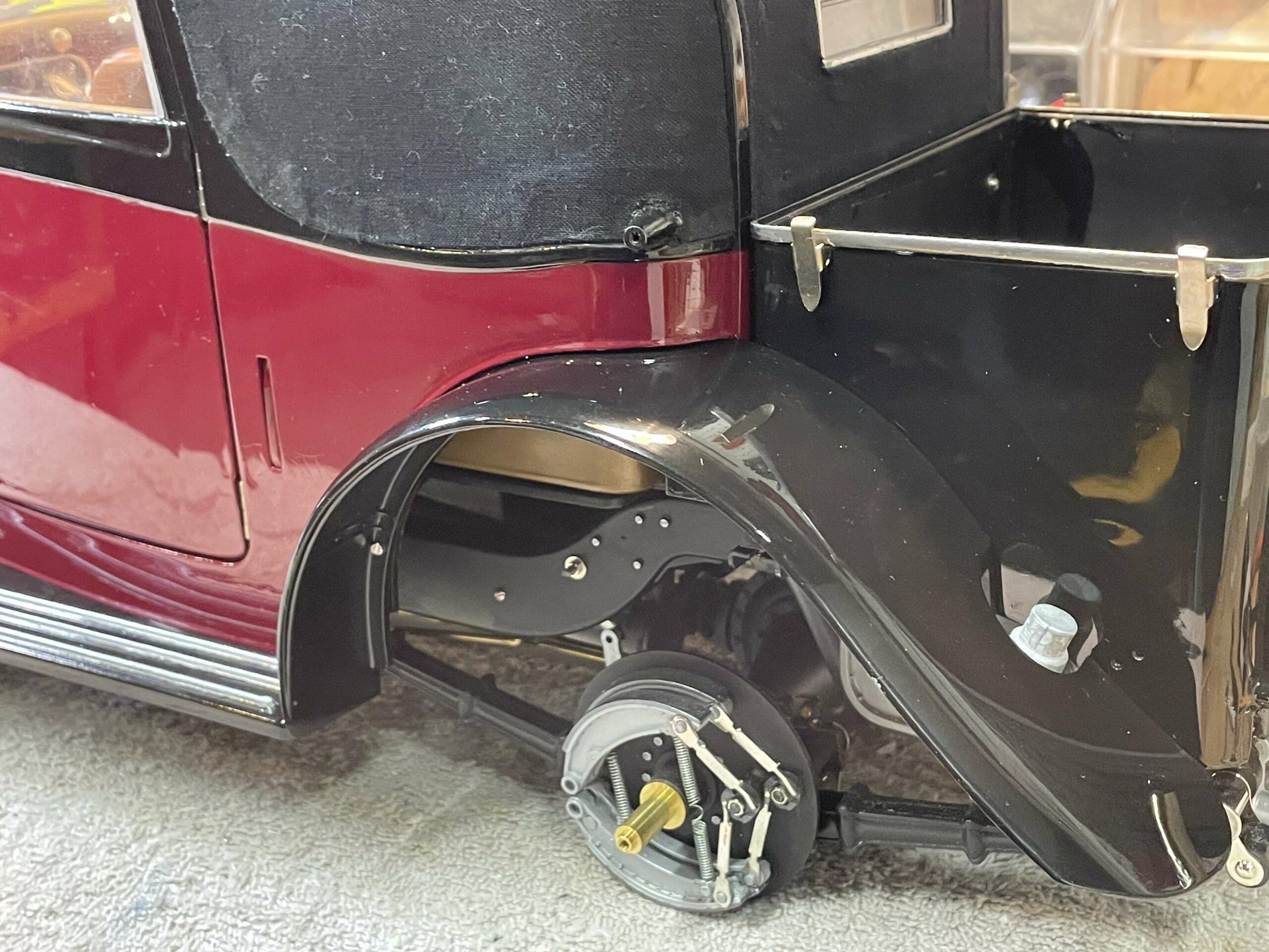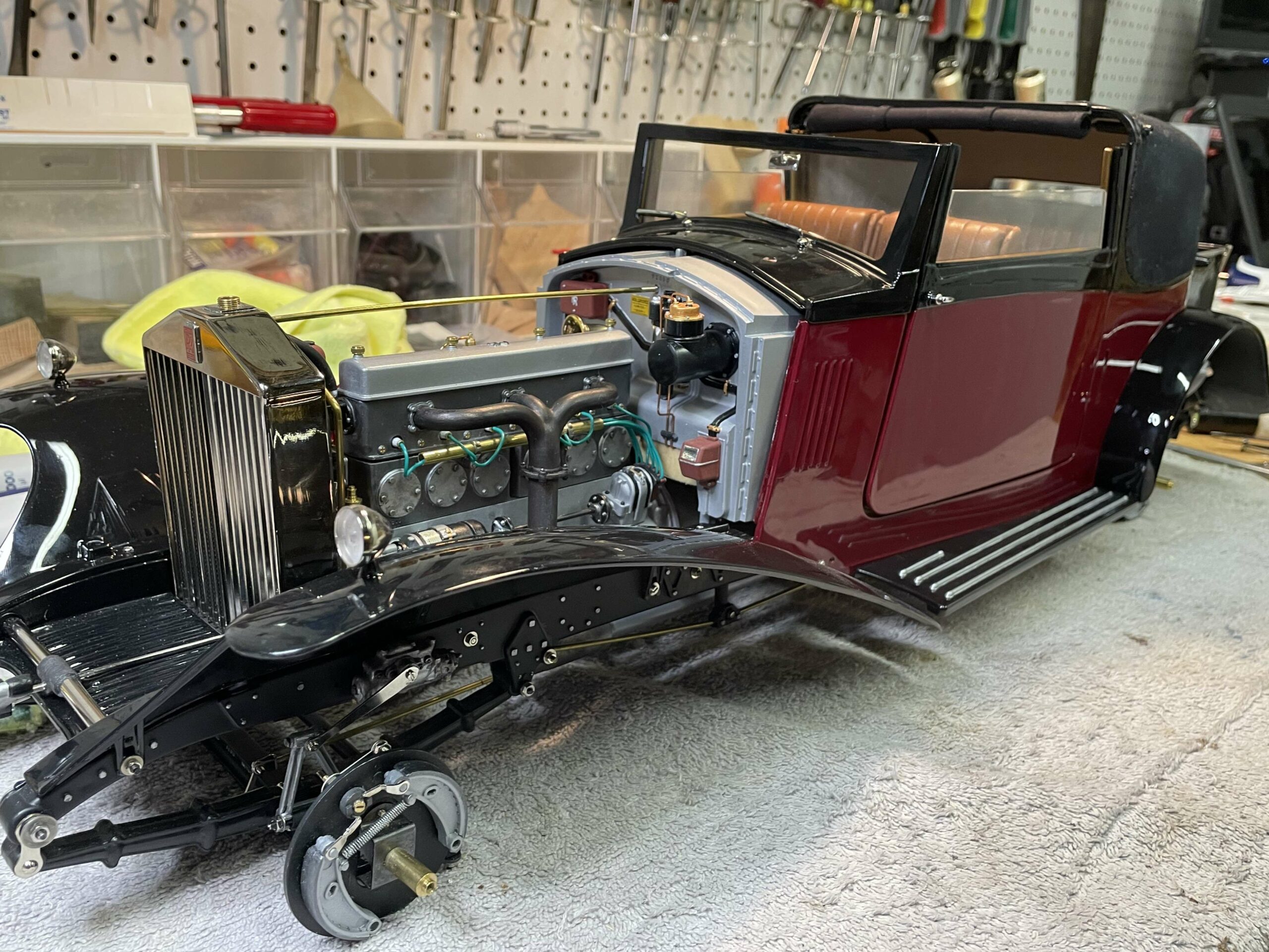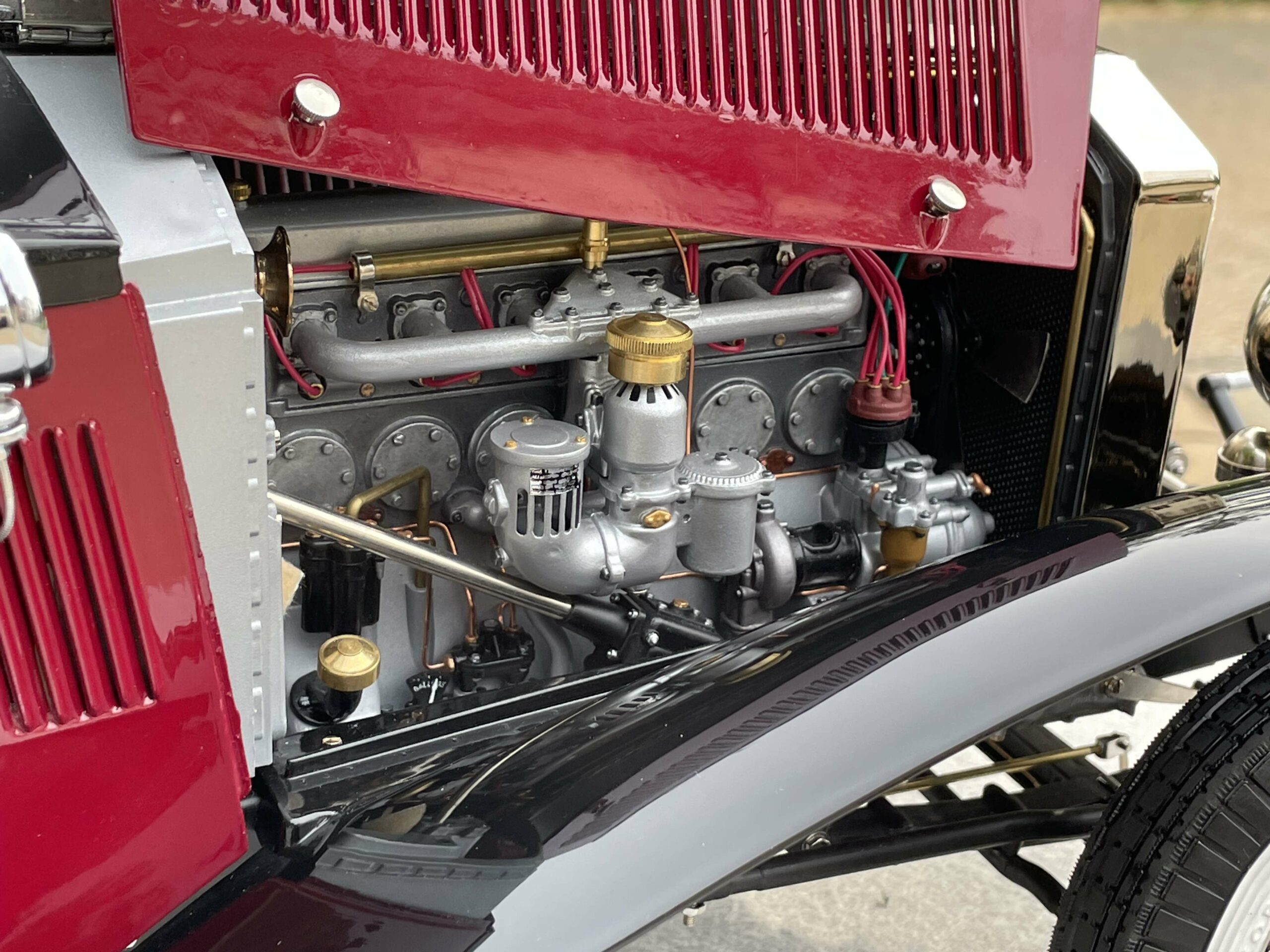 The construction photos—clear, sharp, and informative—are proof that building this Sedanca was a major undertaking, but they are also proof that careful, methodical work is the secret to success. No need for CNC mills, 3D printers, or teams of technicians, just careful, patient work. True, getting a beautiful paint job like this is a challenge, but Baldus’ use of aerosol cans will serve as an inspiration for many builders. The meticulous chassis and engine details make the most of the kit design, and the inviting interior show what can be accomplished with judicious additions and modifications to the kit pieces. In short, Baldus has managed to wrestle the Pocher parts into an heirloom which can serve to inspire the rest of us.