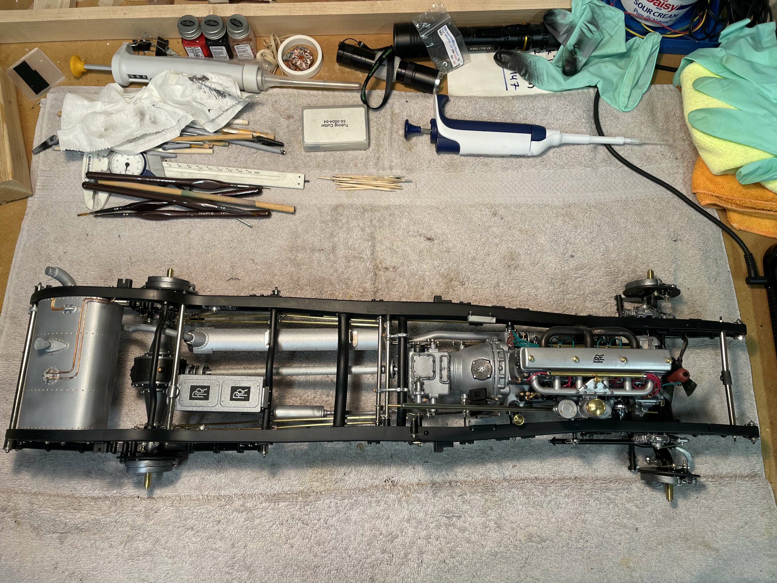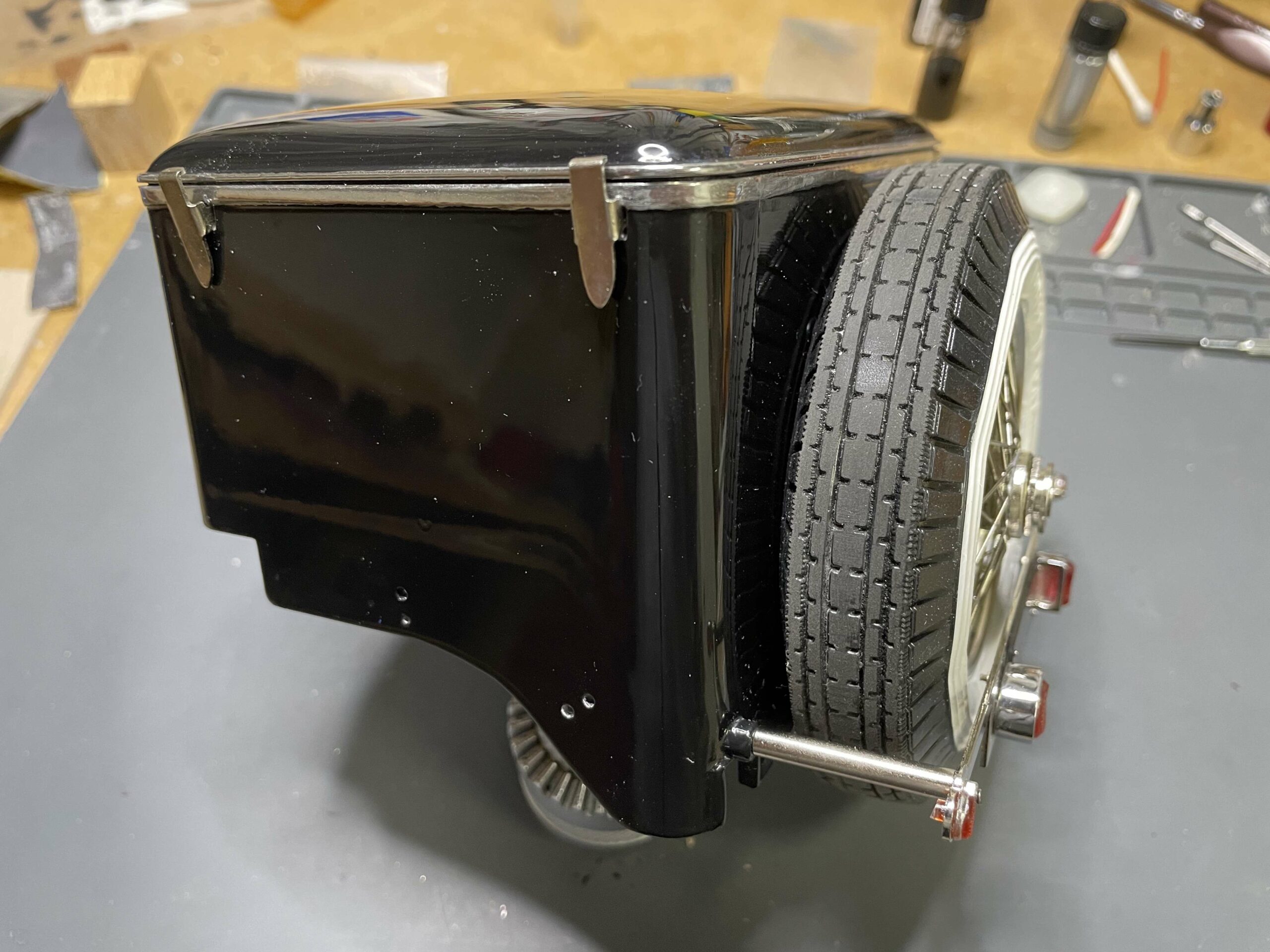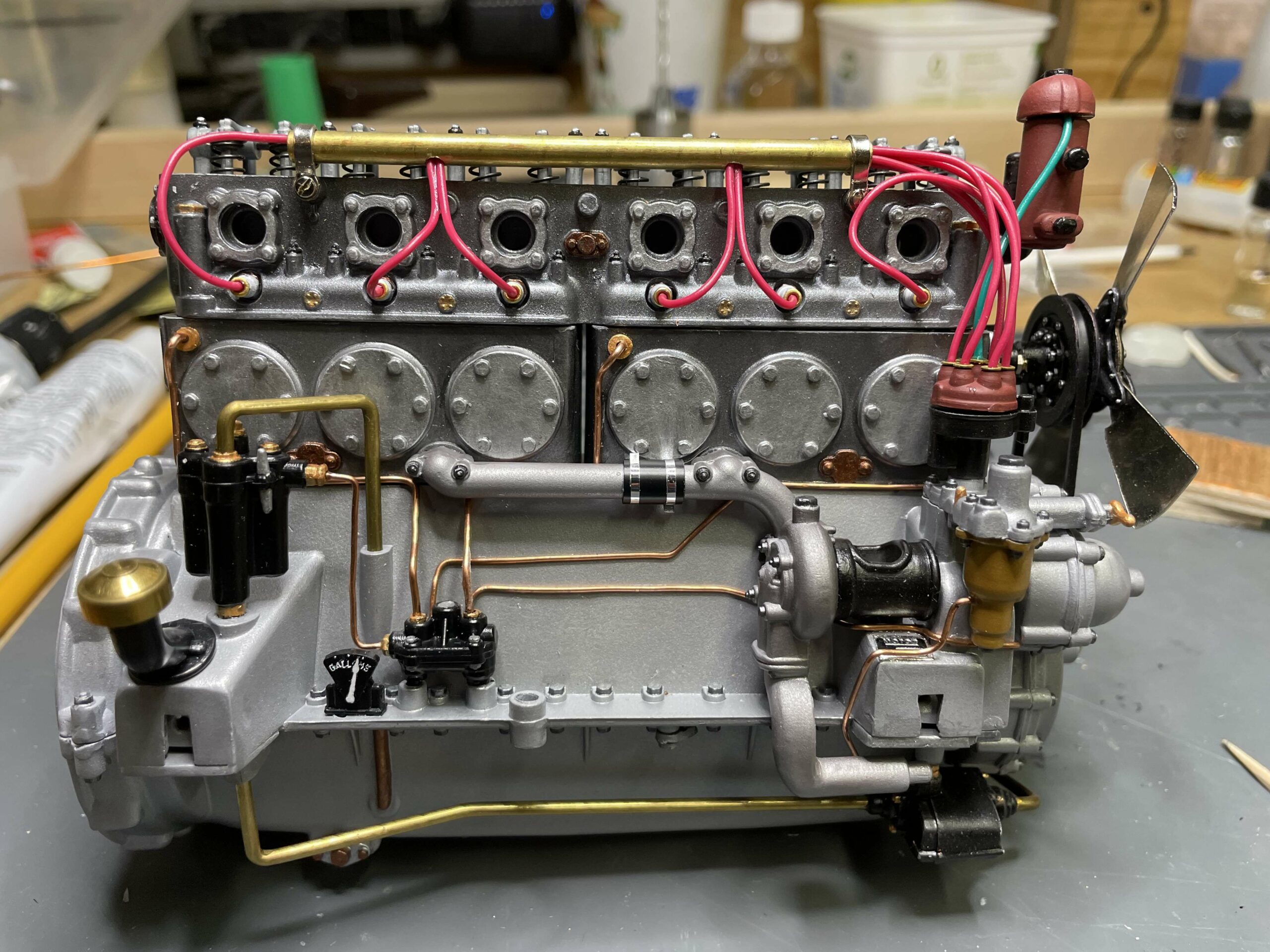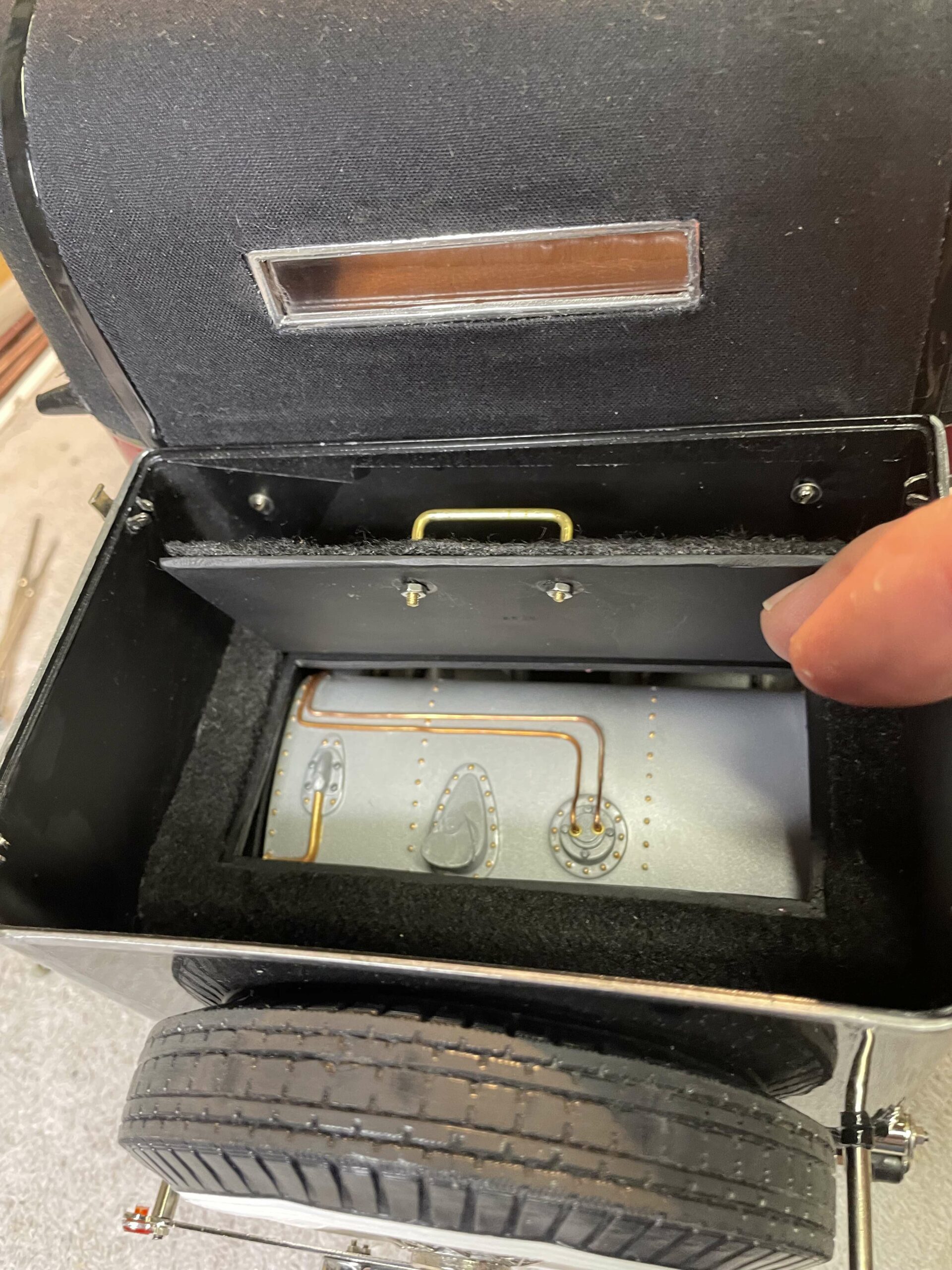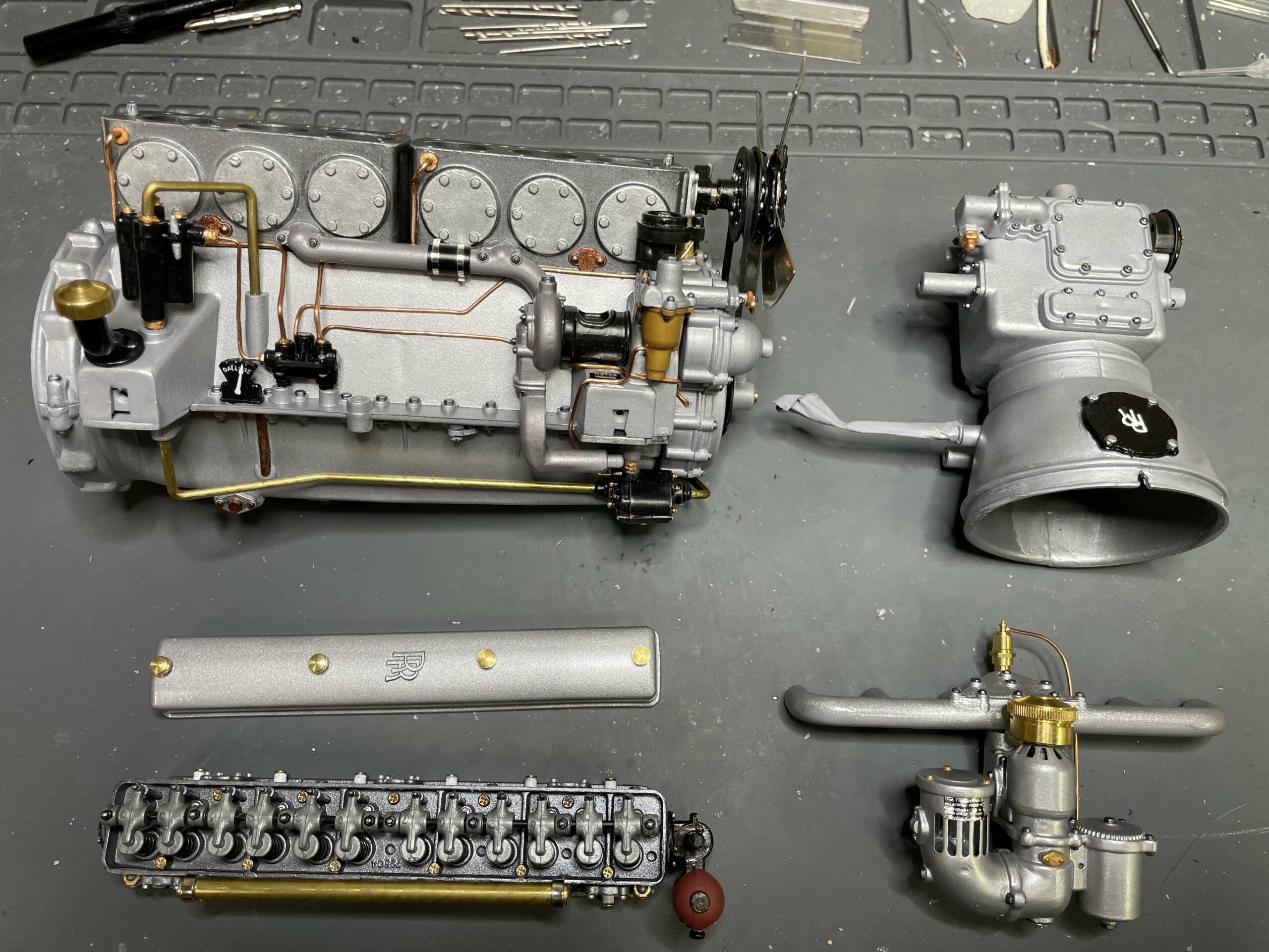 The construction photos—clear, sharp, and informative—are proof that building this Sedanca was a major undertaking, but they are also proof that careful, methodical work is the secret to success. No need for CNC mills, 3D printers, or teams of technicians, just careful, patient work. True, getting a beautiful paint job like this is a challenge, but Baldus’ use of aerosol cans will serve as an inspiration for many builders. The meticulous chassis and engine details make the most of the kit design, and the inviting interior show what can be accomplished with judicious additions and modifications to the kit pieces. In short, Baldus has managed to wrestle the Pocher parts into an heirloom which can serve to inspire the rest of us.
