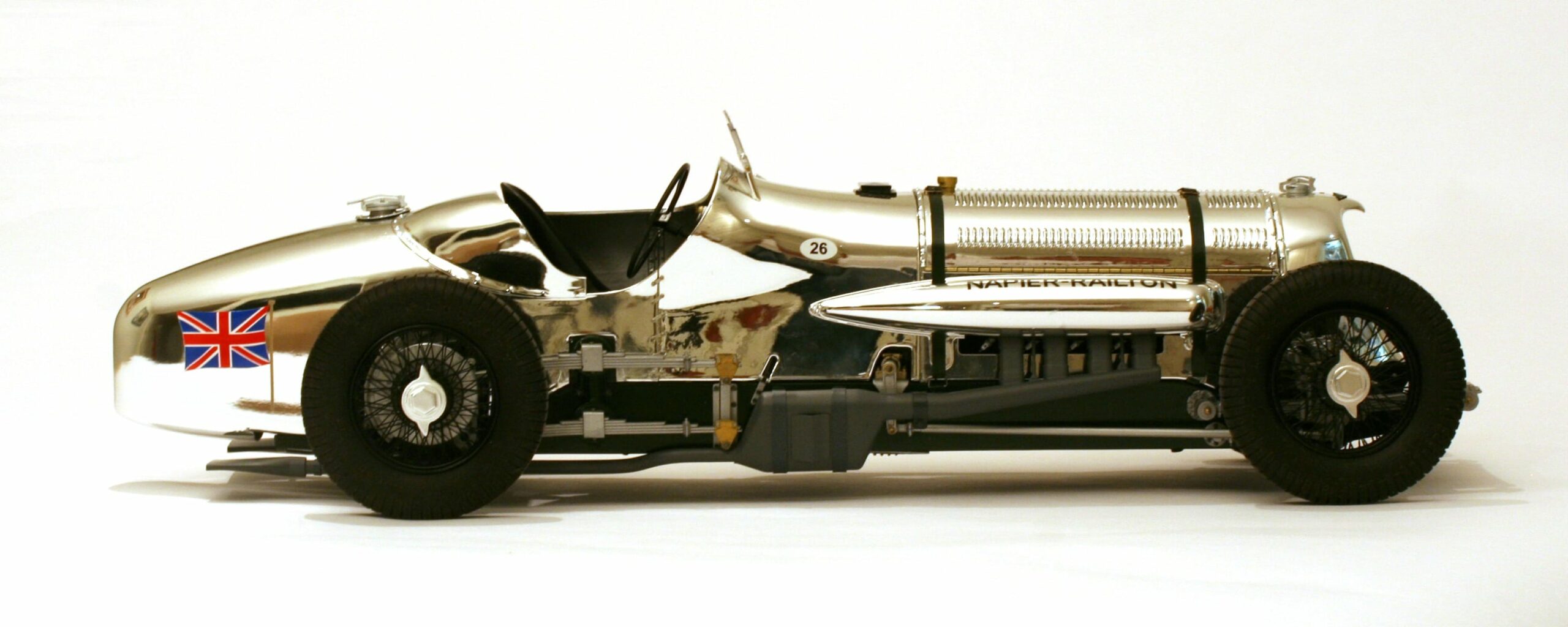 The 1930s were tumultuous times, both politically and economically. Despite that, the transformation of motor cars, from the staid upright carriage-like designs of the 20’s to the streamlined designs of the late 30’s was amazing. The fascination with that transformation led me to model a couple of Rolls-Royce Phantom IIs, based heavily on Pocher kits, but with lots of modifications including adding missing detail and correcting mistakes. Subsequently I scratch-built a 1:8 scale 1935 Austin Seven. After that the Napier-Railton seemed like a fun project.