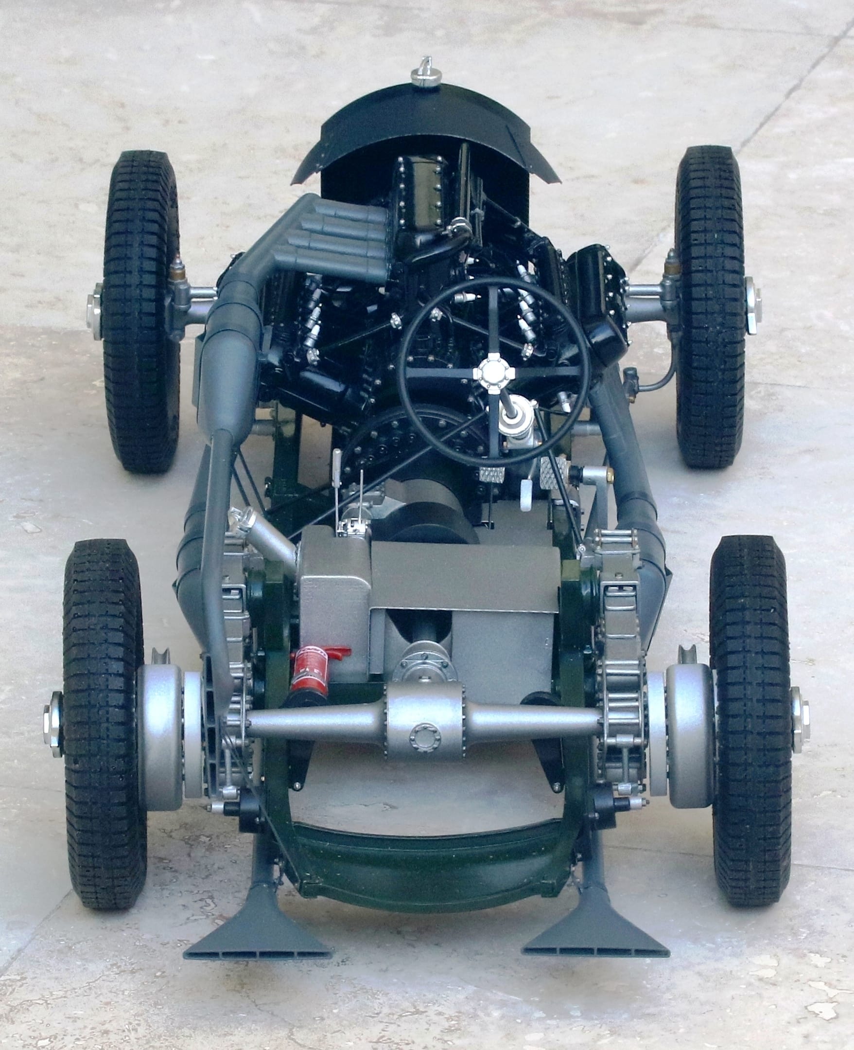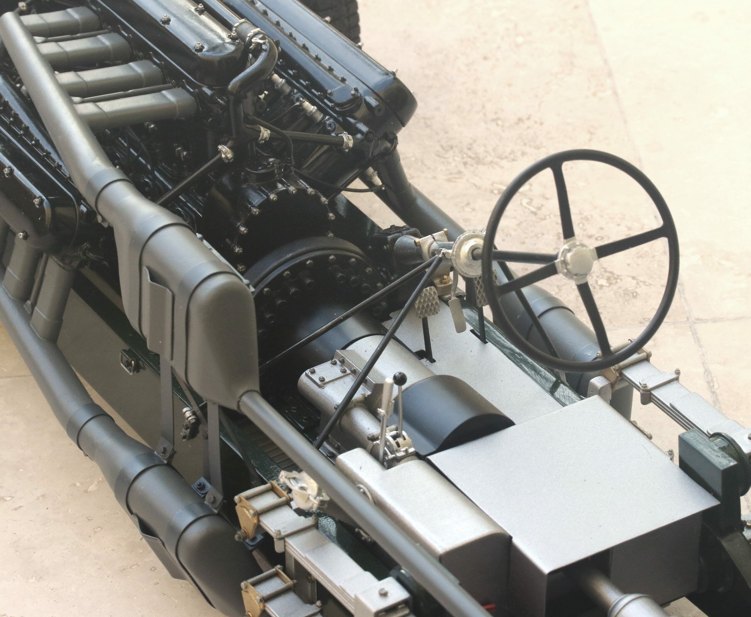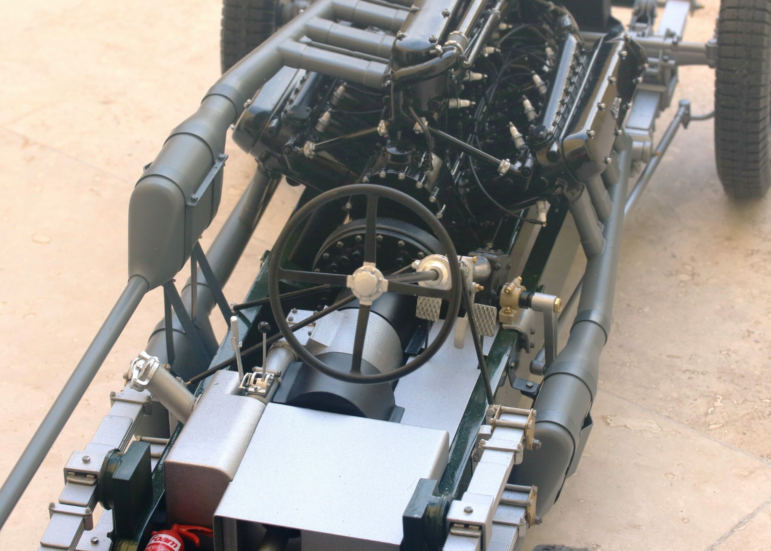 Necessarily, the Napier-Railton would have to be completely scratch built. But I had already taught myself CAD and 3D printing was readily available, so the biggest task was creating a reasonably accurate set of drawings. The prototype exists, at the Brooklands museum, but because of COVID visits there proved impossible. Very few drawings of the chassis exist, but the engine is well-documented since it had been the mainstay of the RAF since 1919. Fortunately, I did find a lot of photographs of the car online and I was also blessed with the generous gift of some private photos that showed much of the detail of the car. The rest was triangulation based on the few measurements (wheelbase, track, tire size, etc.) that were documented.