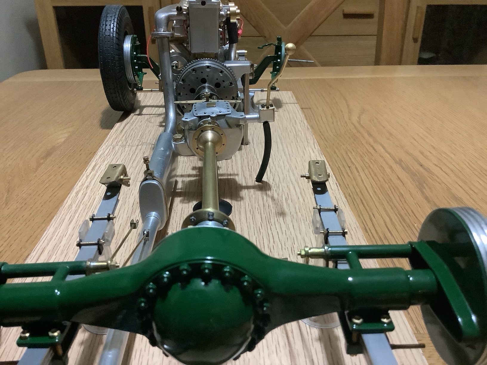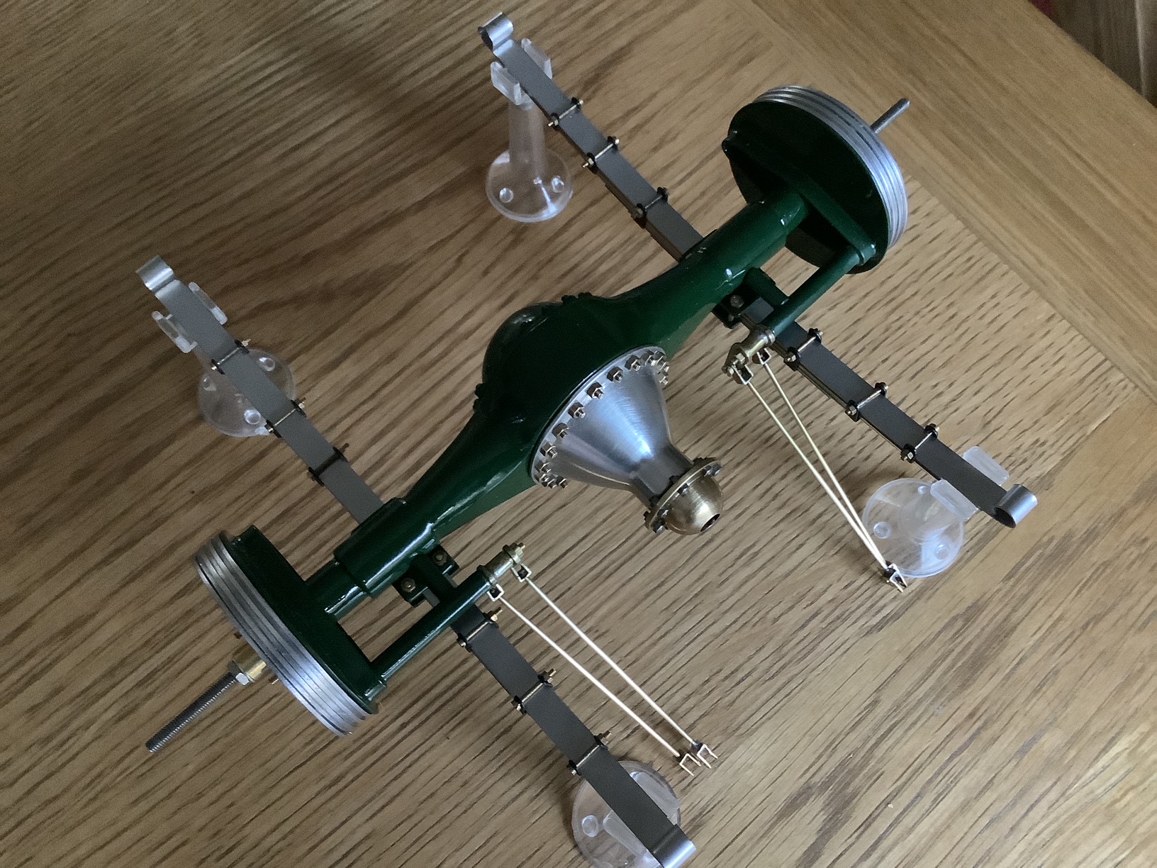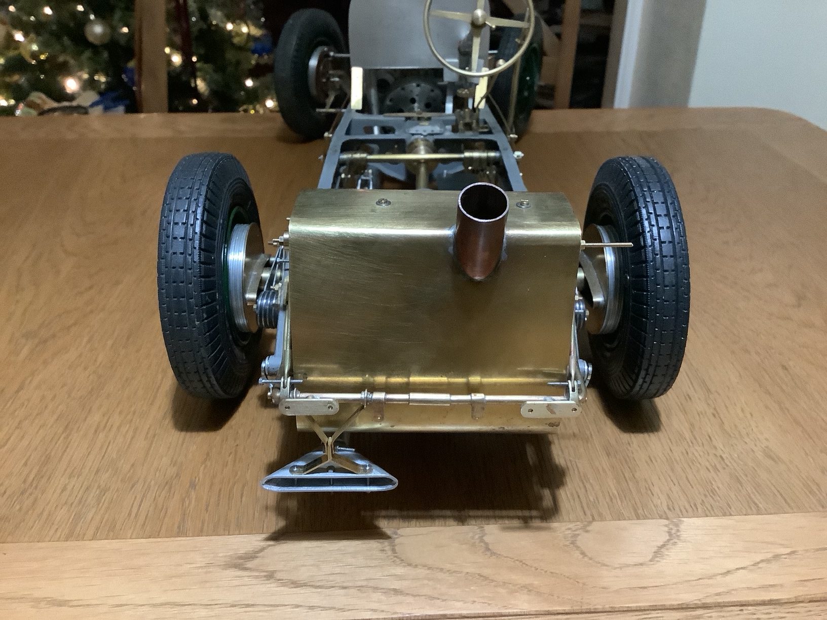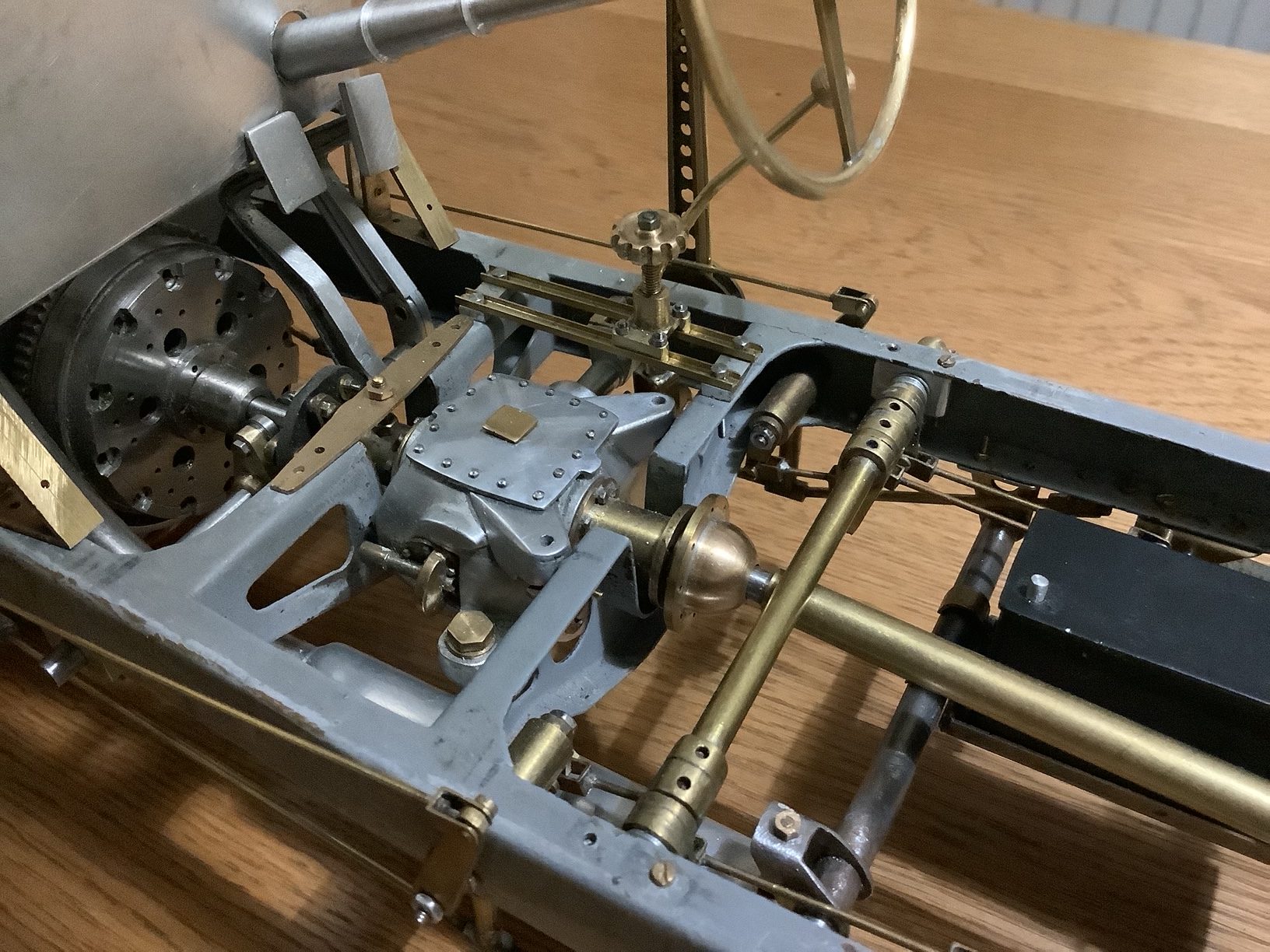 Back axle is made up of brass sheet and tube, with the rear of the differential being a brass clock bell!