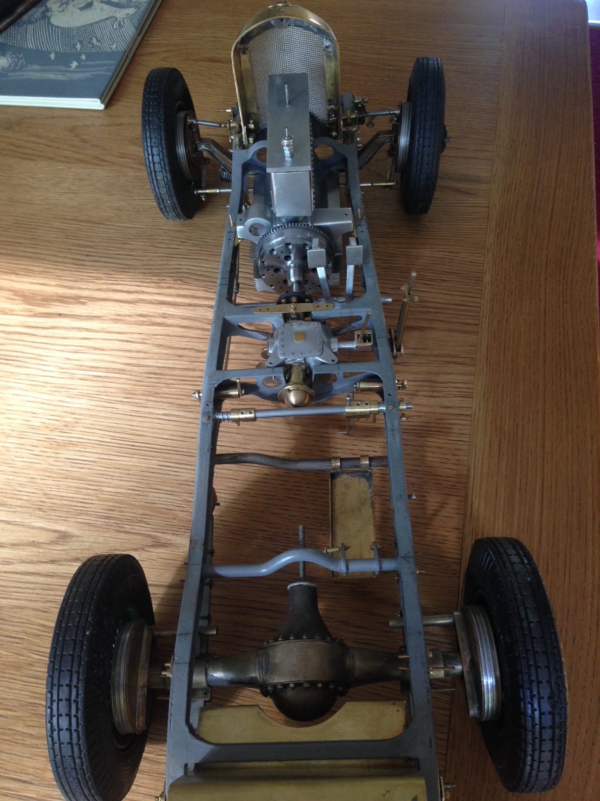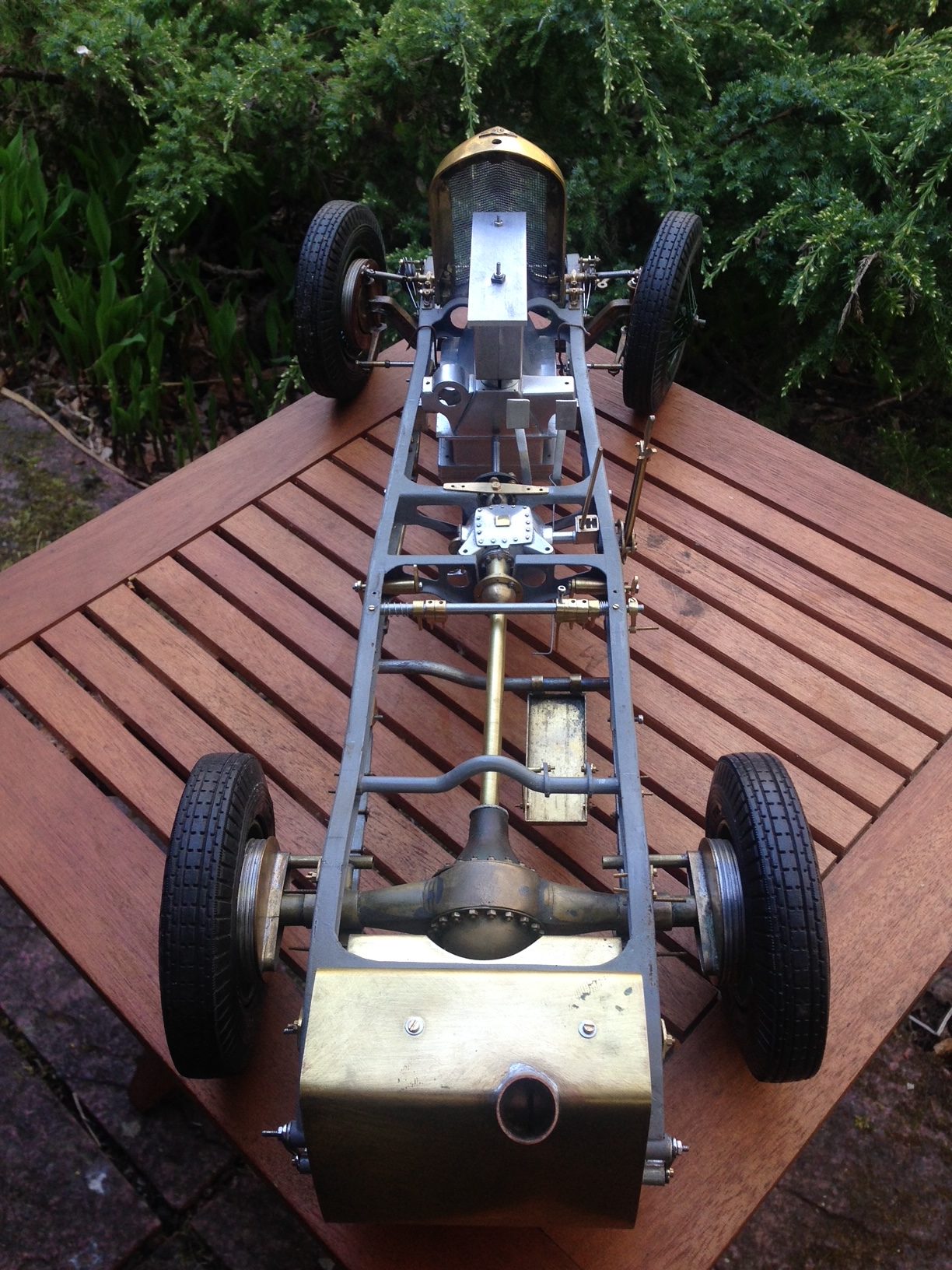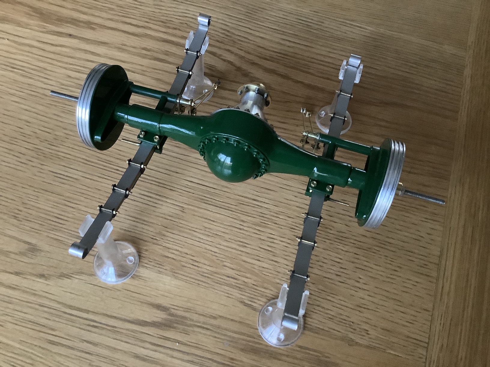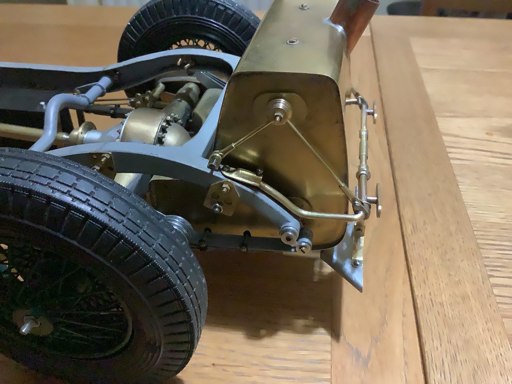 Back axle is made up of brass sheet and tube, with the rear of the differential being a brass clock bell!