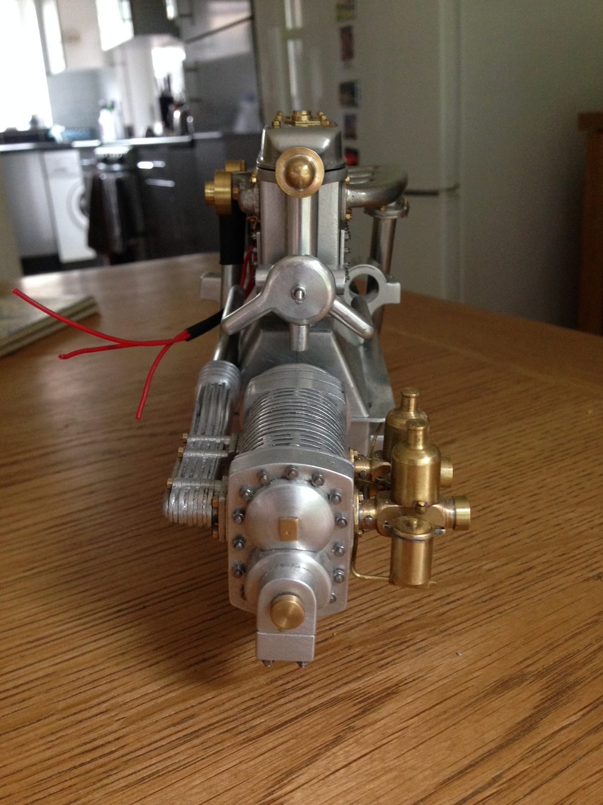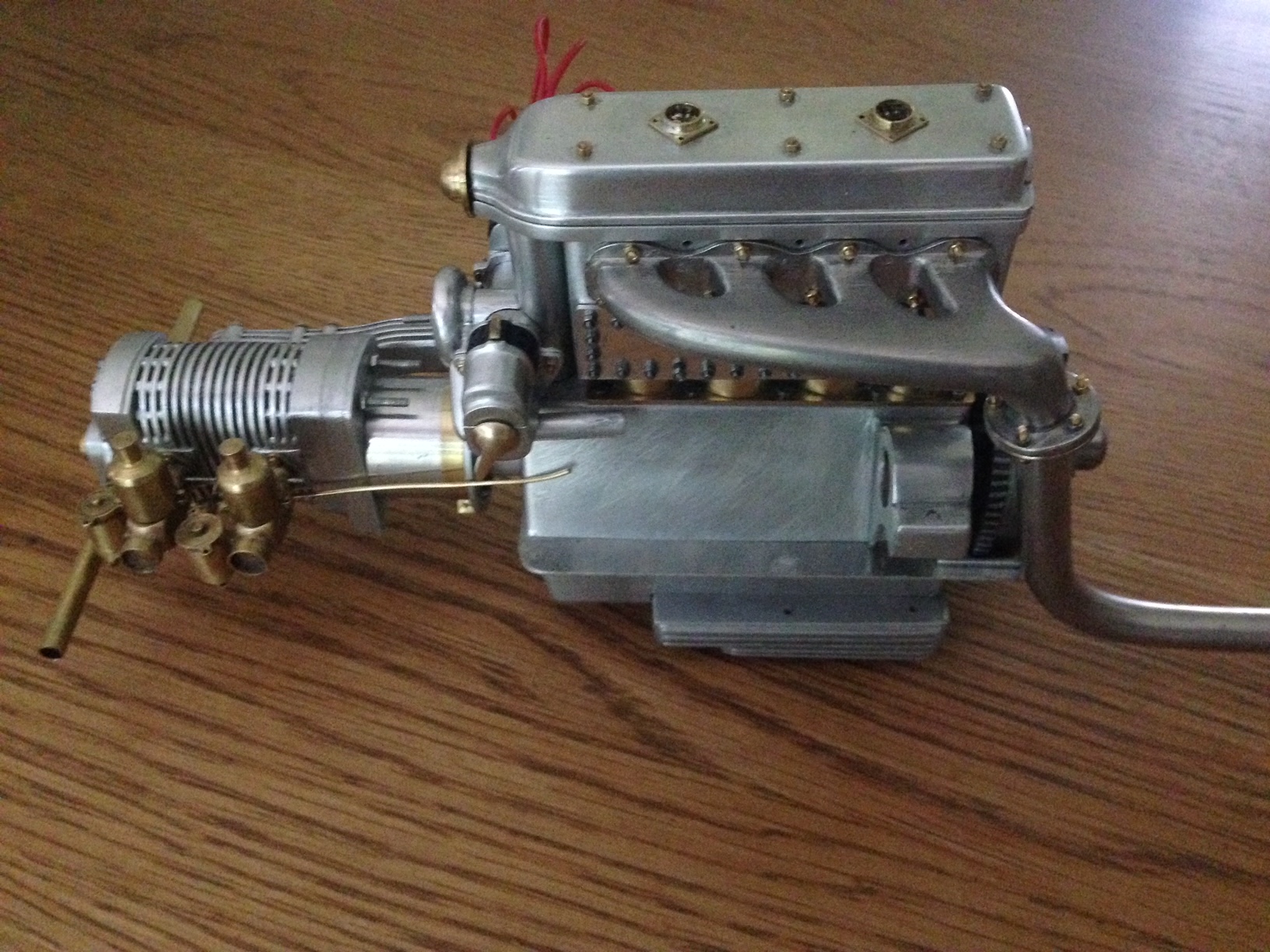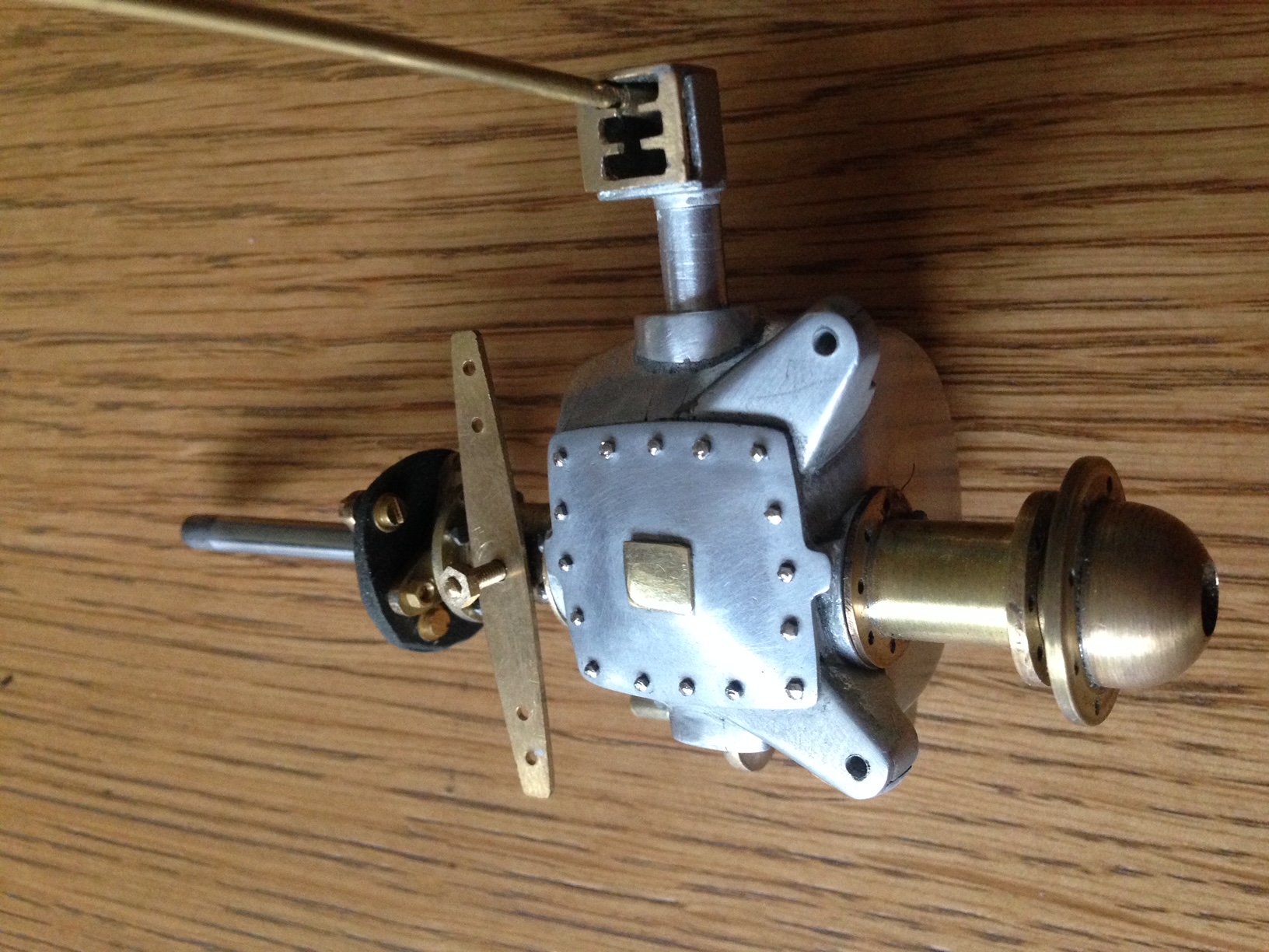 Engine block is made of folded aluminum sheet, with the mountings made separate then keyed into place. The finned sump built up in layers, and the rocker cover carved and filed from solid aluminum.