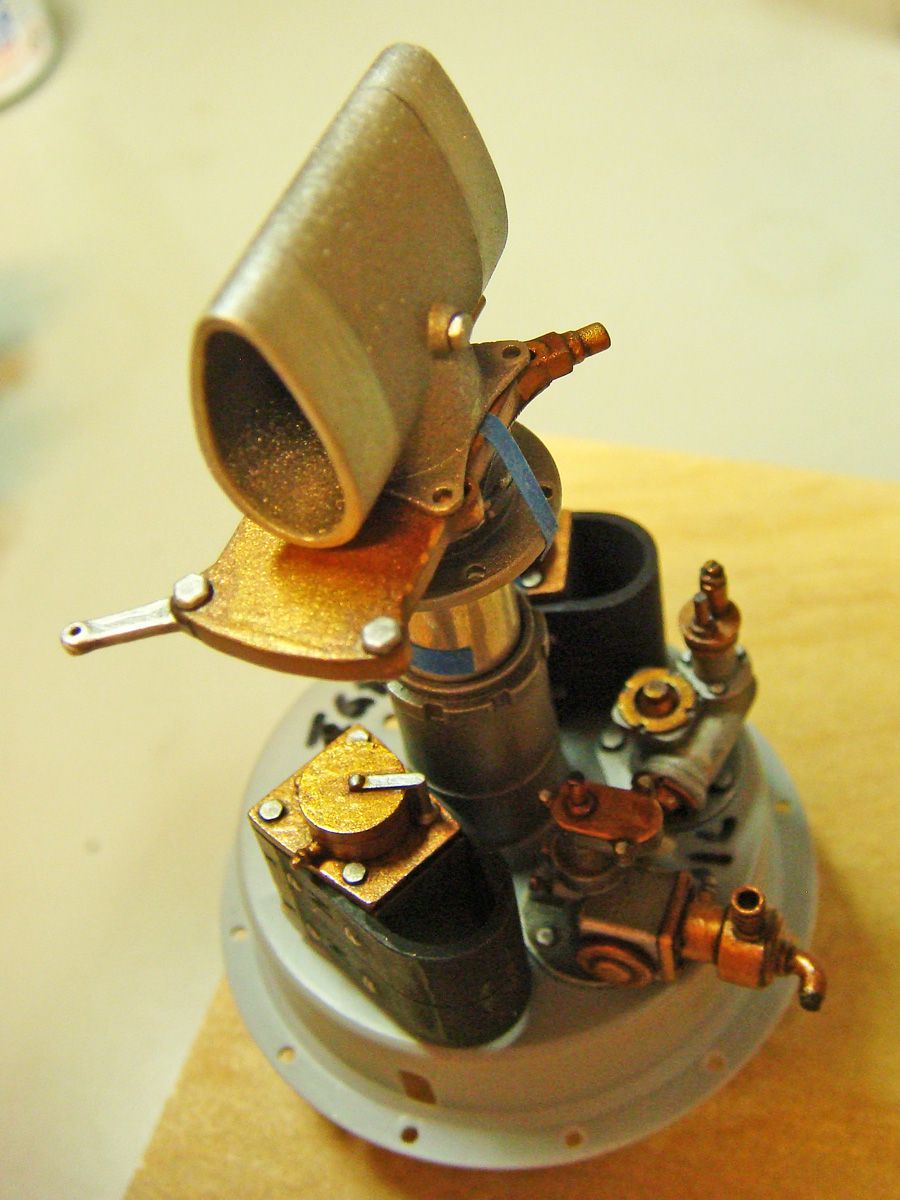 With such a large scale, the Hasegawa kit just about cries out for some extra attention and detail. Unfortunately, while there are several partial and complete original engines still held in various museum collections around the world, detailed information is pretty hard to come by. The original engines were also made in several different variants with numerous small detail changes in both France and, under license, in Britain. About the best I could do with my limited resources was to compile as many photos as possible and then make some educated guesses about the evolution of the design during manufacturing along with the changes employed different in applications.