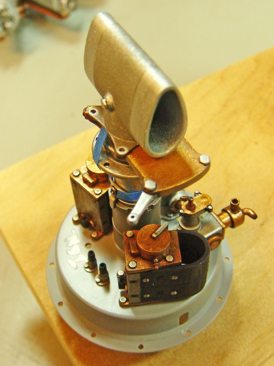 Based on my research, I determined a number of areas that could be improved. In addition to employing traditional scratch-building techniques and materials, I also used CAD to devise a number of new and replacement parts which I then printed using a resin-type SLA table top 3D printer. Because of the lack of actual plans and dimensioned drawings of the prototype engine, I had to “reverse engineer” the scale part dimensions while attempting to make them “proportional” to the areas depicted in my reference photos. Many of these CAD designs went through several evolutions of printing and test fitting before I was satisfied that they at least “looked” correct. I believe that the in-progress photos illustrate most of these parts.