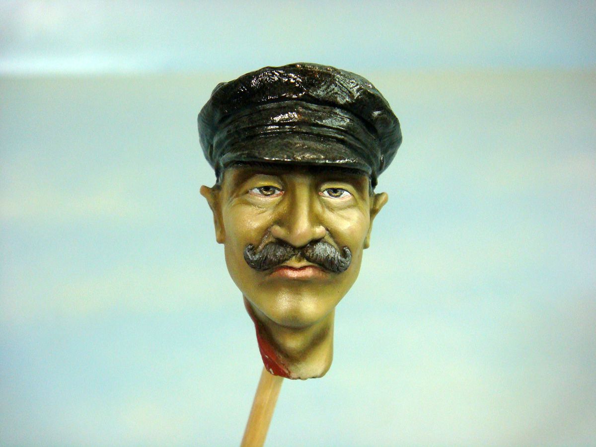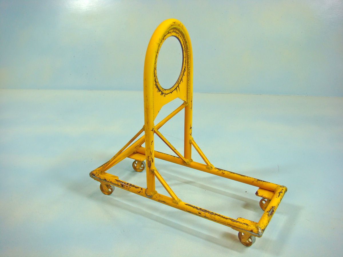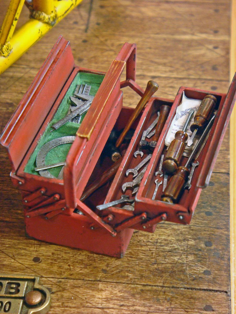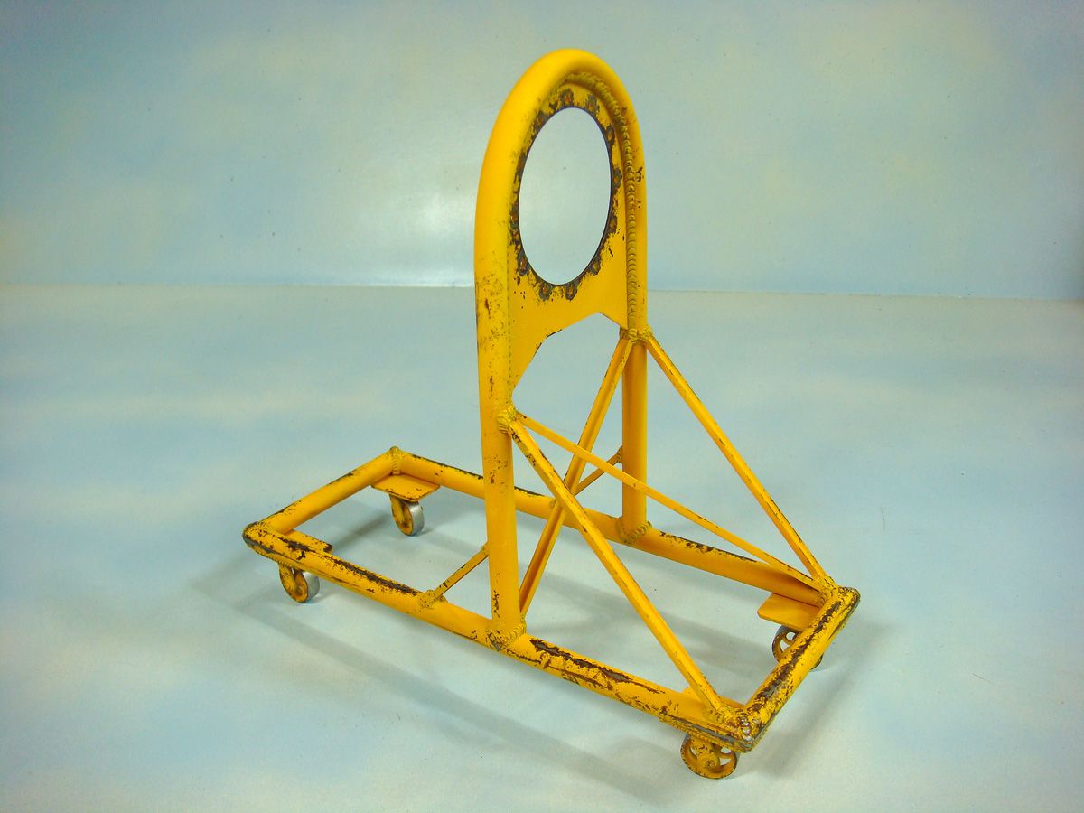 The 1/8 scale figure was an original CAD sculpt and 3D print done by my friend, Luis Hidalgo, who has a particular talent for such work. Luis based the figure on a number of period photos of French factory workers in order to get the clothing details correct. After assembly and preparation, I painted the figure by undercoating it in acrylics and then doing the actual painting using artist oils. The engine stand was scratch-built from styrene stock with two-part epoxy putty for the weld beads and more 3D printed parts for the castor wheels. The tools and tool box were also 3D printed designs. The display base was “planked” to replicate a wooden factory floor using wood veneer shelf edging with round toothpick “pegs.” The title plate was an enlarged version of the same 3D printed engine data plate made for the actual model.