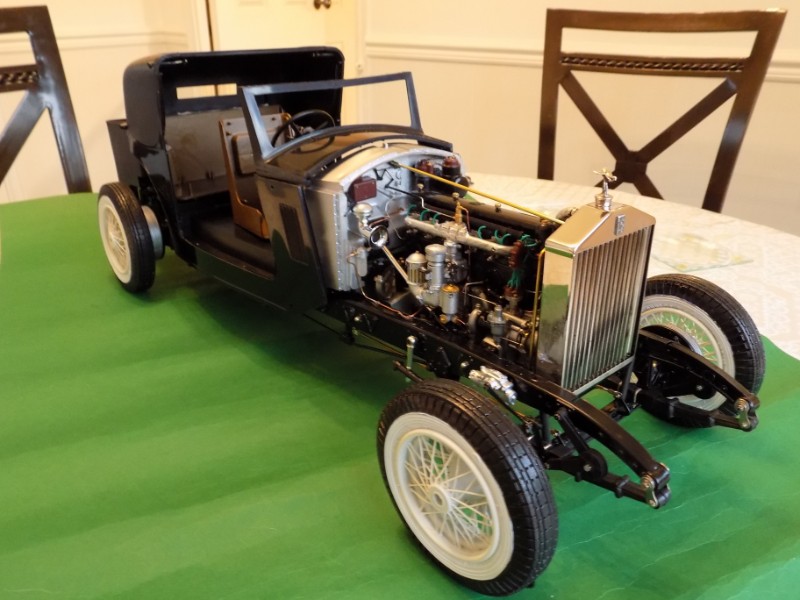 It is not a well-kept secret that the Pocher version of the Rolls-Royce Phantom II Sedanca is a challenging project for most model builders. Everyone knows about the jillions of unmarked pieces, and most builders have heard the rumors of miss-aligned panels and toy-like appearance. Almost as if such negative judgments are endorsements, there appears to be an endless supply of intrepid, courageous would-be builders. For some folk, it is the subject itself, the idea of having a model of the 'best car in the world', and for some it may be a desire to fill out a Rolls-Royce model collection. Still others may be irresistibly drawn to the Mt. Everest of model car kits. Peter Turner, of the United Kingdom, is silent on his motivation, preferring, it seems, to let his finished model do the talking.