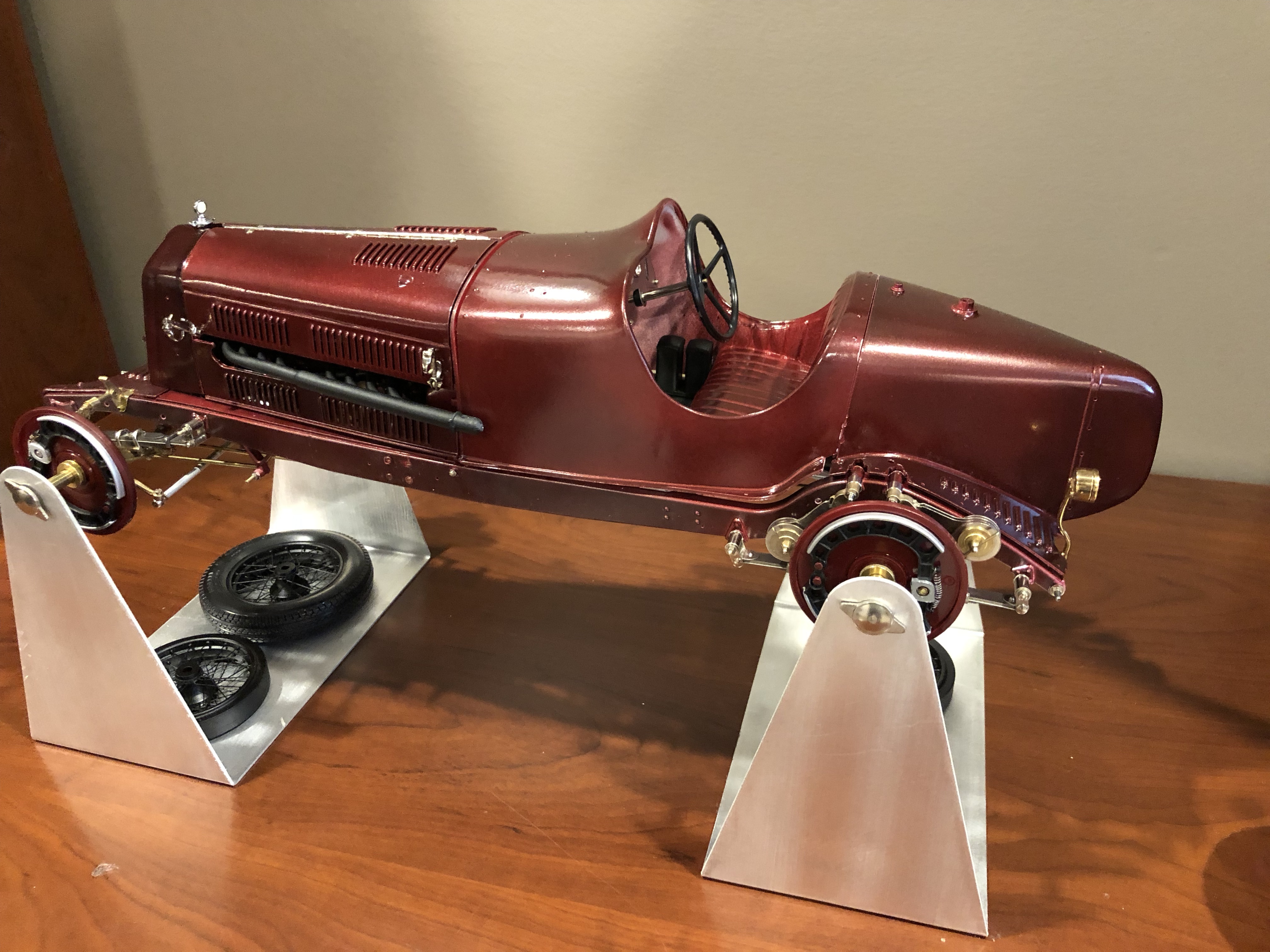 The idea of picking a chassis number, placing it in a particular time frame, and building a model has always been popular with model builders looking for the height of accuracy in a less than cooperative world. When it comes to prewar Alfas and "sport two-seaters" in particular, the plan becomes more dubious. Many of these cars were wrecked and rebuilt, some with different engines or even chassis, and many were re-bodied. As an example, the famous Touring Coupe-Spyder was only recently re-bodied as a Monza, adding to the confusion over production numbers and sometimes even over chassis numbers. In the face of such confusion, it is no wonder that many of us prefer to build a model that 'captures the look' of a specific car if not the exact details. Besides, after various wrecks and re-builds, who is to say what is correct for any one chassis.