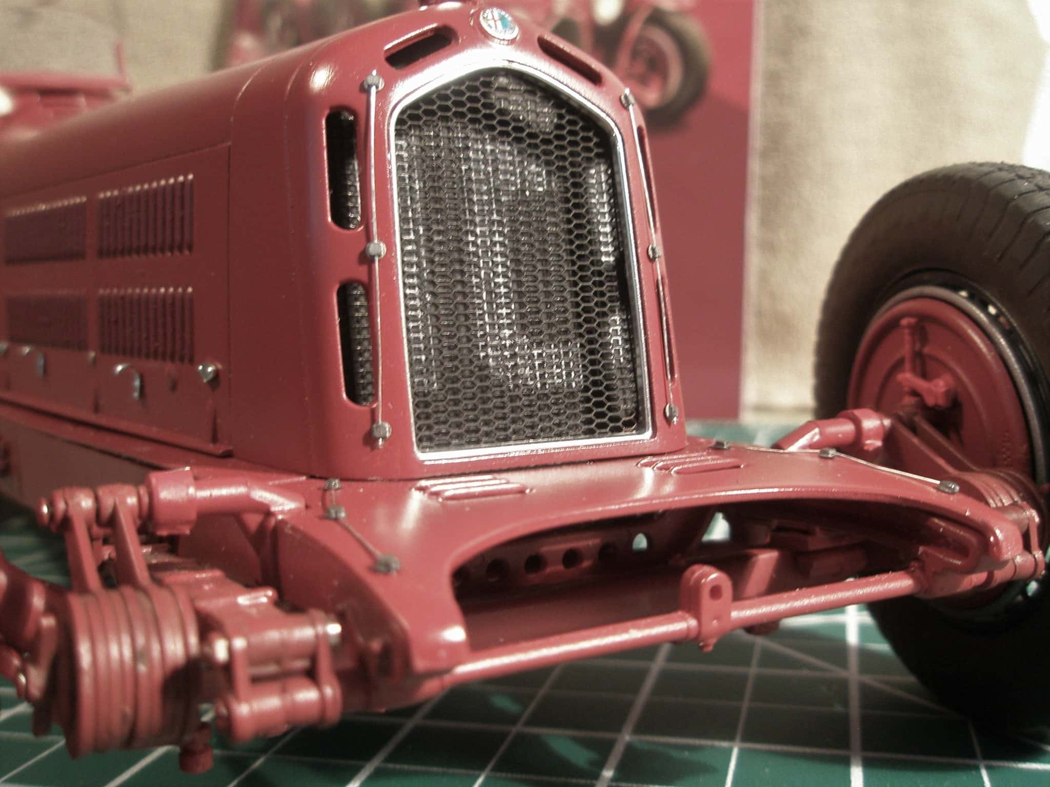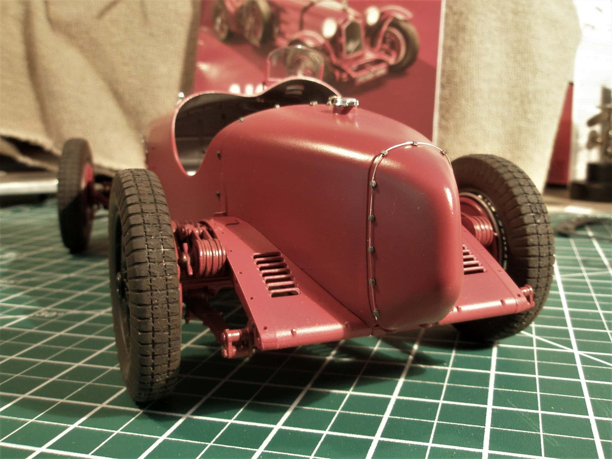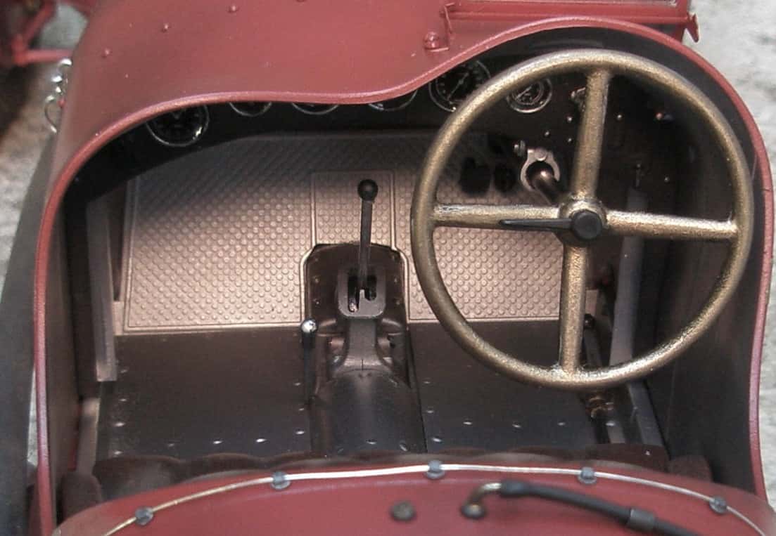 This is a 1:12th scale Alfa Romeo 2300 Monza built from an Italeri kit. Many nuts, bolts and rivets from Model Motorcars were used to bring out the details on this model. Body panel lock bolts and safety wire were used, an unusual feature on a model done in 1:12th scale.