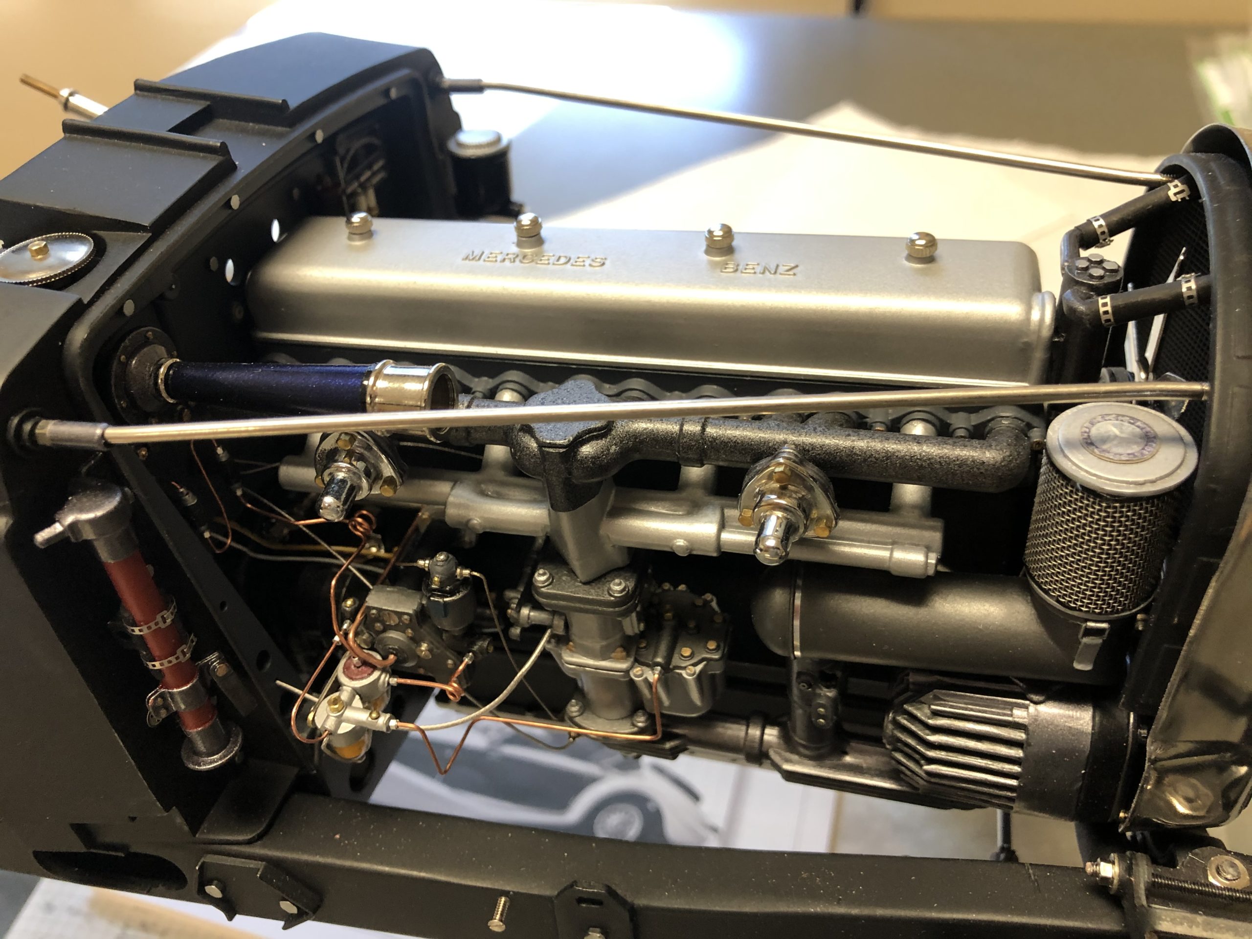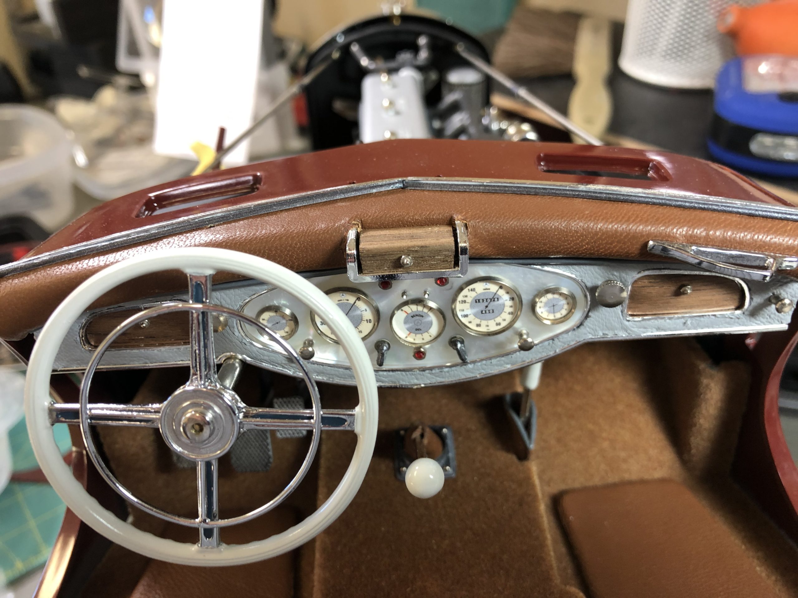 Is it done yet? Are we there yet? When can we eat the cookies? Apparently, it is part of the human condition to anticipate, to long for the conclusion, to speculate on outcomes. When it comes to Pocher kits, we can be forgiven for the re-emergence of our childhood impatience with long journeys. Few things can inspire impatience like the sight of a perfectly rendered Pocher component, and Walter Skowronski's in-progress Mercedes-Benz roadster is brimming with wonderfully finished details. So many details, in fact, that we could not resist sharing them before the finished model can be photographed.