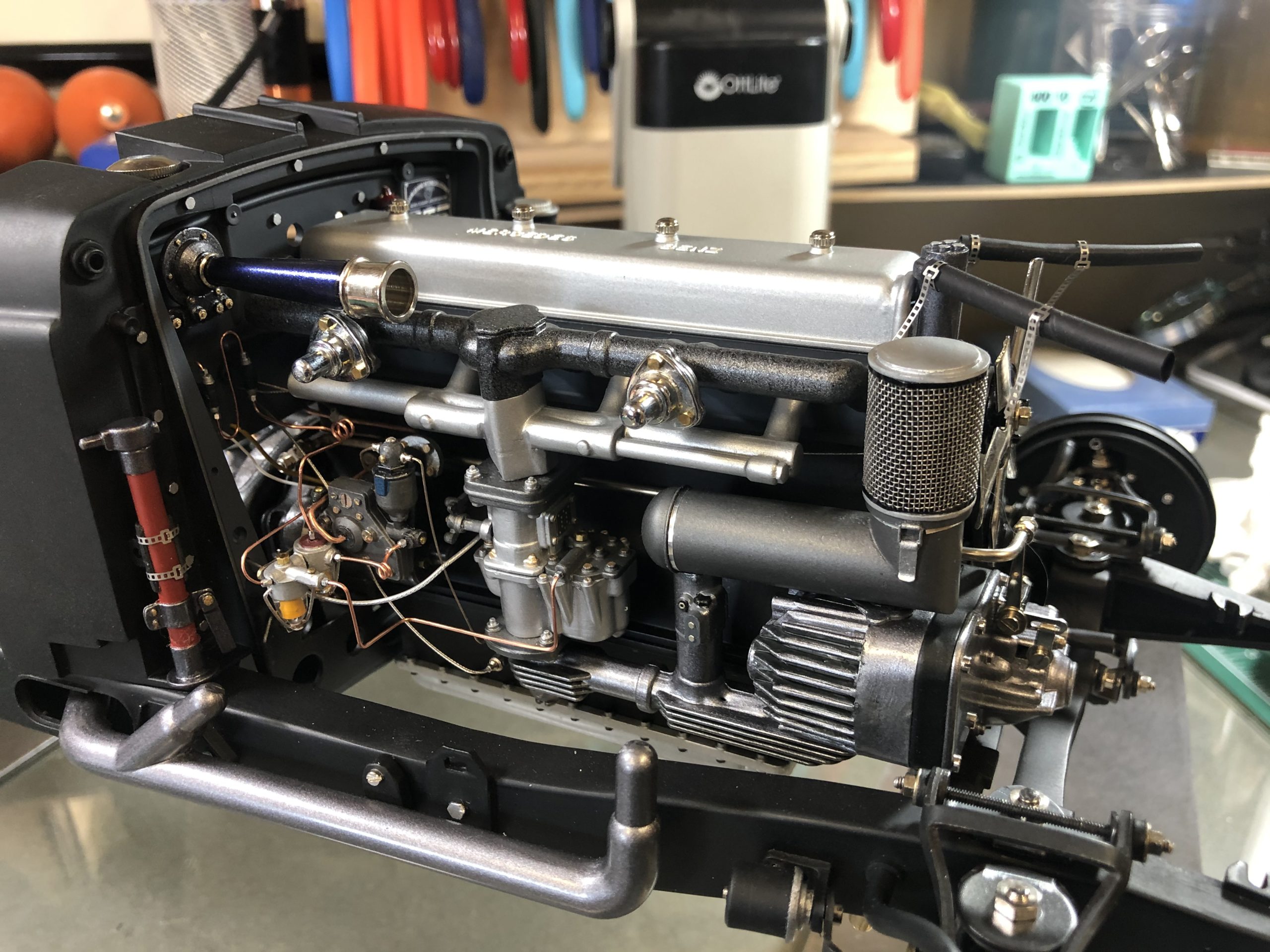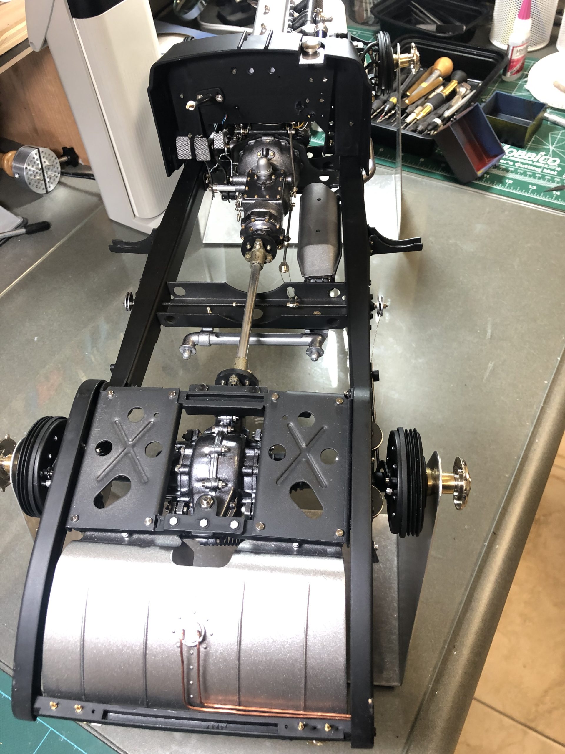 The same attention to detail is evident on the transmission, and the viewer is led to the inescapable conclusion that if the hidden elements are so fastidiously realized, the whole model must be done to a similar standard. As usual, such attention to details is enough to make the weak-willed among us hesitant to cover such details with bodywork or, in this case, floor boards.