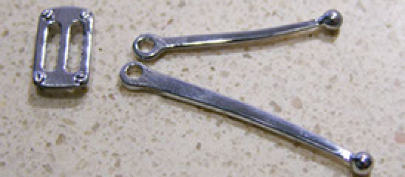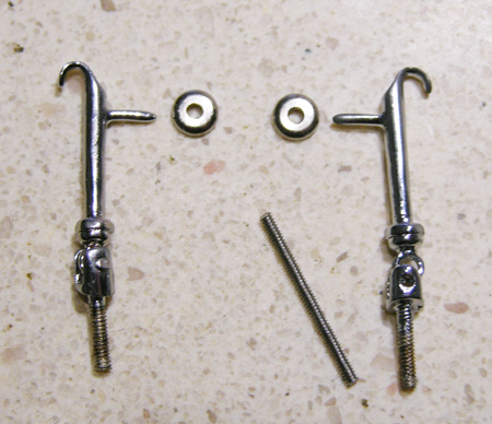 These are without question our best Hood Latches. Jorge made the originals and they are a perfect match to the prototypes…and, they work! They are cast in bronze and chrome plated. The set comes with 00.90 threaded rod to attach the top to the base and bezels for the hood.