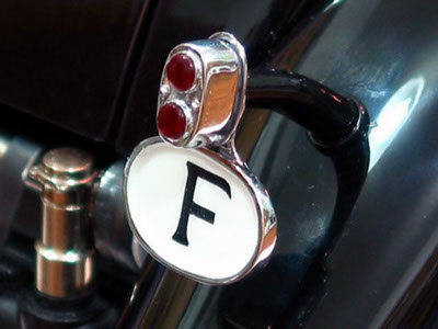 This wonderful dash was made by Frank Giordano and shows our new parts; The Instrument Cluster, Gate and Levers, Light Housings and Switches. They are all cast in bronze and plated. Requires some modification to the Pocher dash…or, why not build your own out of cherry wood? The Instrument Cluster will require using our Gauge Faces, Lenses and Bezels (B011). The Light Housings are hollow to accommodate the bulb and slotted for the light. Ensemble is sold as a set or as individual parts.
