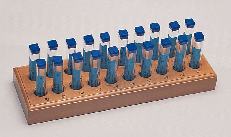 Assortment includes one tube (10 pieces) each sizes 61 – 80 (.3429 mm – .9906 mm) and a hardwood stand marked with the appropriate size.