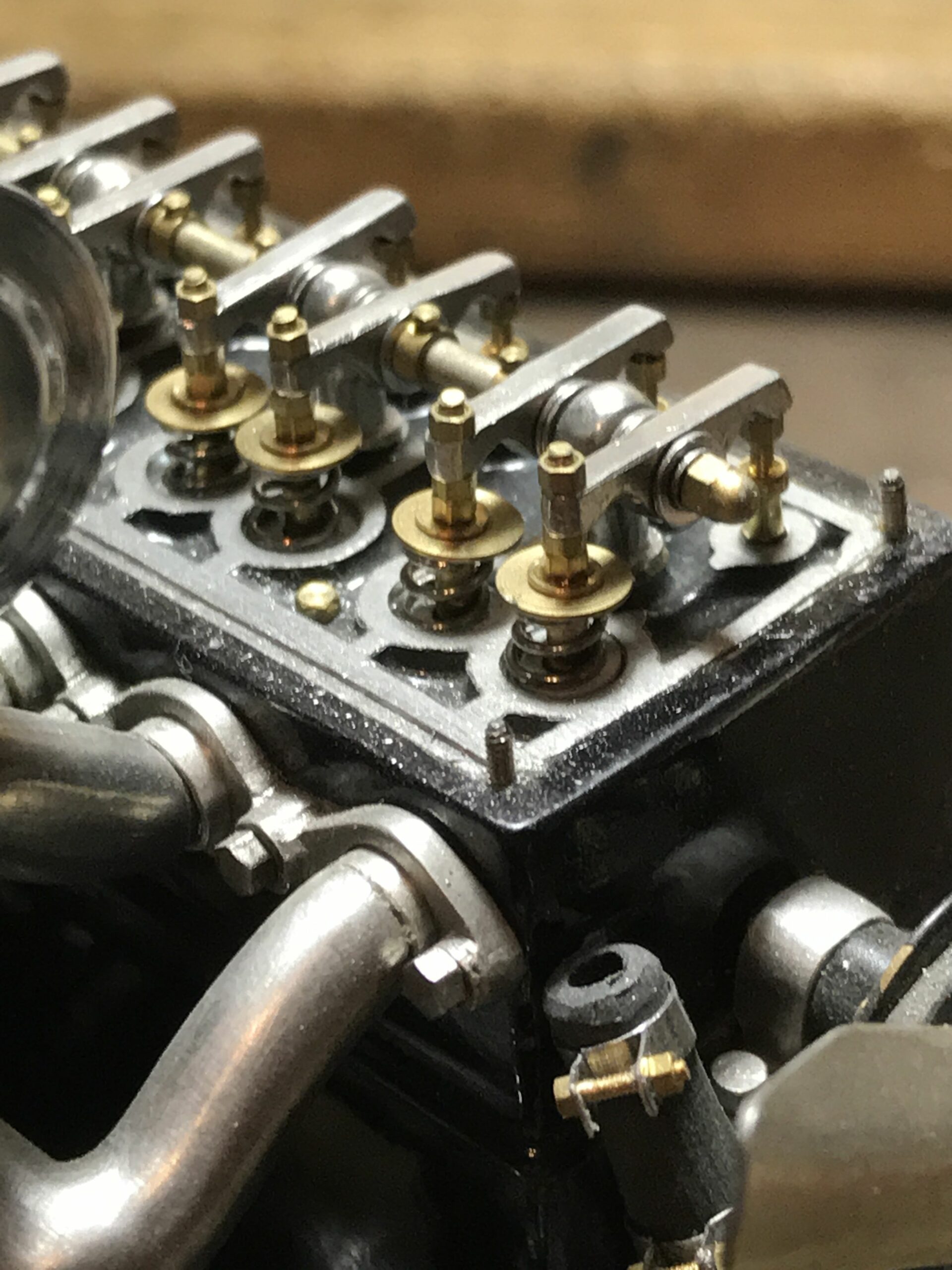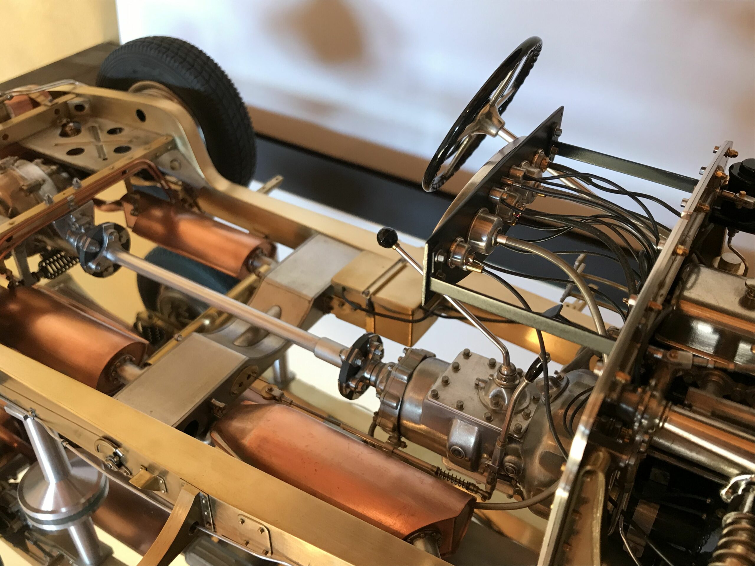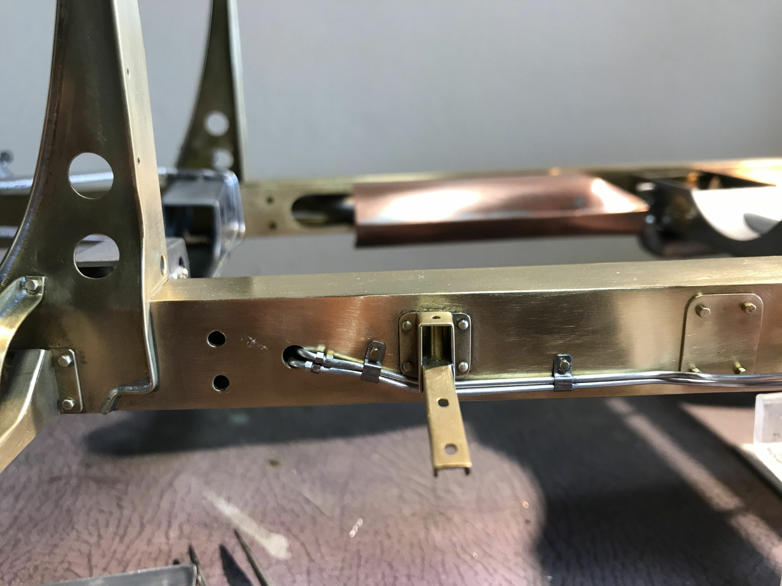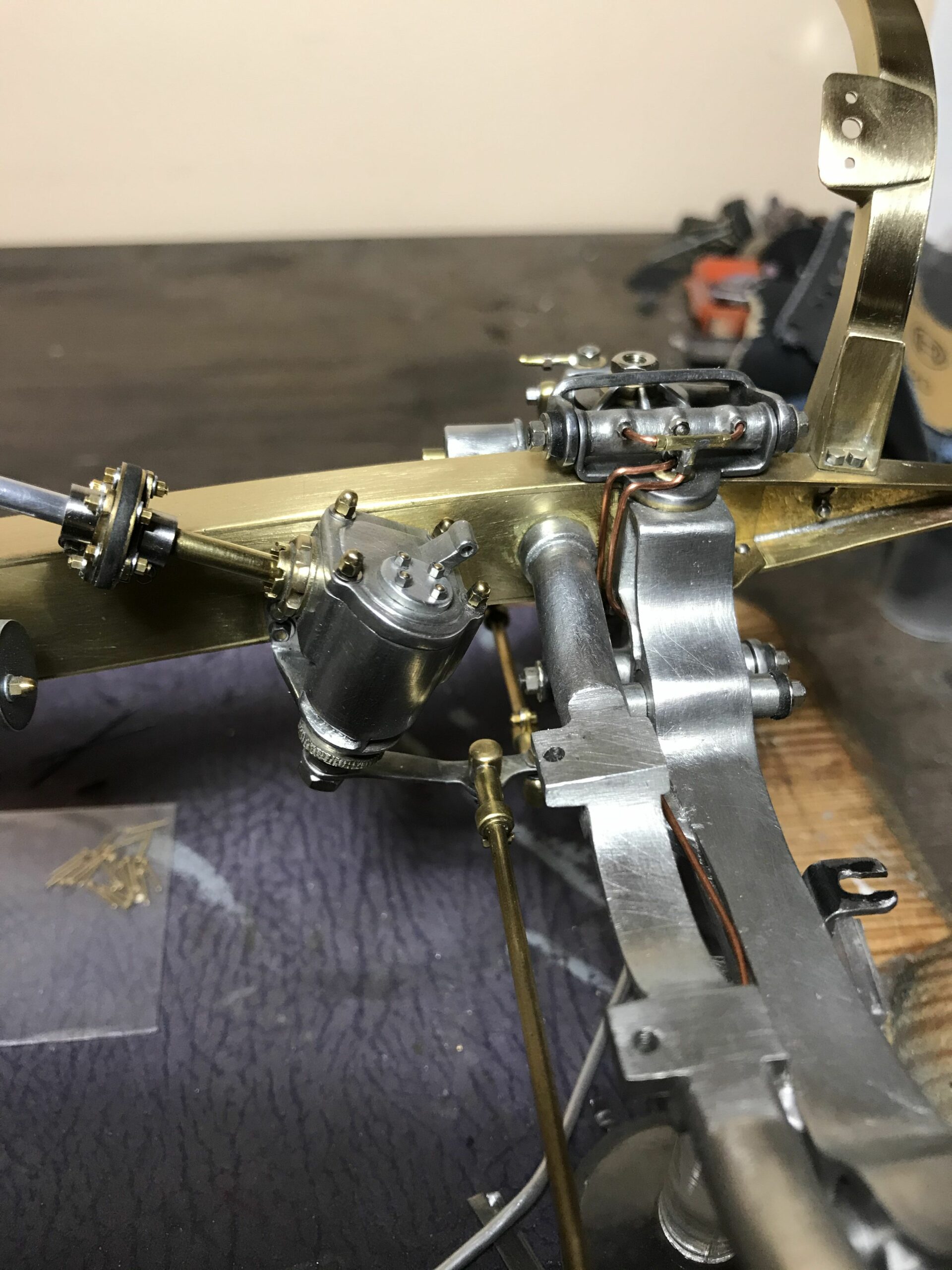 About 10 years ago I planned the project to build a kit of the Mercedes 500k from Pocher without a body to show the inner values of such a classic. I wanted to refine the kit for this stage as much as possible to show as much detail as possible. I was inspired by a book entitled "Mercedes Benz supercharged 8 (Volume 2)" that I bought during a visit to the Mercedes Museum in Stuttgart. After the initial construction period, it turned out to me that the Pocher kit did not meet my requirements and I began to replace every part that was not authentic enough by either rebuilding it, making it by hand from metal or of course ordering it from you via the platform . For example, I only used the plastic parts of the motor to make molds out of them so that I could cast them in a tin-bismuth alloy. I also have that with many other parts such as the transmission block, rear axle, brake shoes or steering wheel. The engine block and the large cast parts are all hollow and have the same parts and functions as the Pocher model - but made of metal. I had the turned parts such as brake drums made in a workshop because I don't have a lathe. The model is completely made of metal, weighs approx. 5 kg and consists of only 10% (wheels, radiator and parts of the chassis) from parts of the purchased kit. The supplier of the screws from 0.6 to 1.8 mm financed a vacation in the Maldives from my orders (at least I think). The Pocher kit can still be used to some extent as a spare parts store. Building the model gave me a lot of pleasure because every time I opened the book, I discovered new details that I could add.