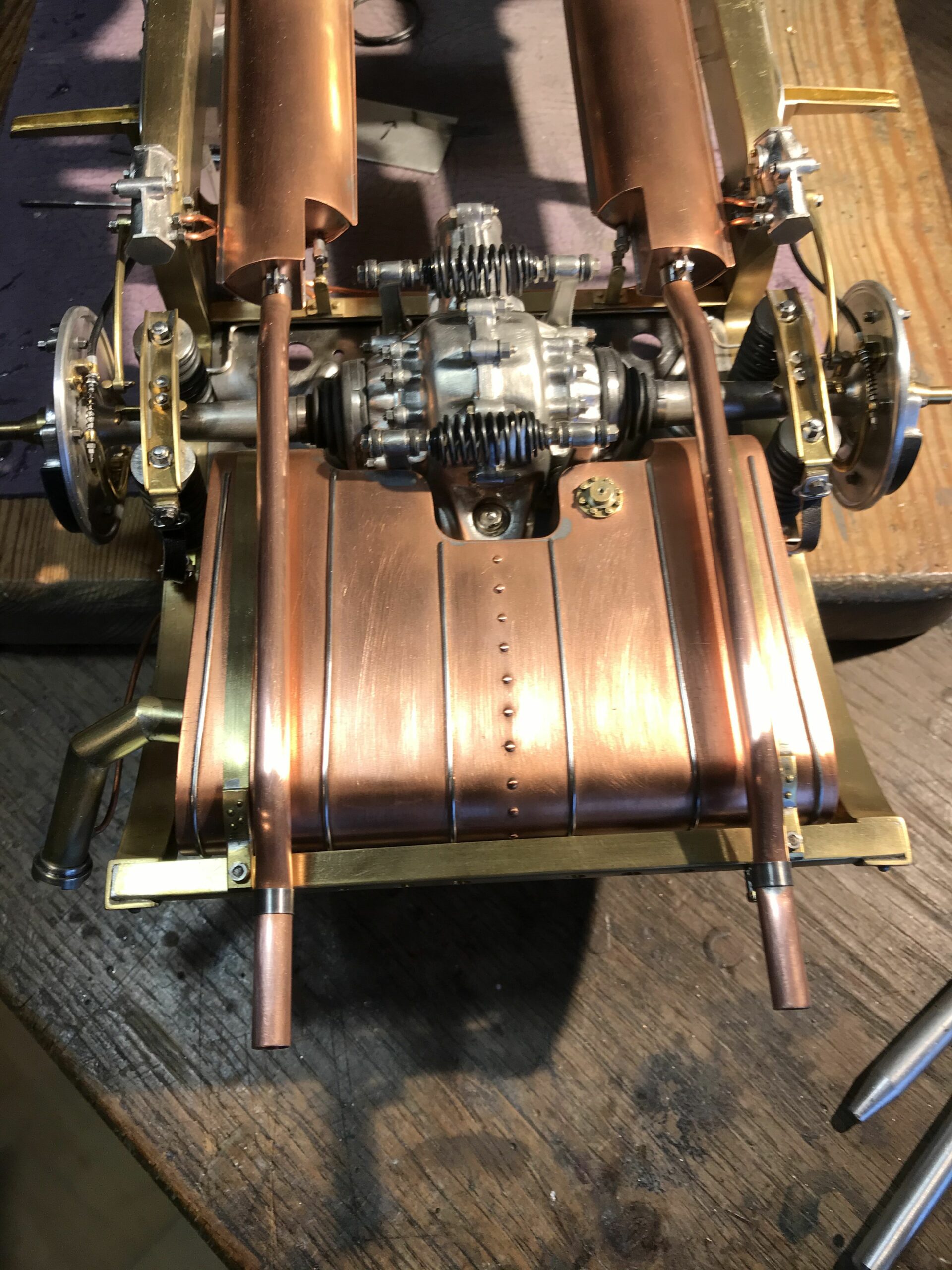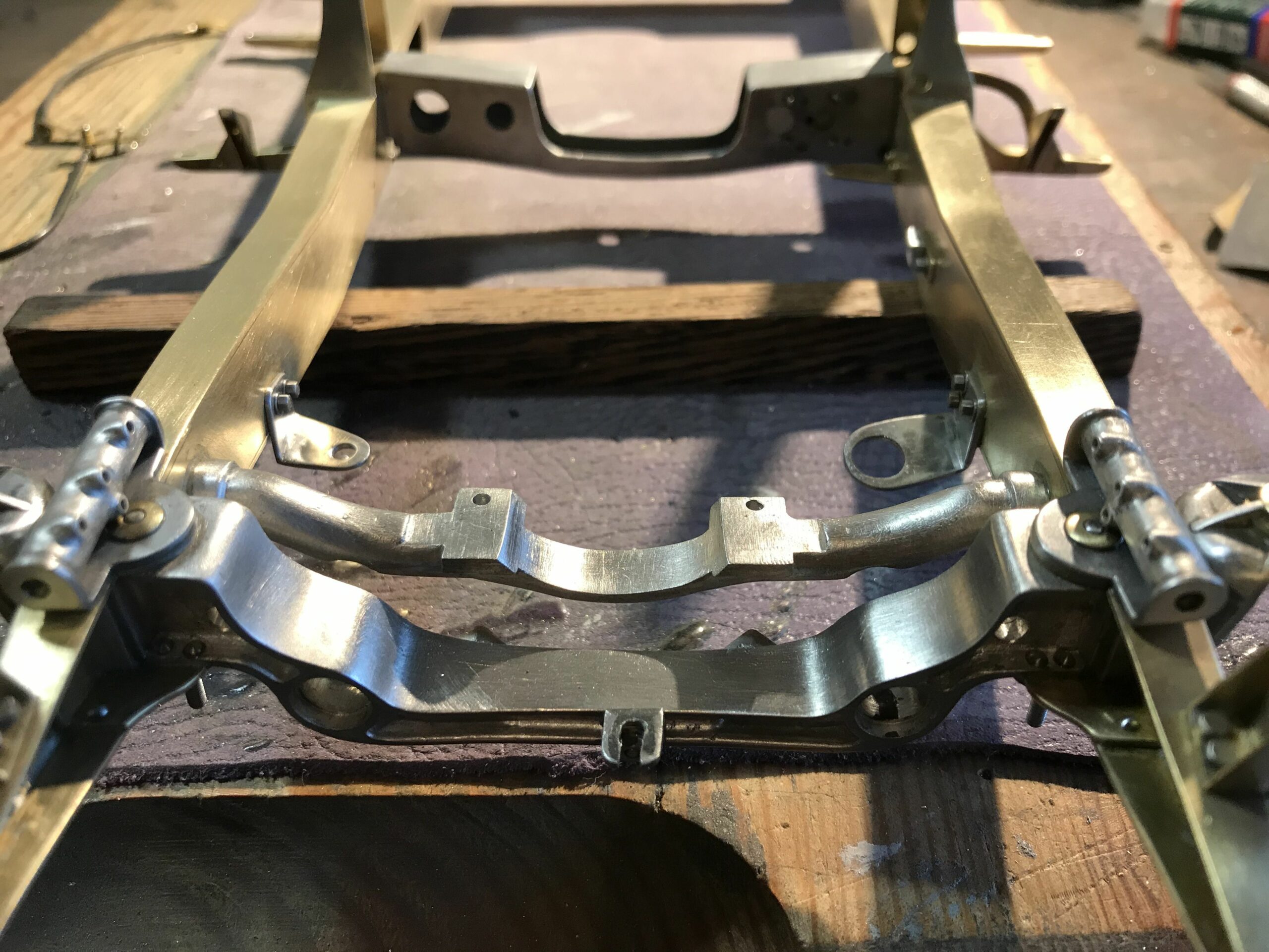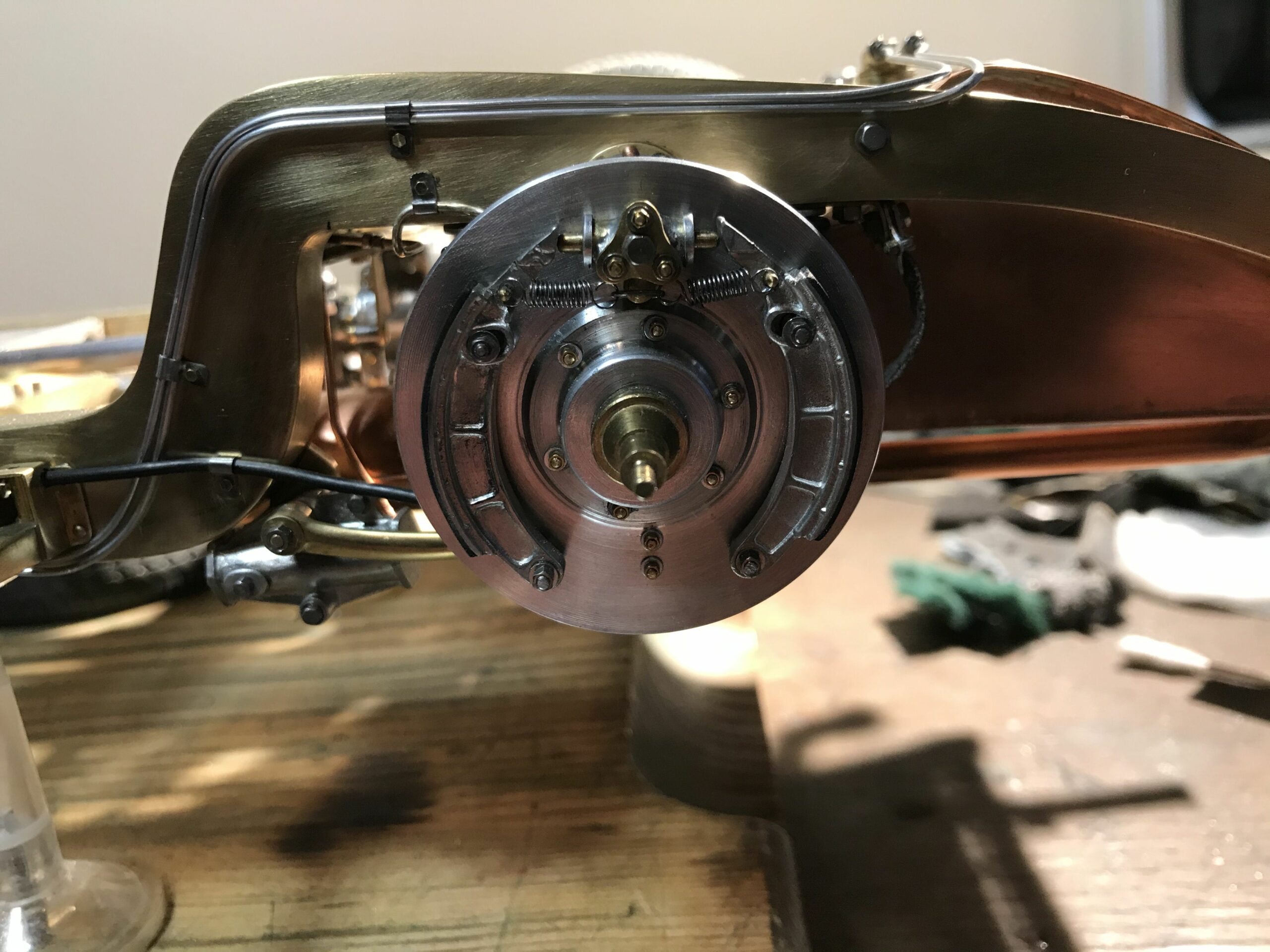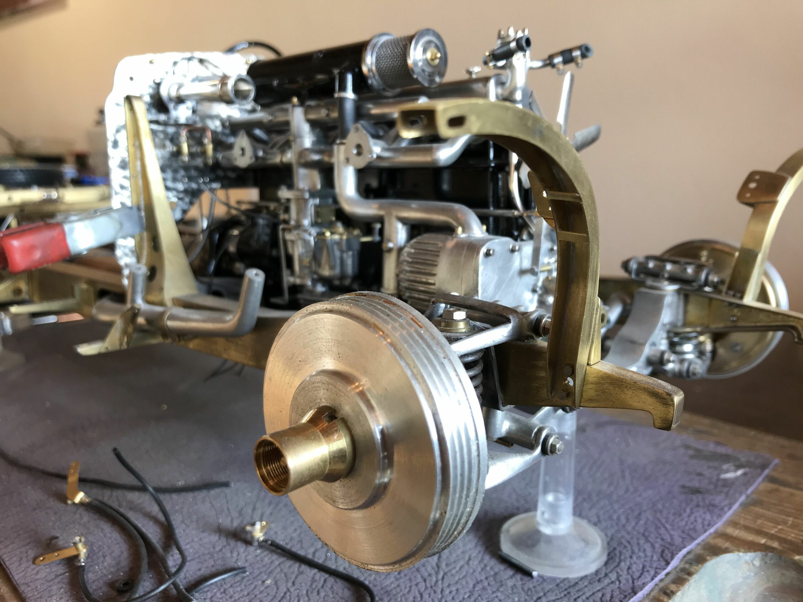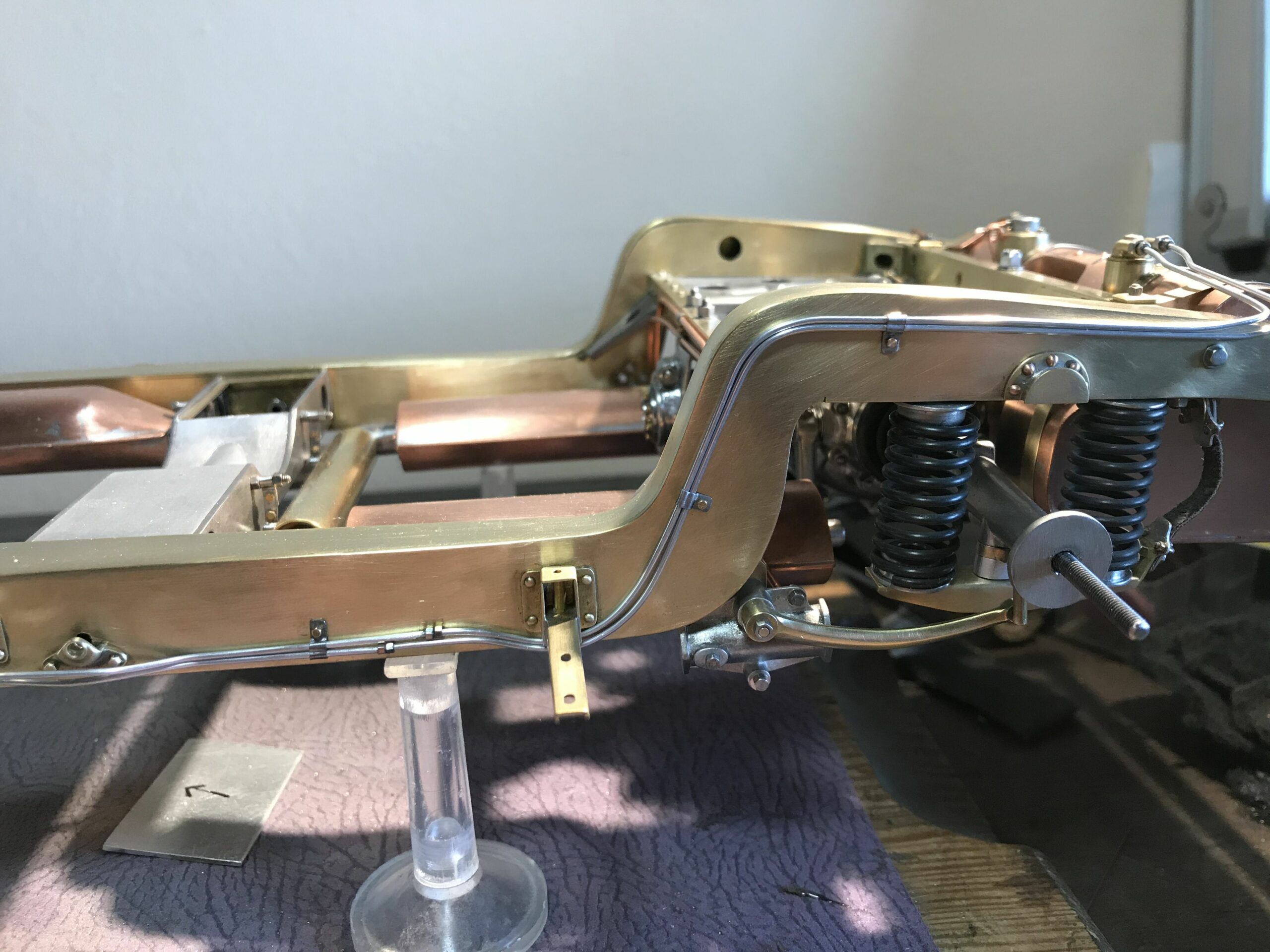 About 10 years ago I planned the project to build a kit of the Mercedes 500k from Pocher without a body to show the inner values of such a classic. I wanted to refine the kit for this stage as much as possible to show as much detail as possible. I was inspired by a book entitled "Mercedes Benz supercharged 8 (Volume 2)" that I bought during a visit to the Mercedes Museum in Stuttgart. After the initial construction period, it turned out to me that the Pocher kit did not meet my requirements and I began to replace every part that was not authentic enough by either rebuilding it, making it by hand from metal or of course ordering it from you via the platform . For example, I only used the plastic parts of the motor to make molds out of them so that I could cast them in a tin-bismuth alloy. I also have that with many other parts such as the transmission block, rear axle, brake shoes or steering wheel. The engine block and the large cast parts are all hollow and have the same parts and functions as the Pocher model - but made of metal. I had the turned parts such as brake drums made in a workshop because I don't have a lathe. The model is completely made of metal, weighs approx. 5 kg and consists of only 10% (wheels, radiator and parts of the chassis) from parts of the purchased kit. The supplier of the screws from 0.6 to 1.8 mm financed a vacation in the Maldives from my orders (at least I think). The Pocher kit can still be used to some extent as a spare parts store. Building the model gave me a lot of pleasure because every time I opened the book, I discovered new details that I could add.